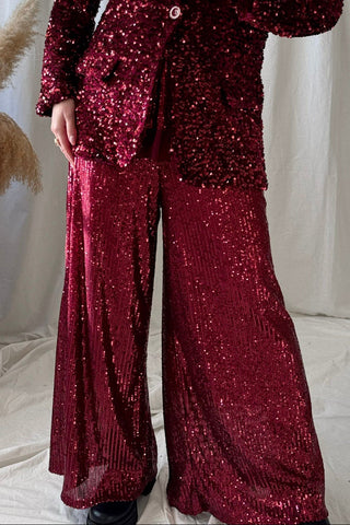 Millenium paljettihousut, red wine