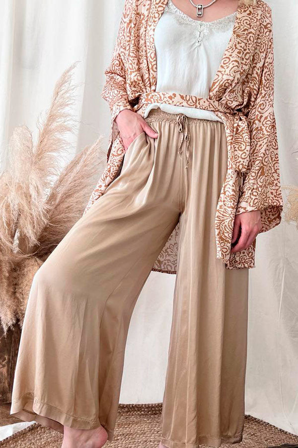 Bamboohousut hurmaavat joustavuudellaan ja hengittävyydellään. Silkinpehmeä bambu tuntuu miellyttävältä ihoa vasten ja sopii käytettäväksi ympäri vuoden.