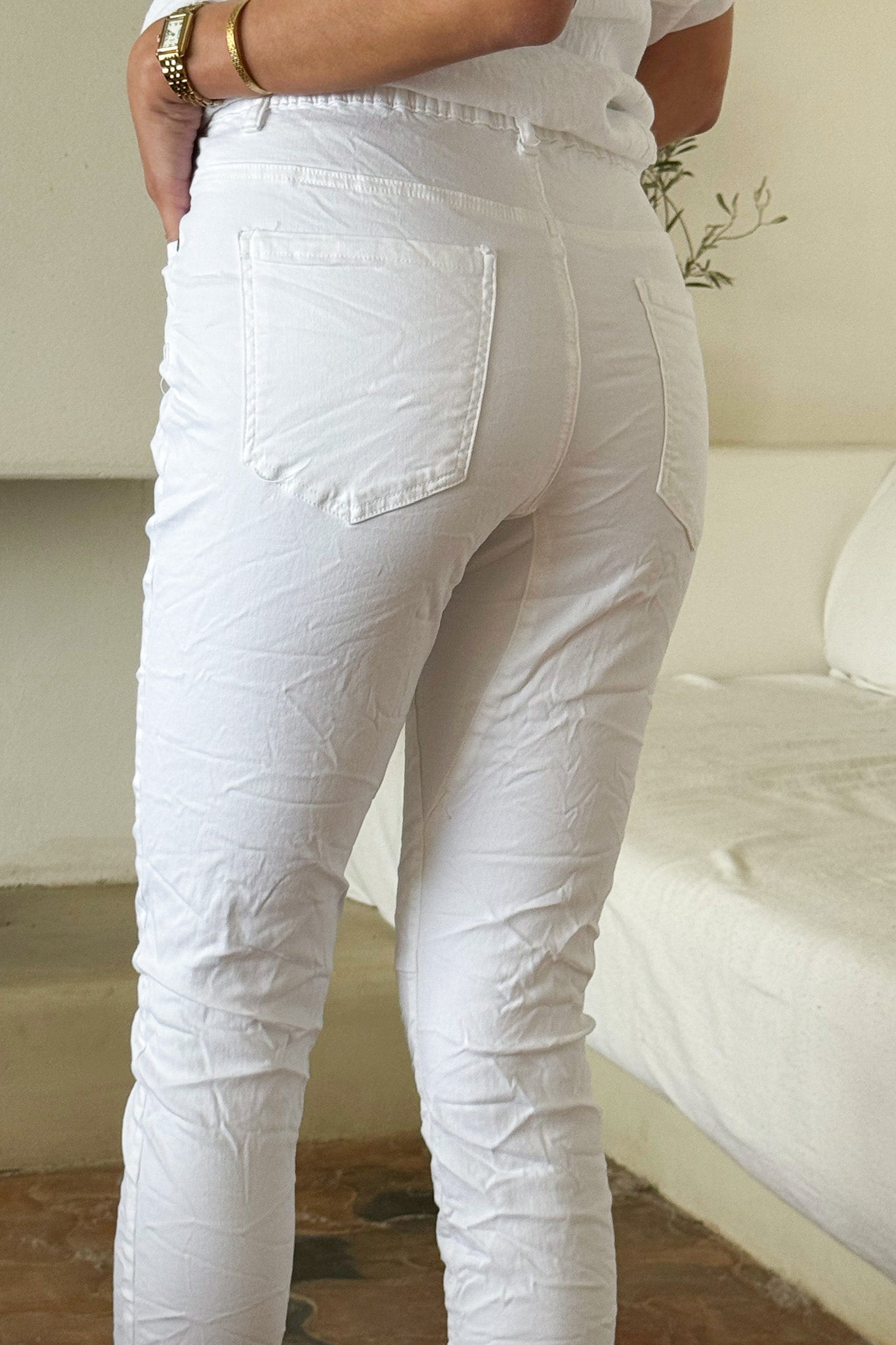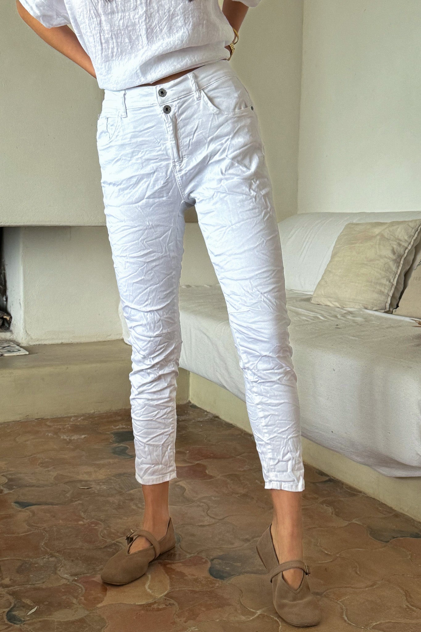 Todelliset must-have farkut! Rento Boyfriend-malli, pehmeää ja hyvin joustavaa stretch-materiaalia. Käännetyt lahkeet ja kuminauhavyötärö takana. Joustavan materiaalin ja puolikorkean vyötärön ansiosta todella miellyttävät housut päällä.
