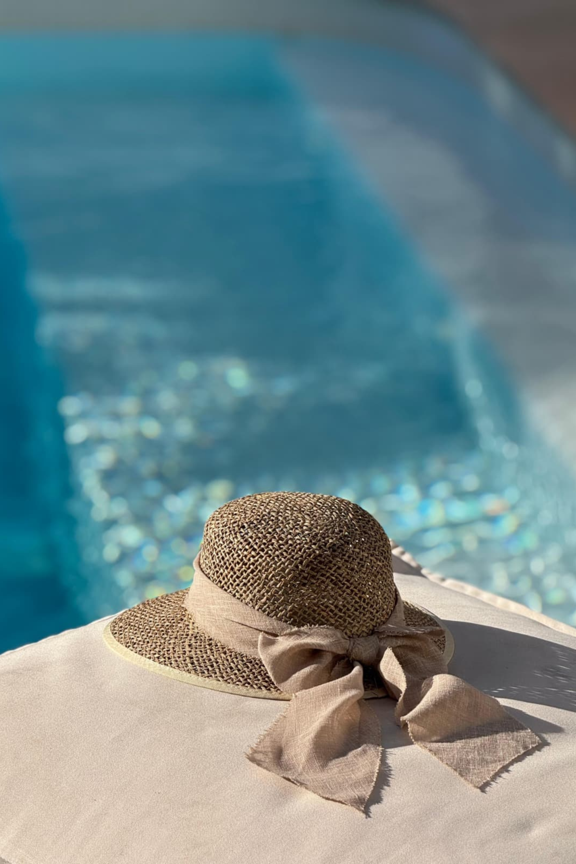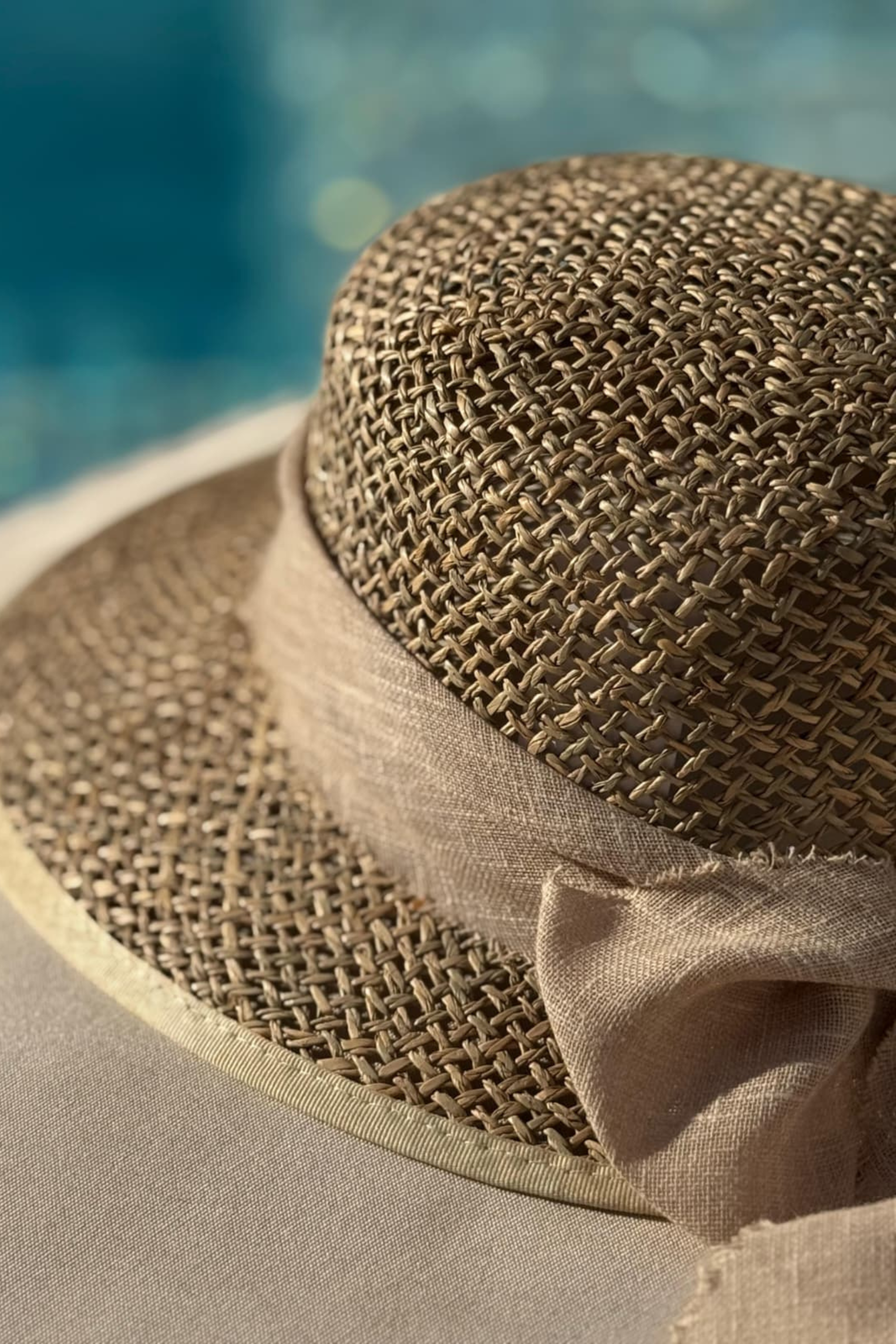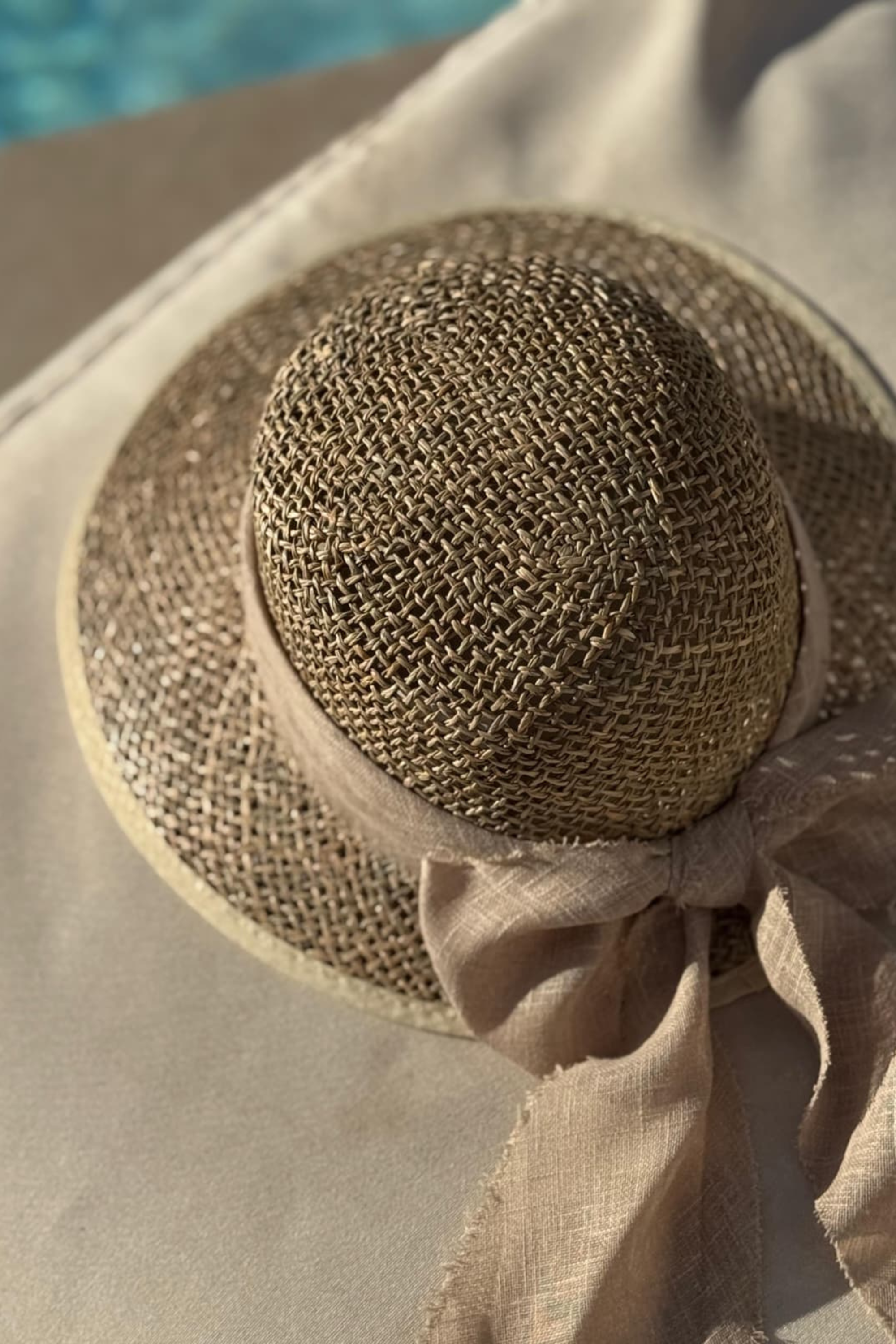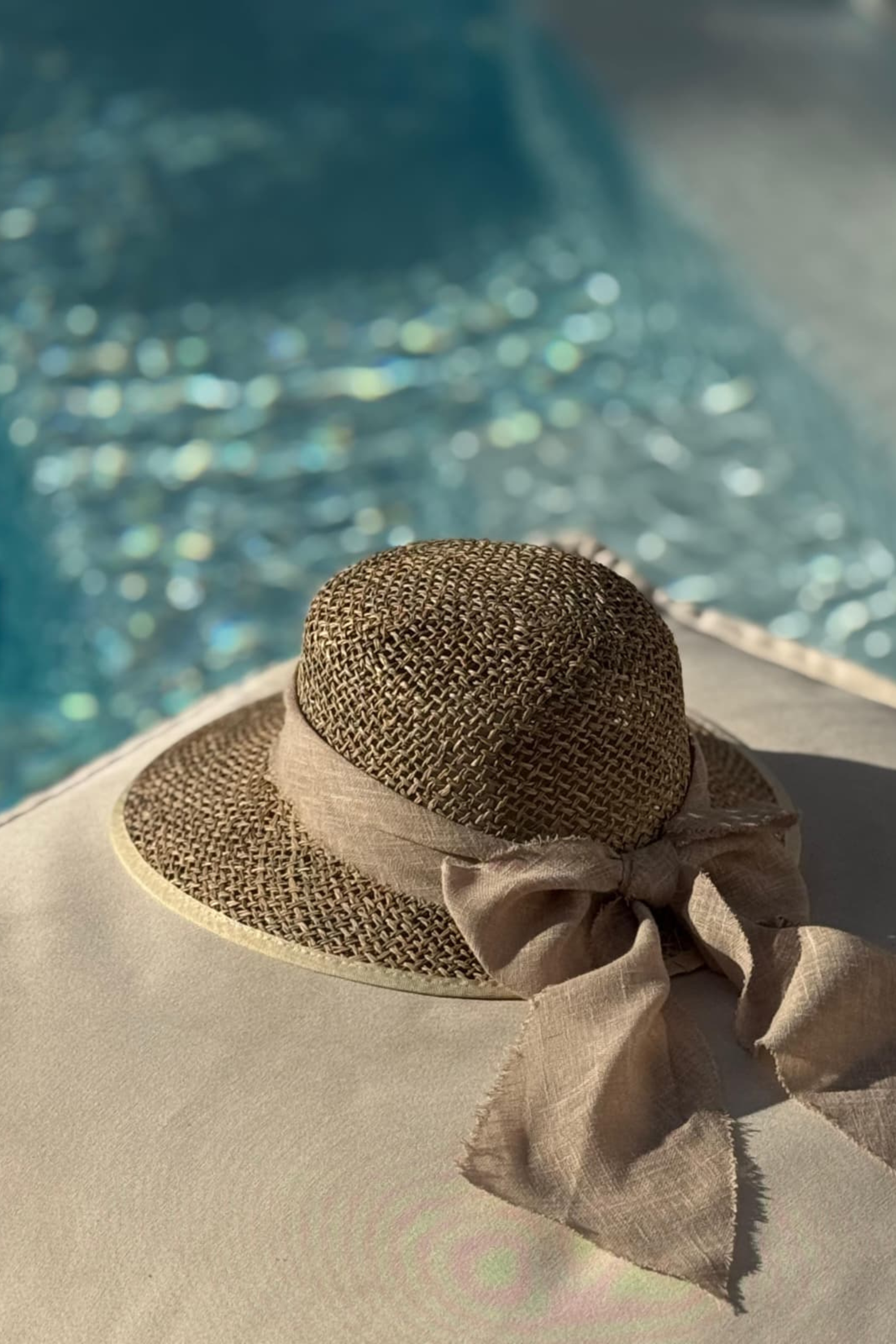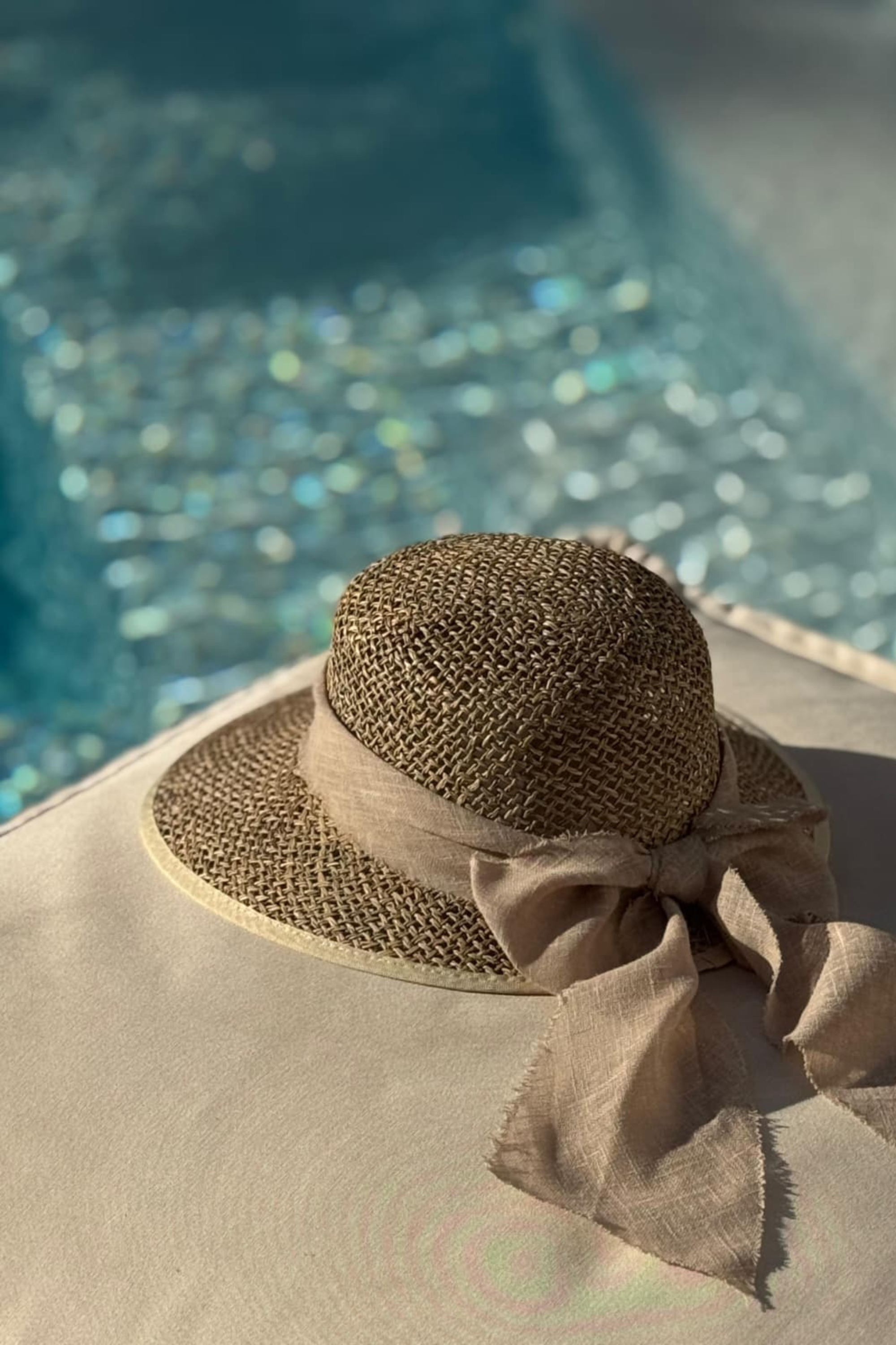 Hurmaava, BYPIAS signature korihattu. Luonnonmateriaalista käsityönä valmistettu hattu viimeistelee upean kesätyylisi ja muotoutuu pehmeästi päähän. Edestä leveämpi lieri ja kaunis kangasrusetti antavat hatulle viehkeän ilmeen.