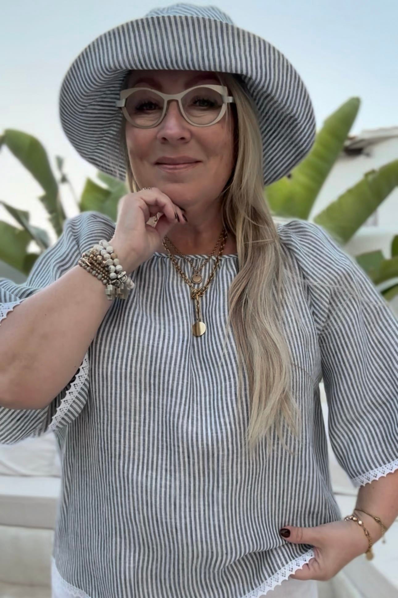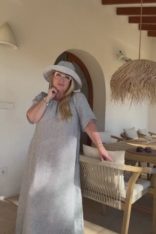 Ihana lierihattu, 100% pestyä pellavaa. Täysin koneessa pestävä, ilmava ja täysin hengittävä helteellä. Isot aurinkolasit, mekko, hattu ja huivi kaulaan kruunaa BYPIAS kesäisen lookin.