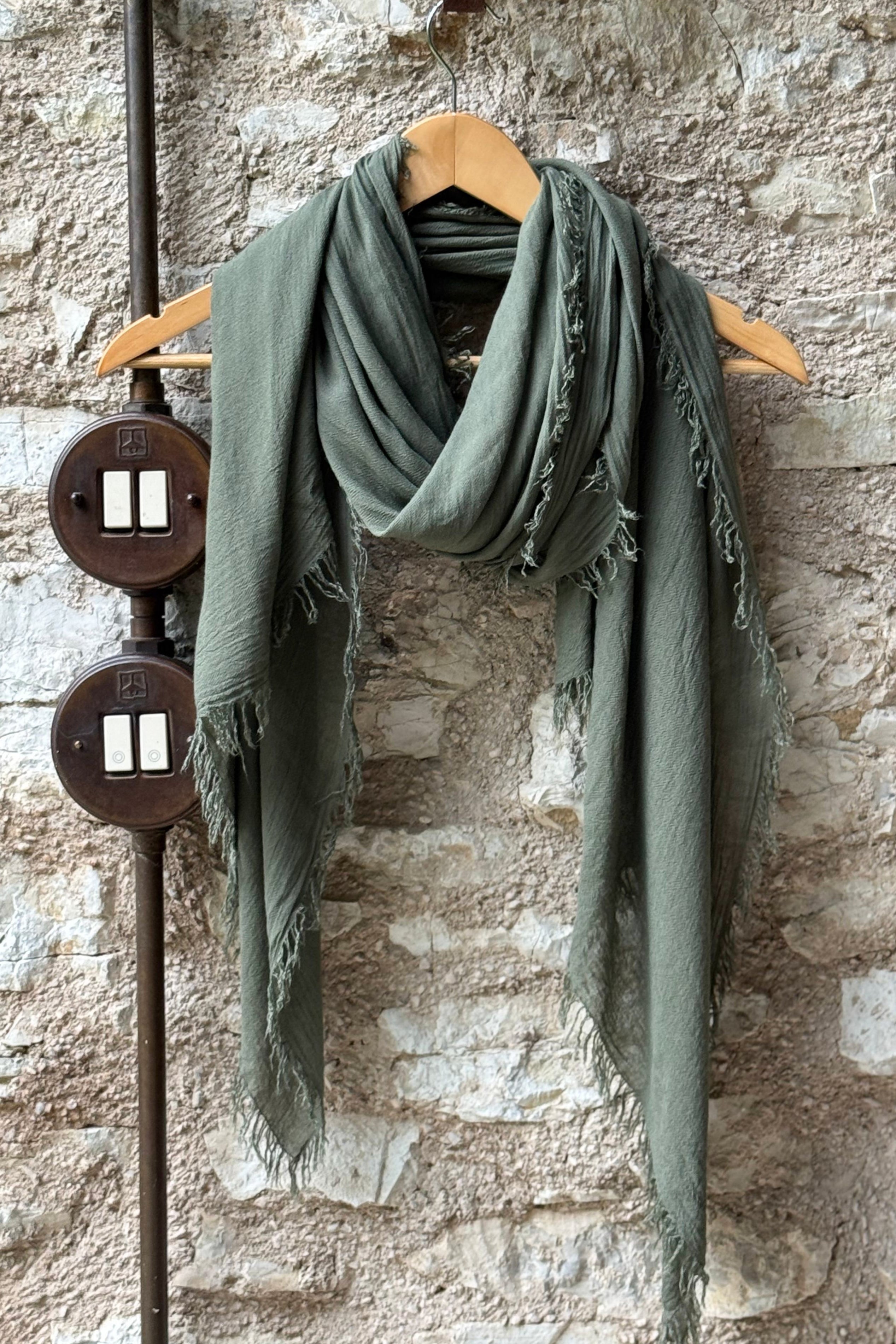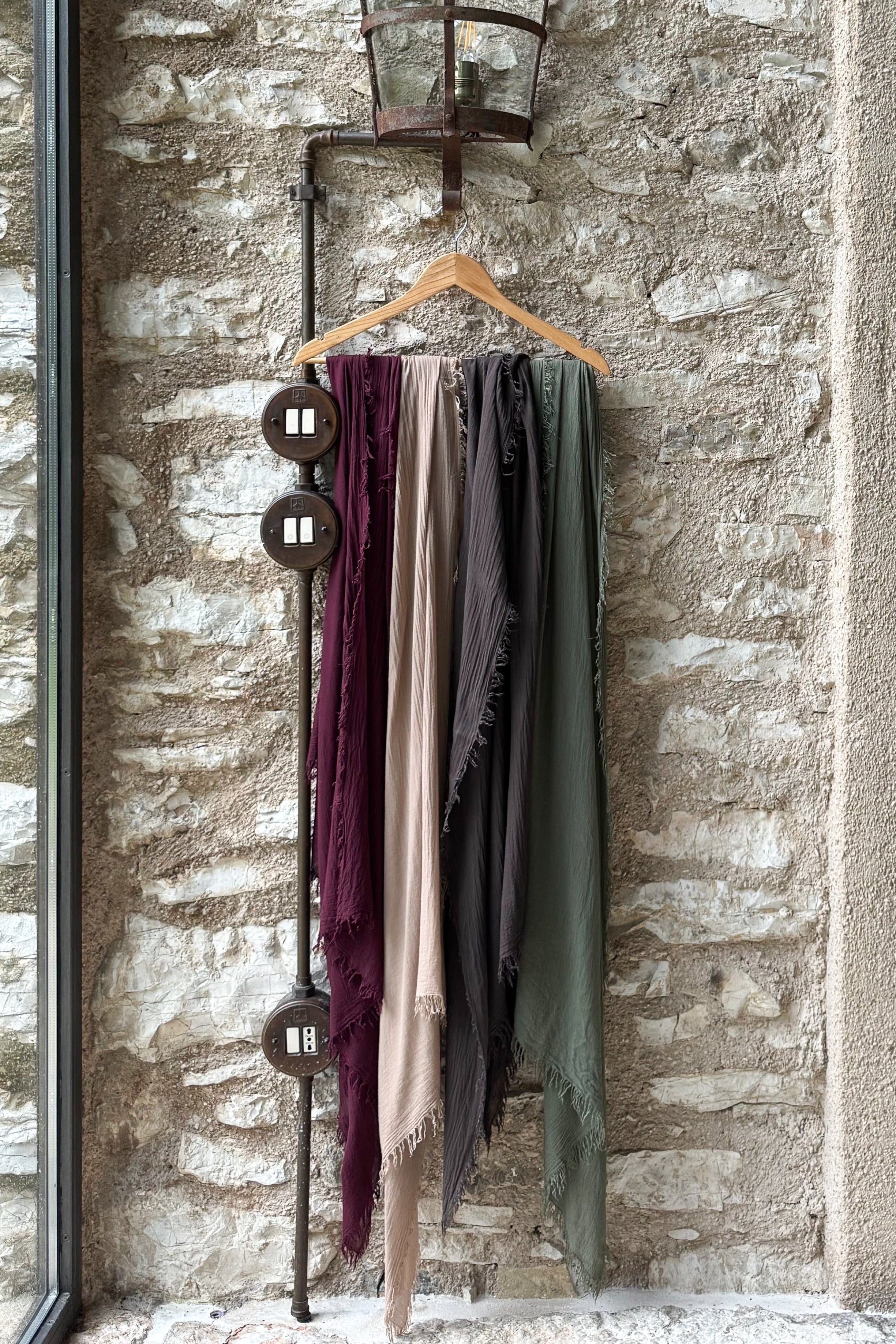 Pumpulinpehmoinen Bamboo-huivi on ylellinen kaulalla. Huivi on ilmava ja ohut ja laskeutuu ihanasti kaulalle tai hartioille. Suorakulmion muotoinen huivi on helppo stailata asuun kuin asuun. Hillityt hapsut reunoilla.