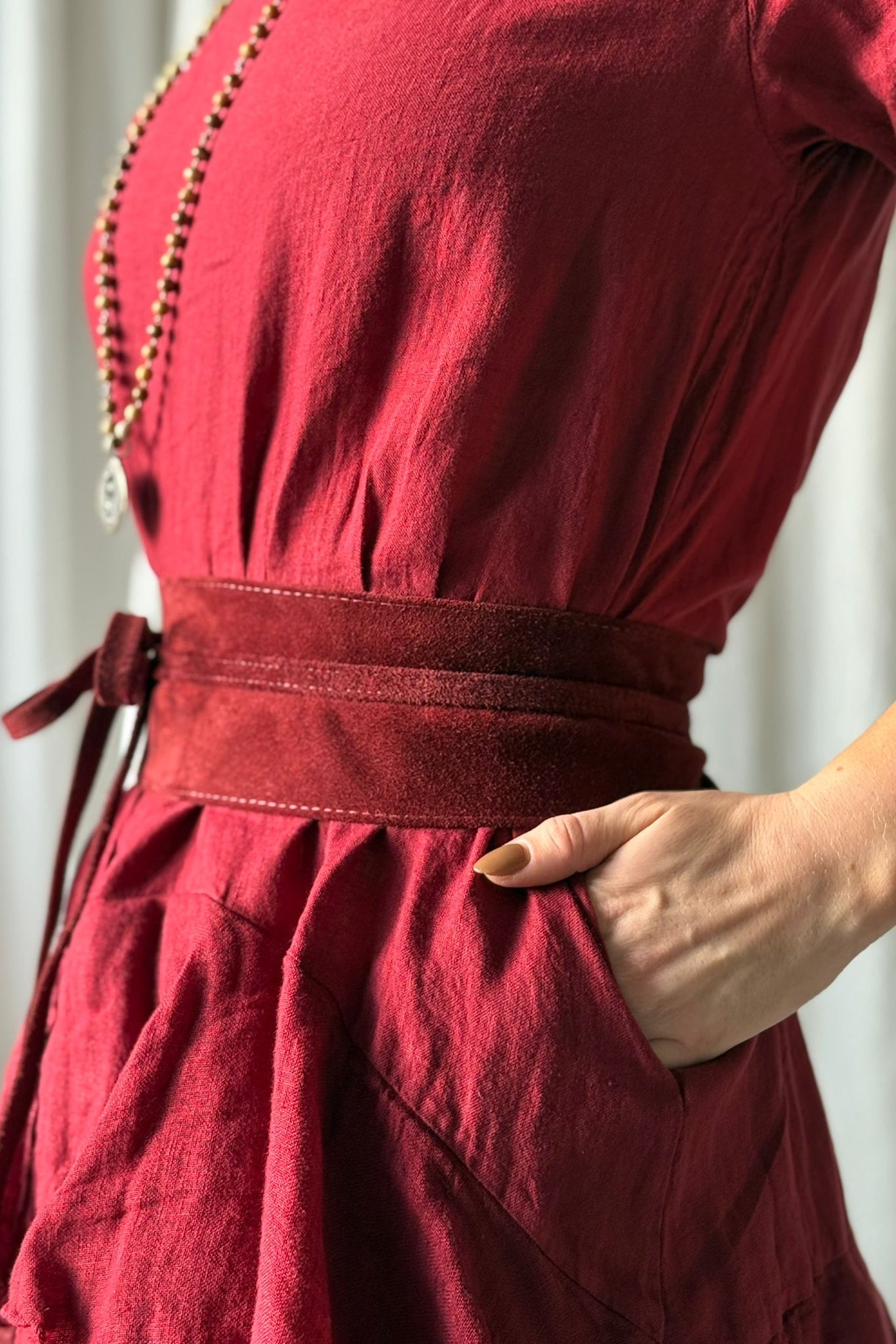 Leveä nahkavyö on tyylikäs ja korostaa vyötäröä kauniisti. Yhdistä paidan tai mekon kanssa. Pitkä nyöri mahdollistaa vyön solmimisen itselleen sopivaksi.
