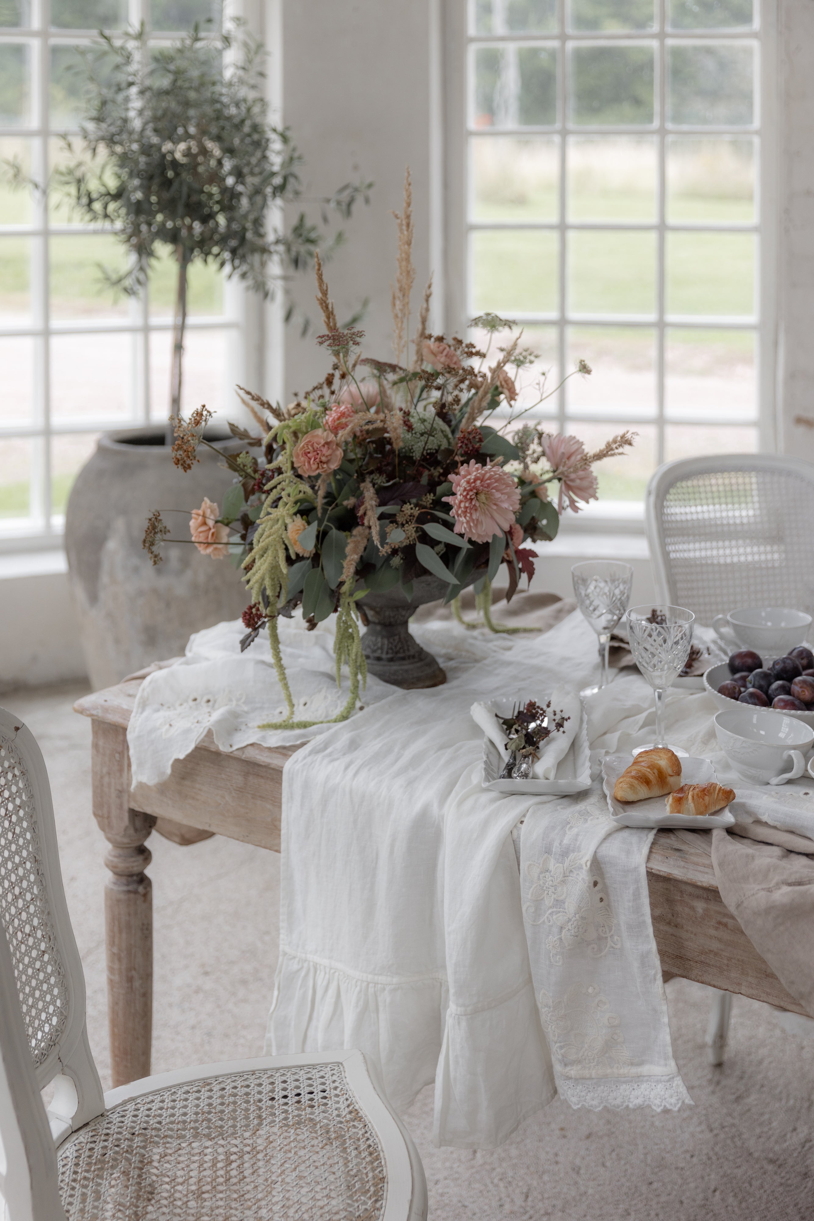Pellava on ajaton materiaali myös pöydän kattauksessaa ja antiikkivalkoinen täydellinen sävy !