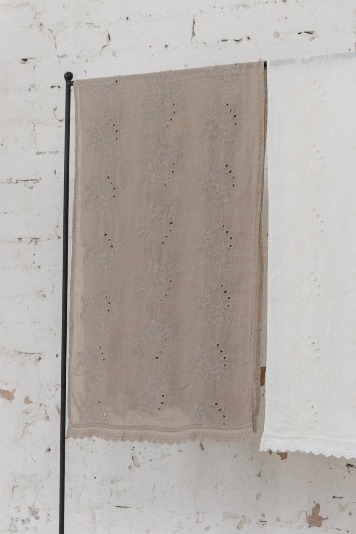 Bohemiana Home -malliston Brocante-kaitaliina hurmaa ajattomalla eleganssillaan ja ranskalaisella vintage-viehätyksellään. 100 % pellavasta valmistettu kaitaliina on koristeltu upealla pitsibrodeerauksella, joka luo kattaukseen romanttista tunnelmaa ja hienostuneisuutta.