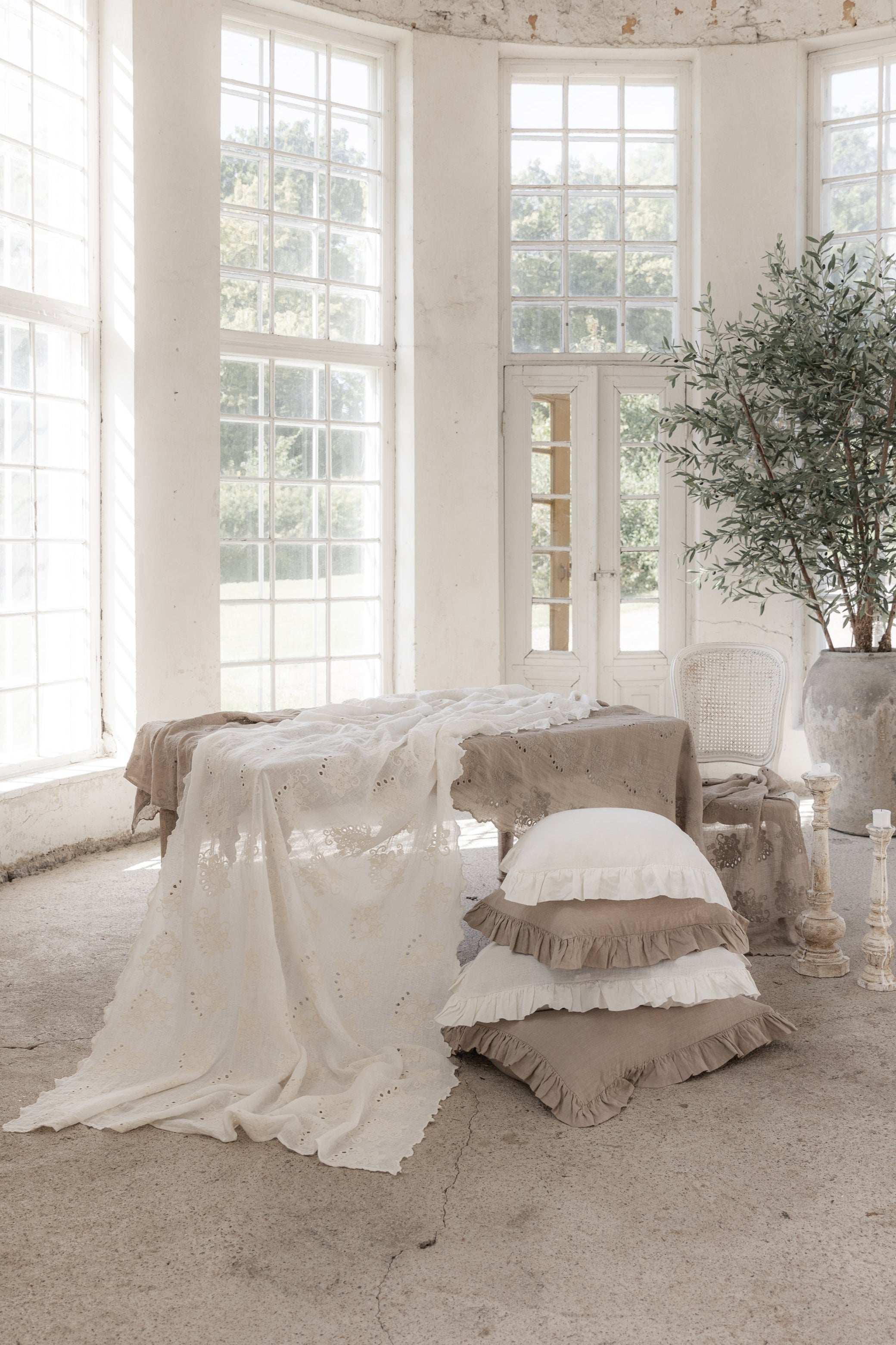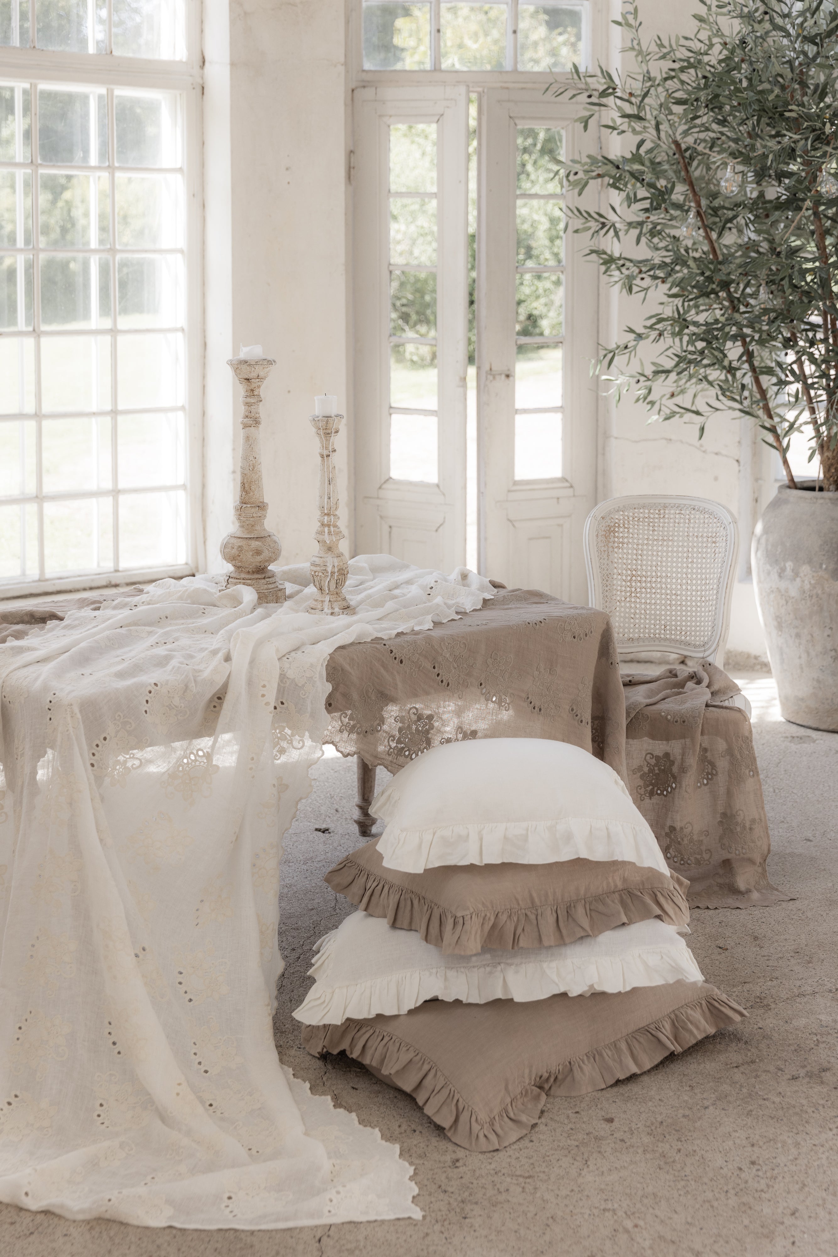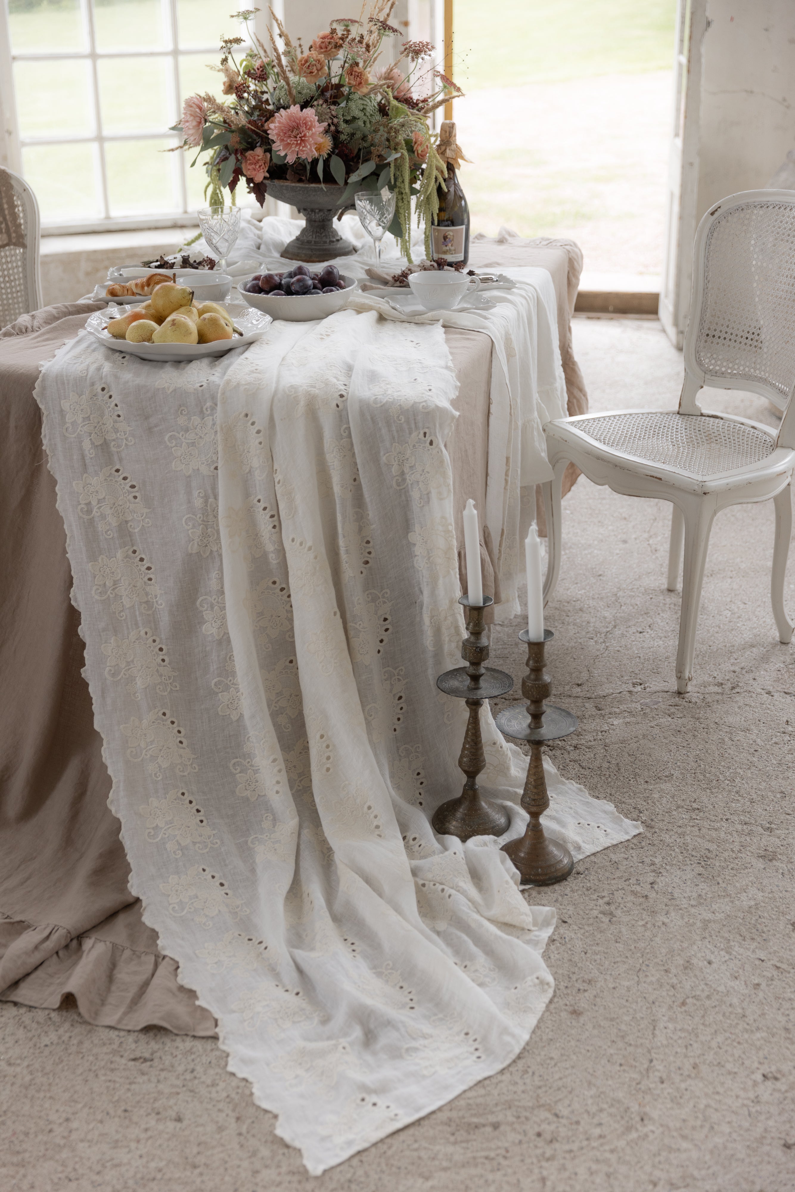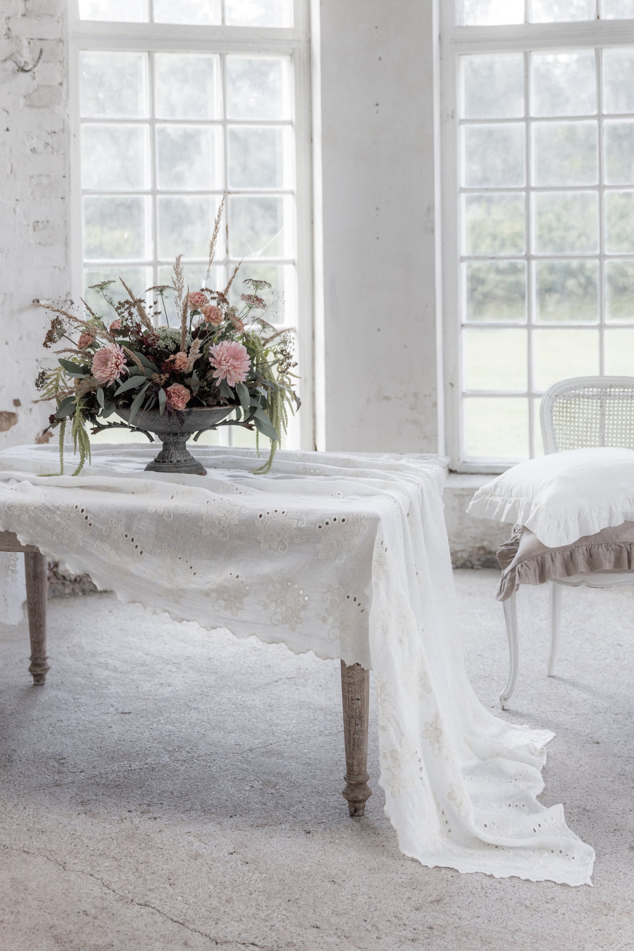 Tämä Bohemiana Home -malliston upeasti brodeerattu pöytäliina tuo kattaukseen ainutlaatuista romantiikkaa ja hienostunutta vintage-nostalgiaa. Vintage pöytäliina luo juhlapöytään keveän ja ylellisen tunnelman.