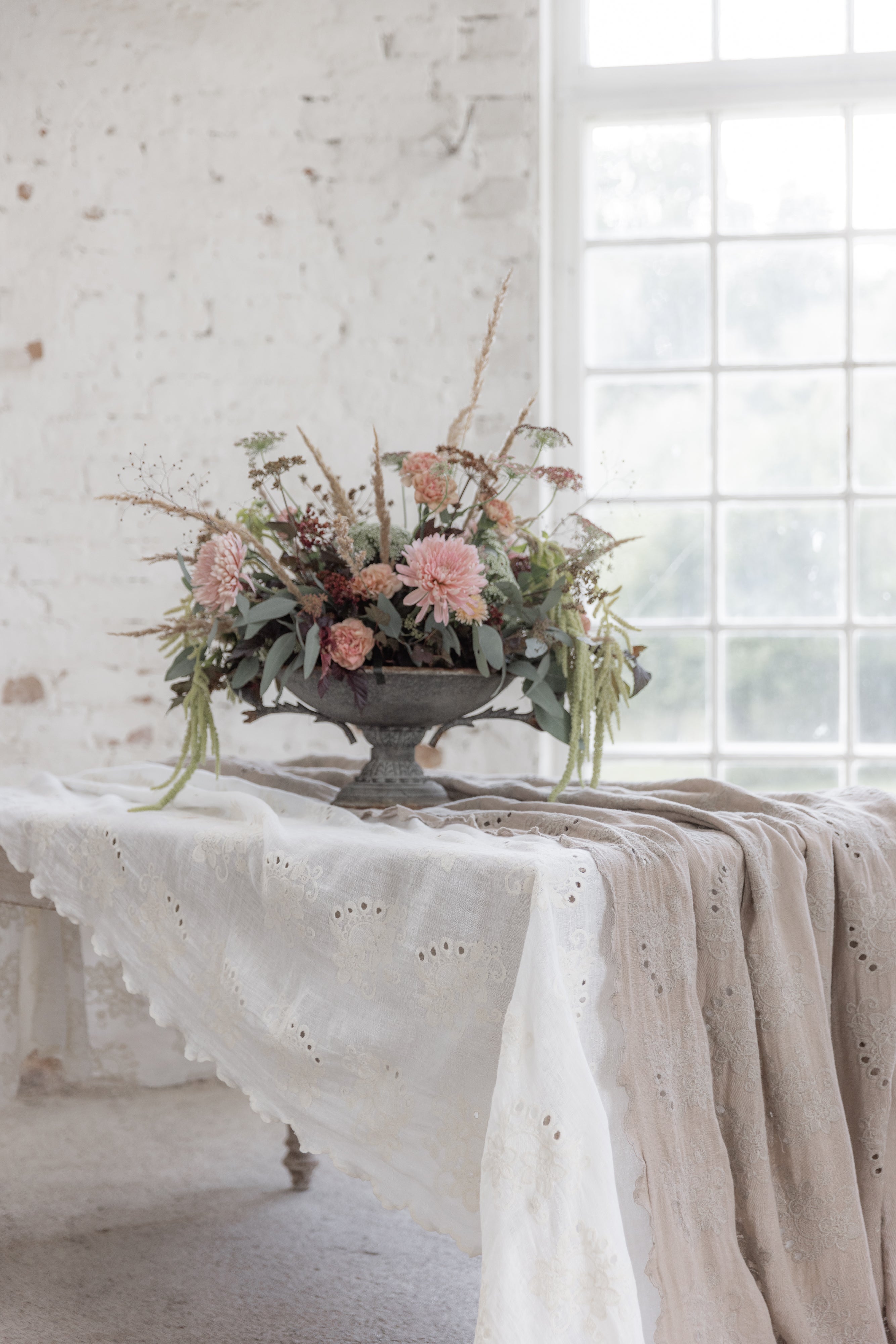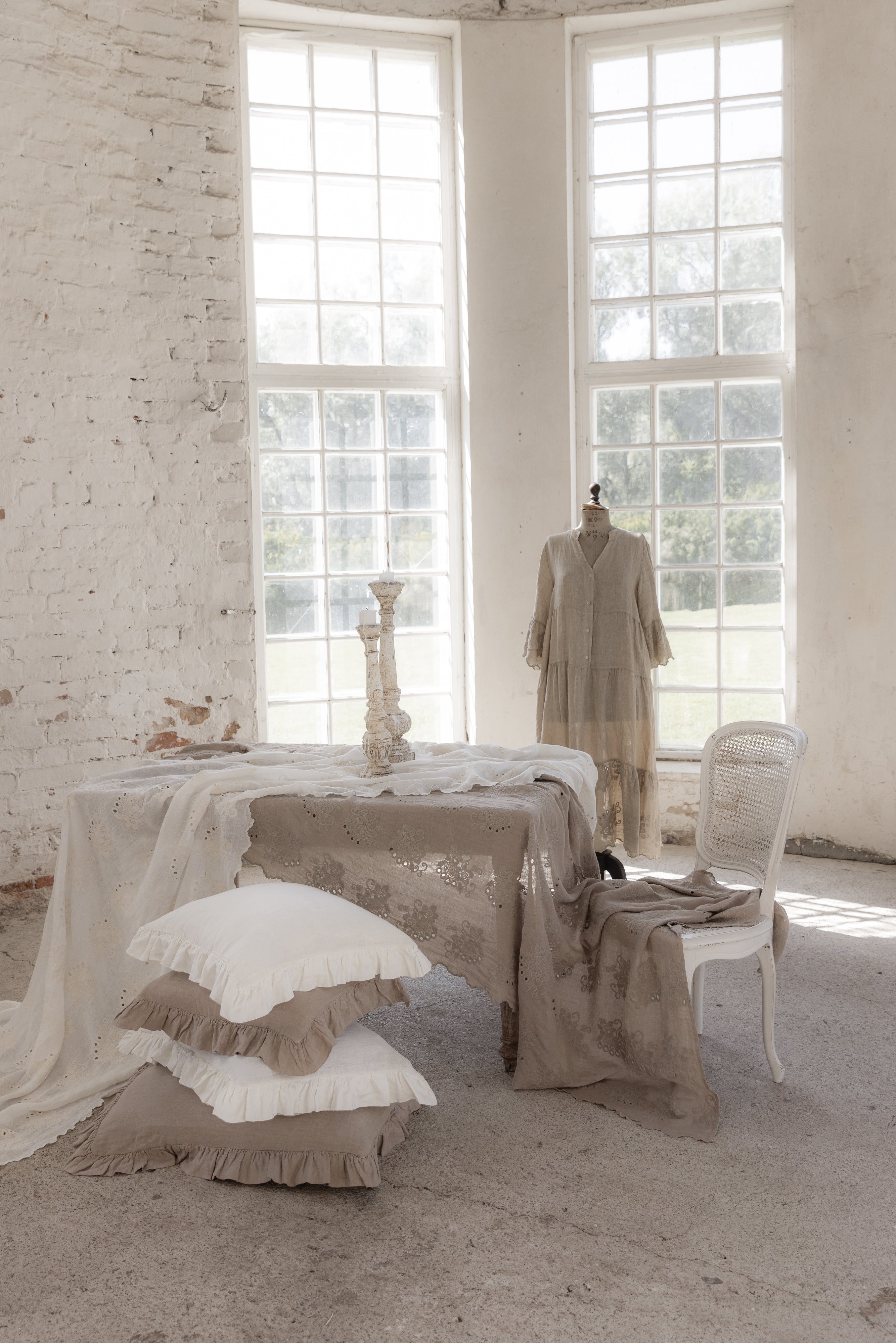 Kevyt ja ilmava 100% pellavainen pöytäliina laskeutuu kauniisti ja antaa kattaukselle herkkää eleganssia – täydellinen niin hääjuhlaan, romanttiseen illalliseen kuin arjen kaunistamiseen.