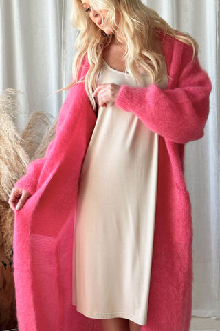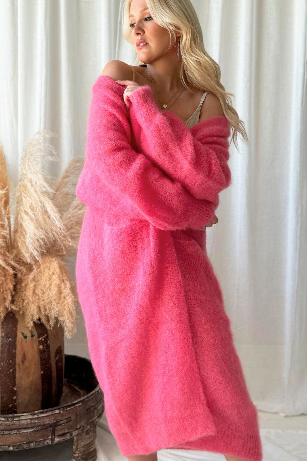 Ihanan muhkea ja ylellinen mohair-neuletakki, jossa kevyt resori helmassa ja hihansuissa. Laskettu olkapäälinja. Neuleessa on pörröinen ja muhkea tuntu.
