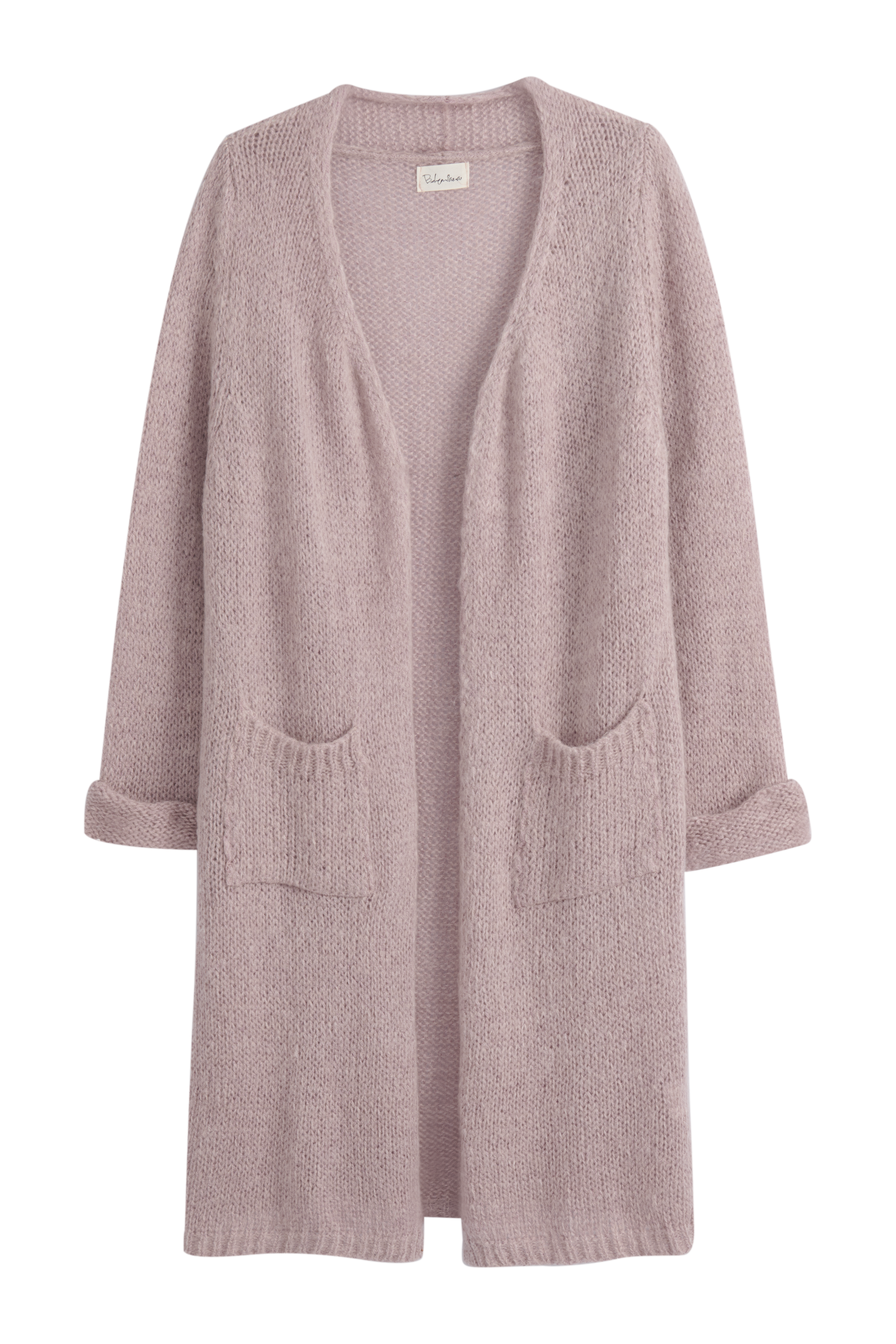 Pitkä ja pehmoinen bestseller, sensuelli ja ilmava neuletakki mohairsekoitteesta. Käännetyt, tarkoituksellisesti oversize-henkiset rennot hihansuut.