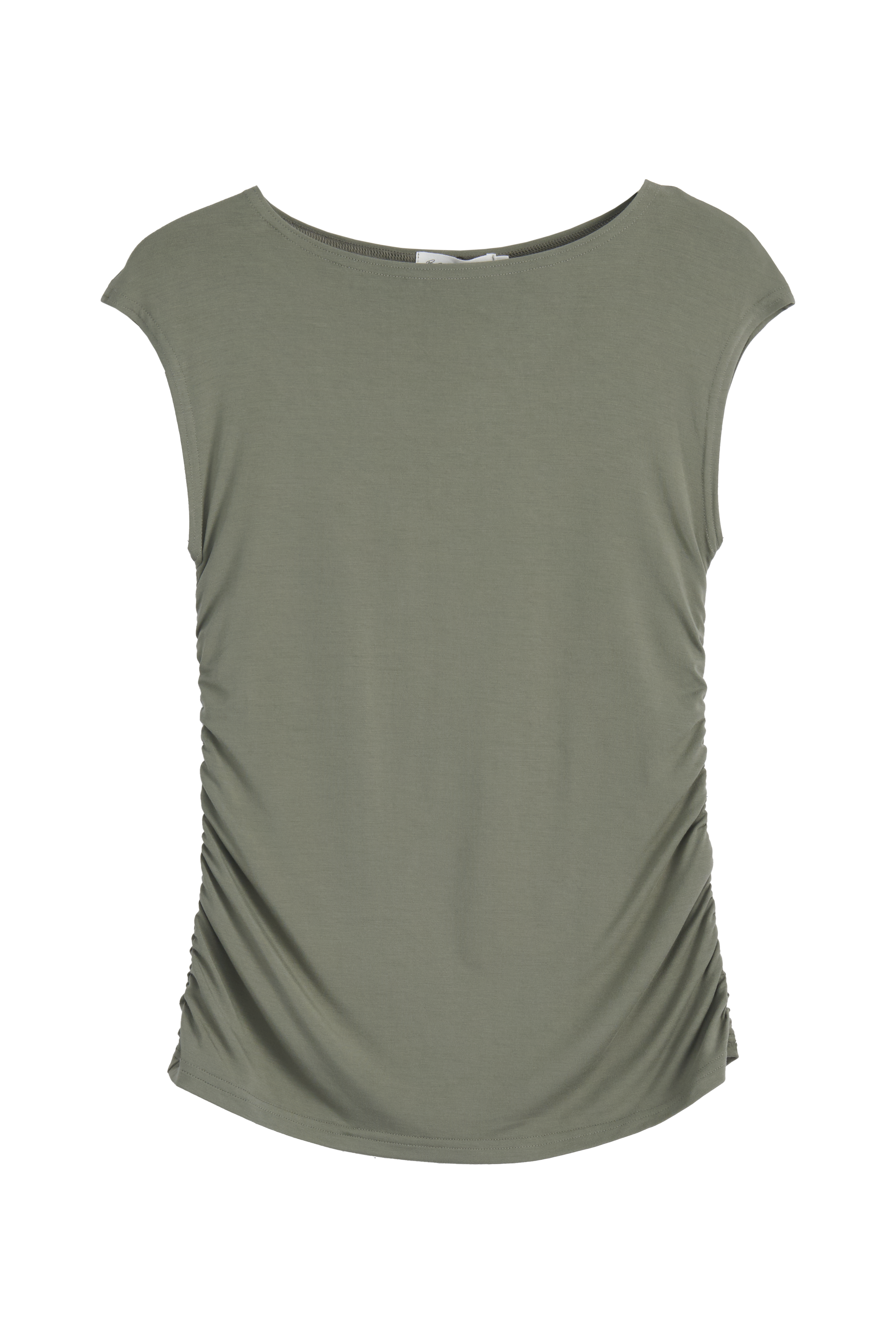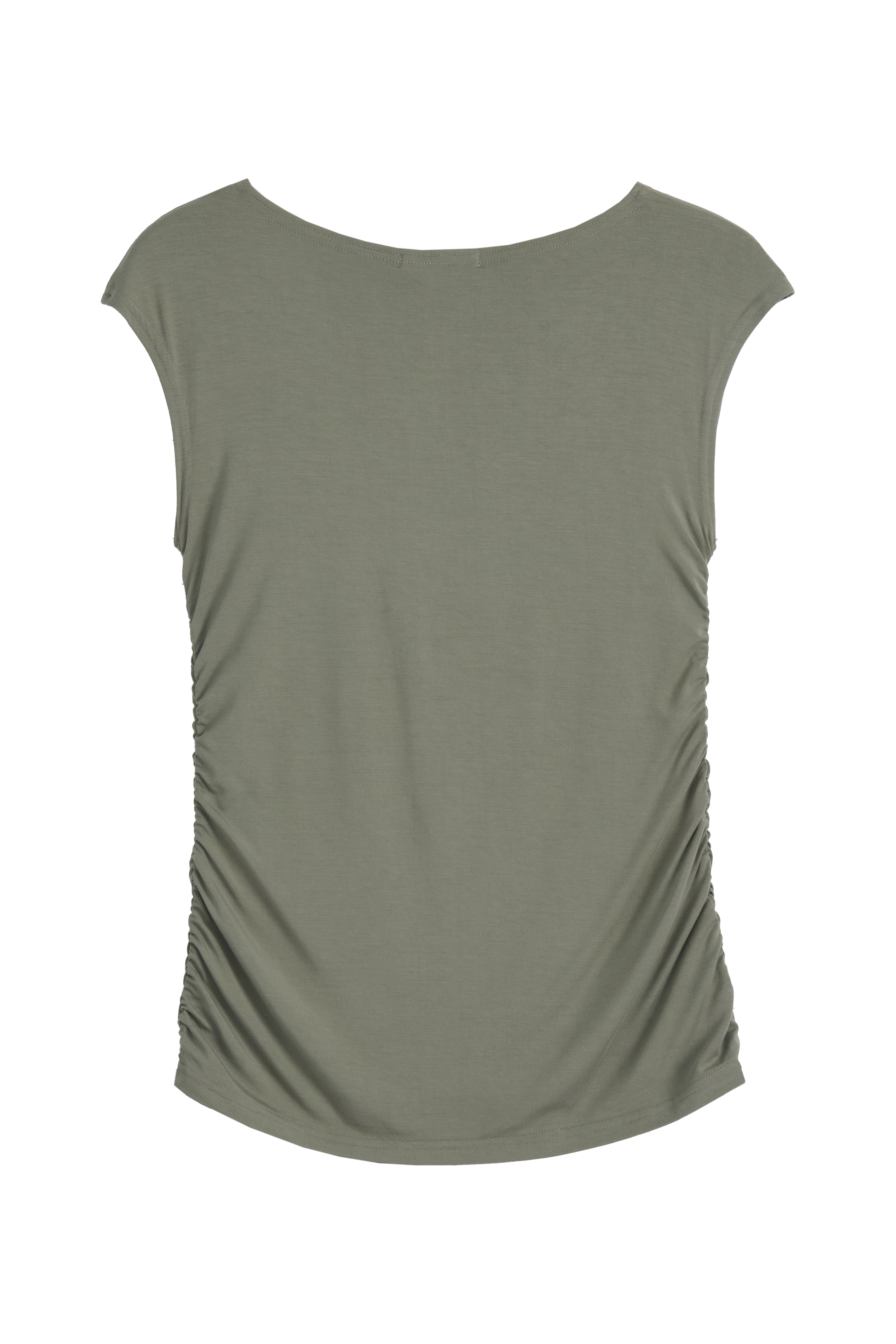 Elegantti, hihaton t-paita ohuempaa, silkinpehmeää bambutrikoota., jossa yhdistyvät mukavuus ja tyylikkyys. Malli istuu sivurypytysten ansiosta kauniisti vartalolle.