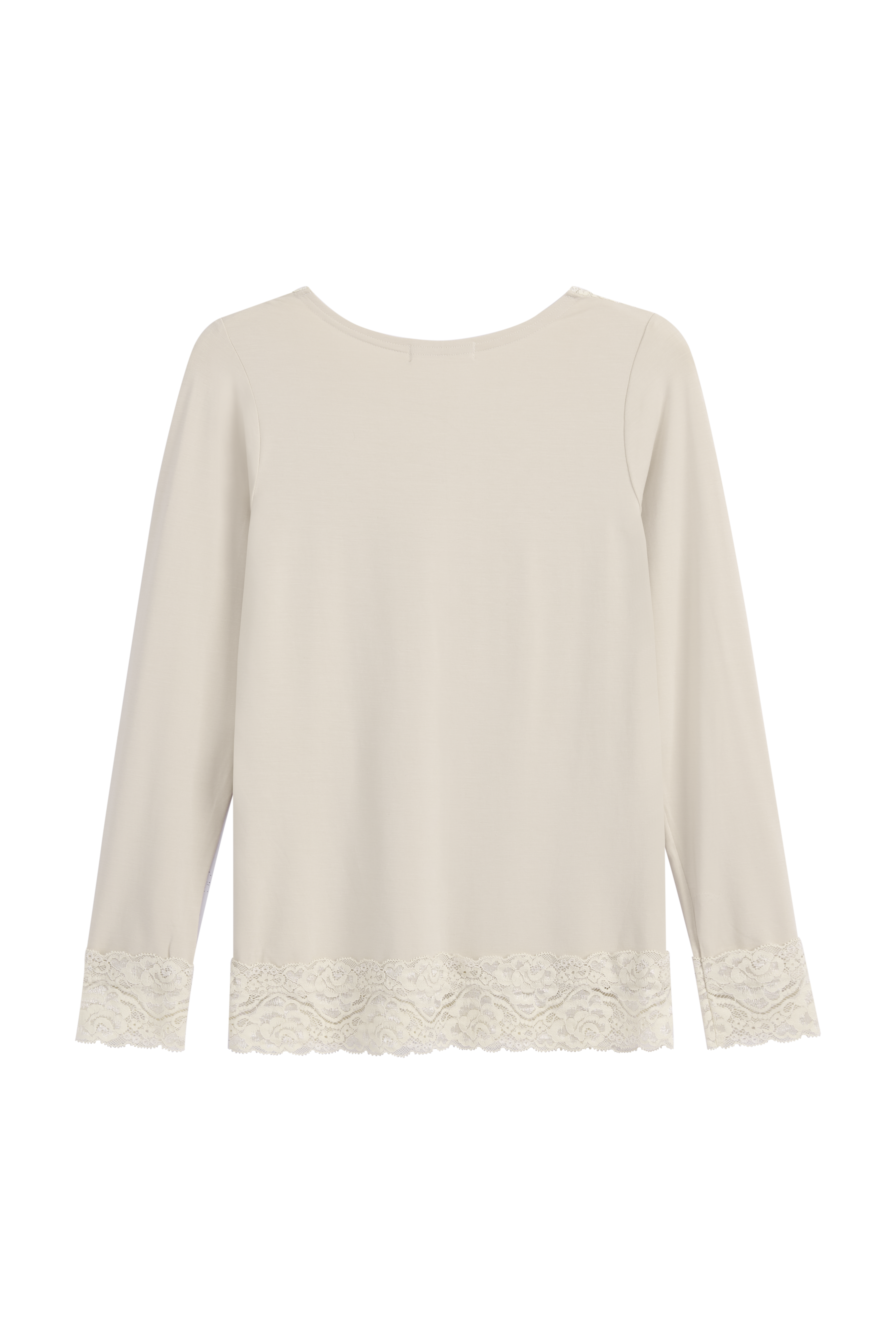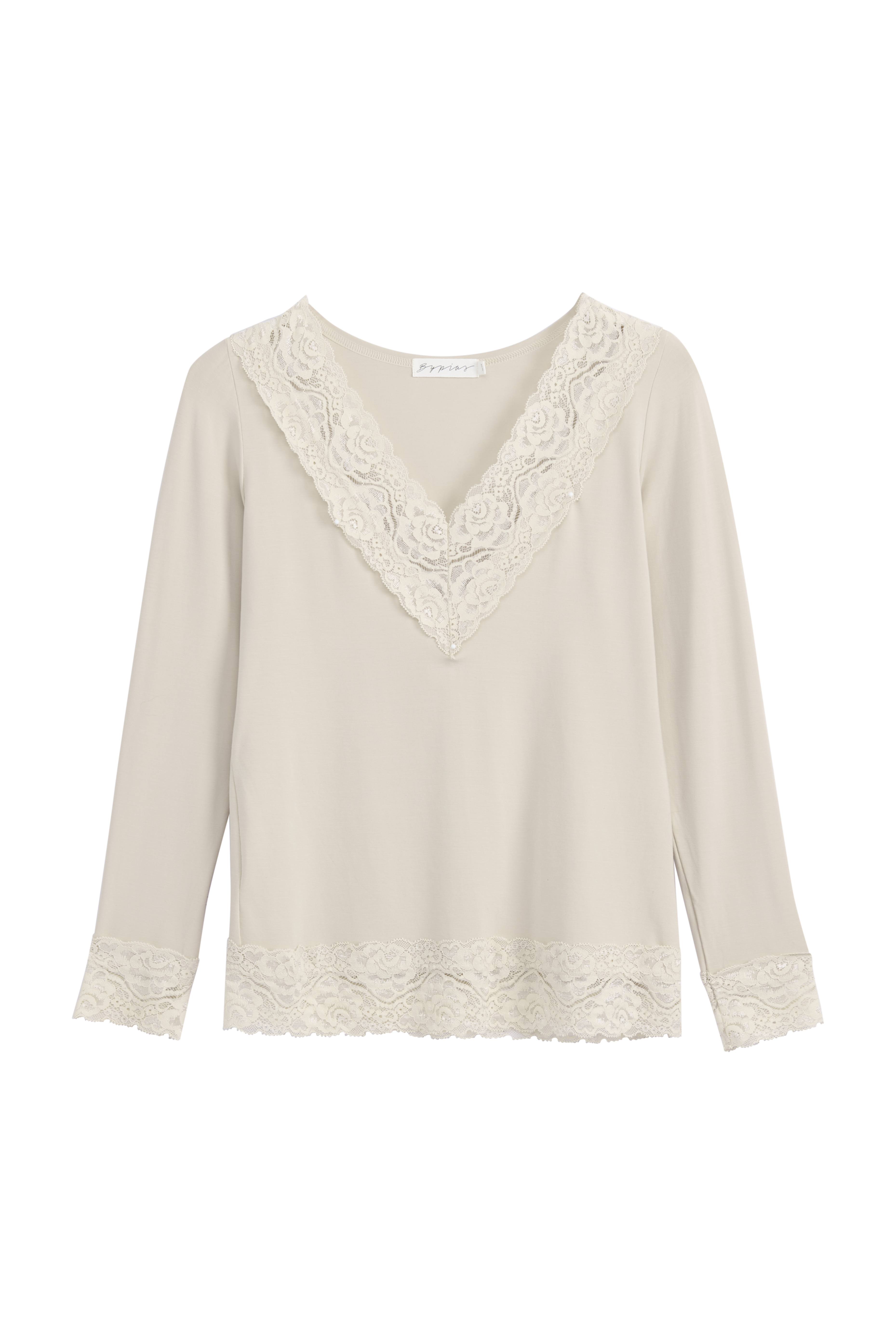 Bamboo Lace-malliston ylellinen paitakaunotar, jonka sensuelli leveä pitsi on etuosassa V-kaula-aukossa. XS/S kokoisella mallillamme on kuvassa päällään M. Sopii täydellisesti v-aukkoisten neuleiden alle.