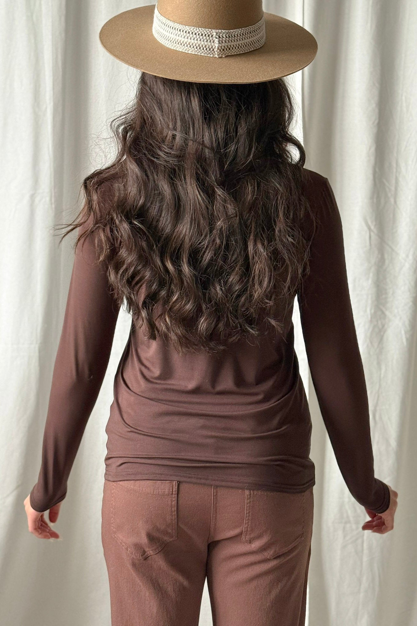 Kevyt bamboo pitkähihainen paita, jossa pyöreä pääntie. Joustava ja ylellisen ilmava materiaali on ihanan tuntuinen päällä ja sopii jokaisen vaatekaappiin. Kapeat hihat.