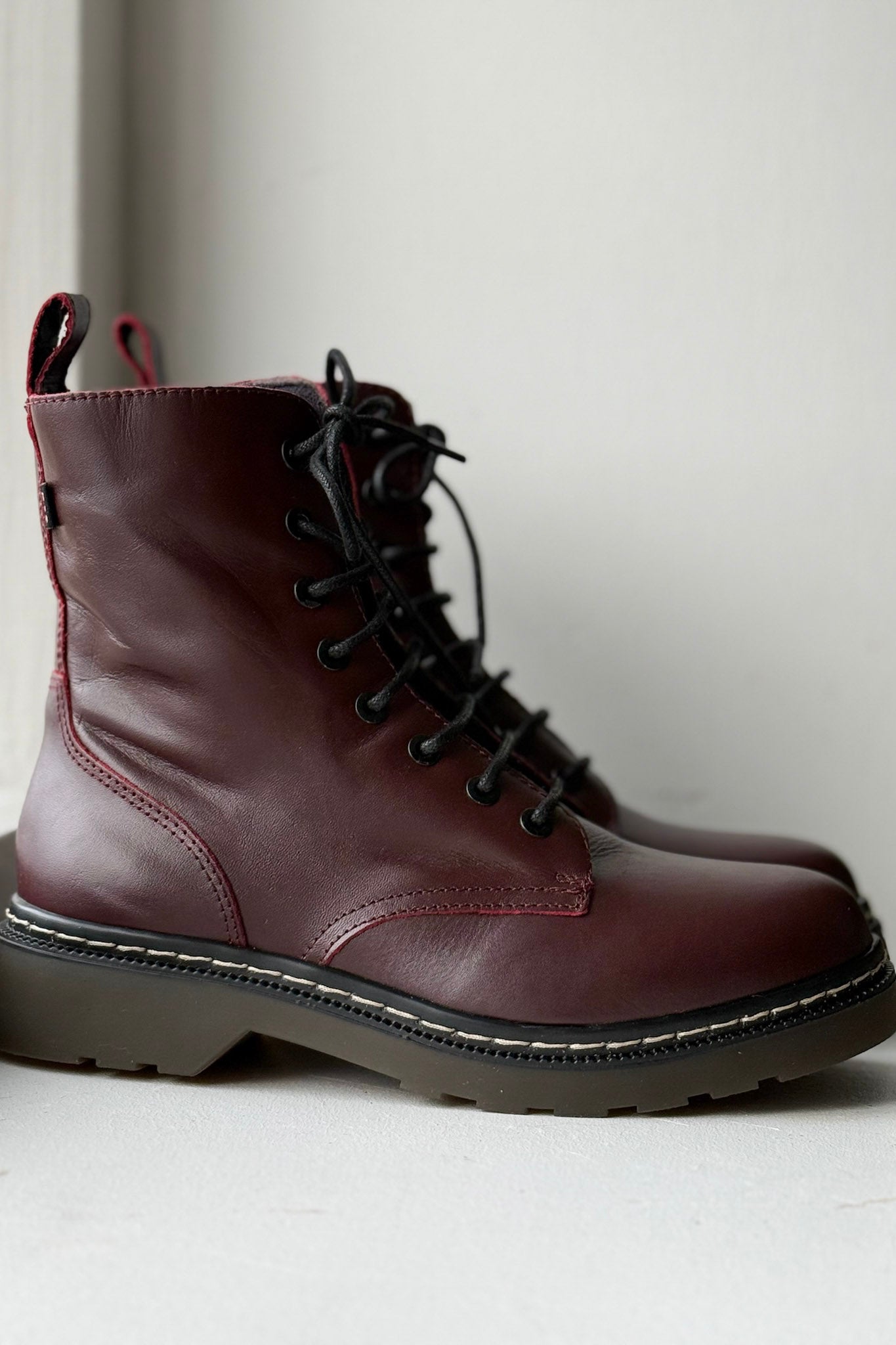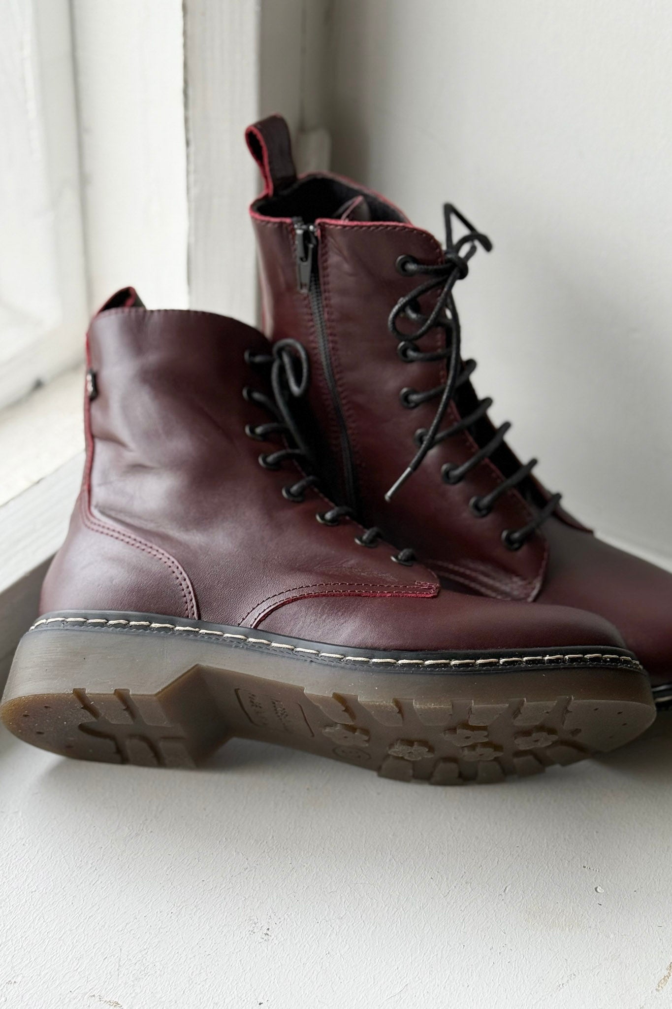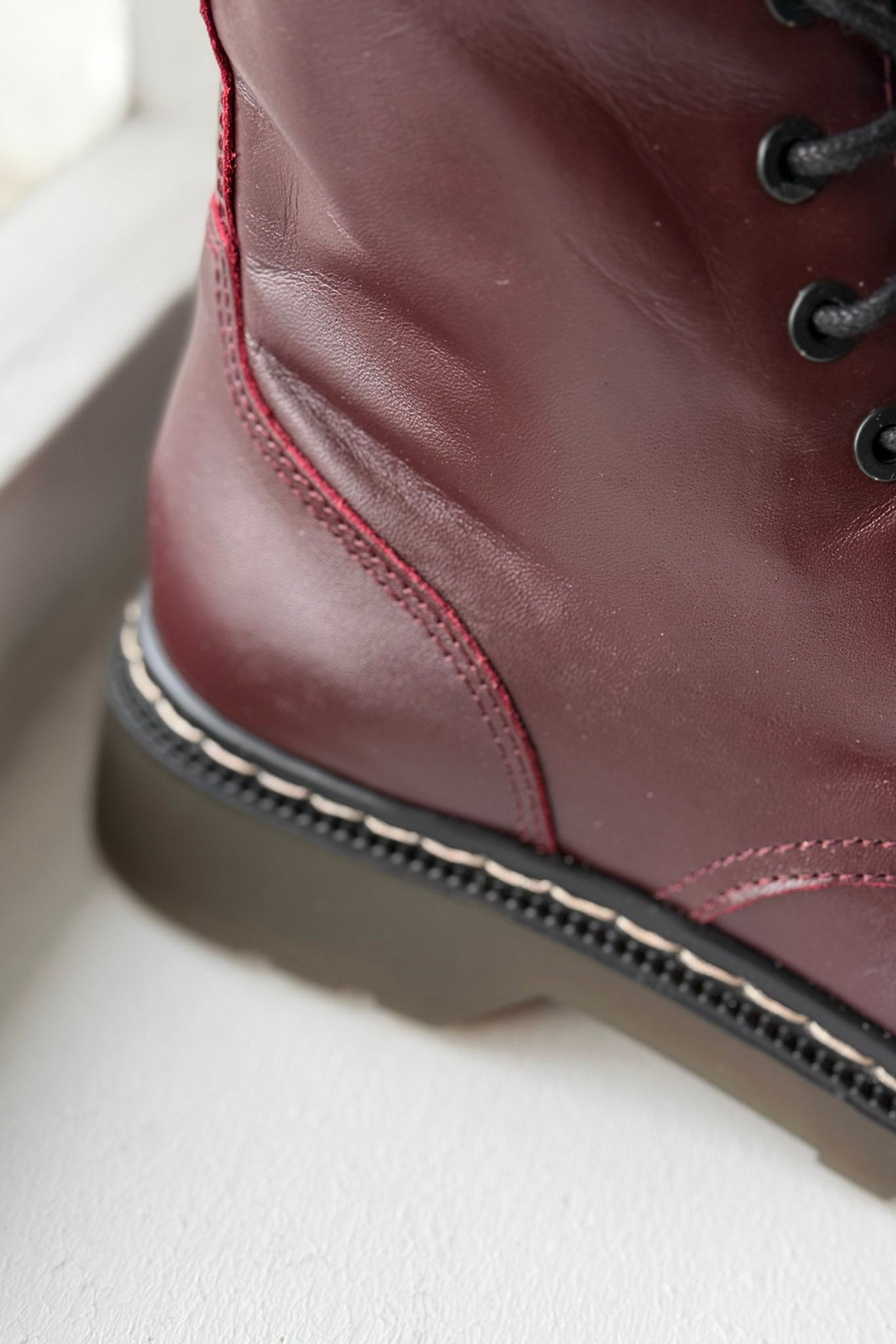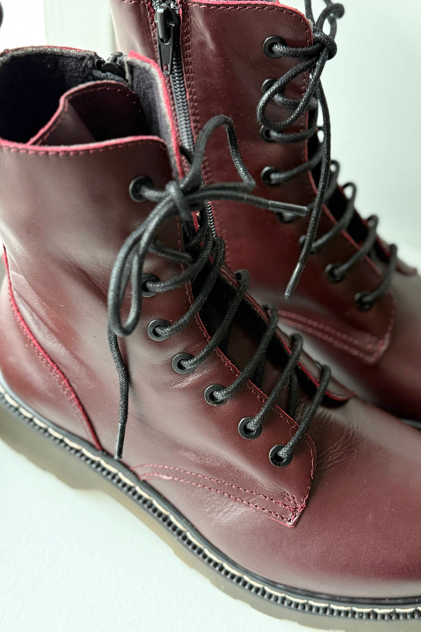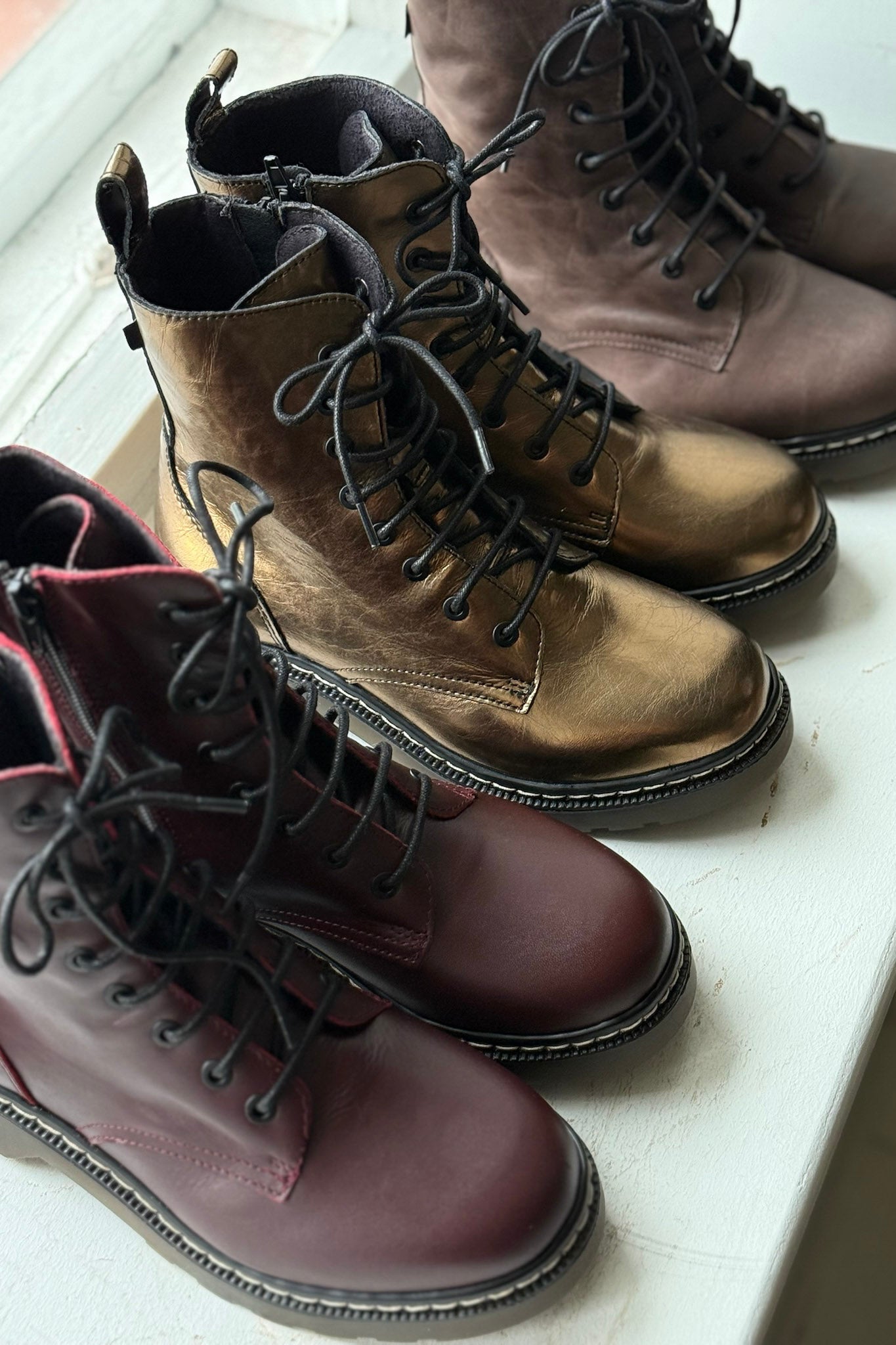 Laadukkaat nahkanilkkurit, jossa sisäsyrjällä vetoketju ja nauhat edessä. Saappaiden lesti normaali. Lämmittävä tekstiilivuori sisällä.