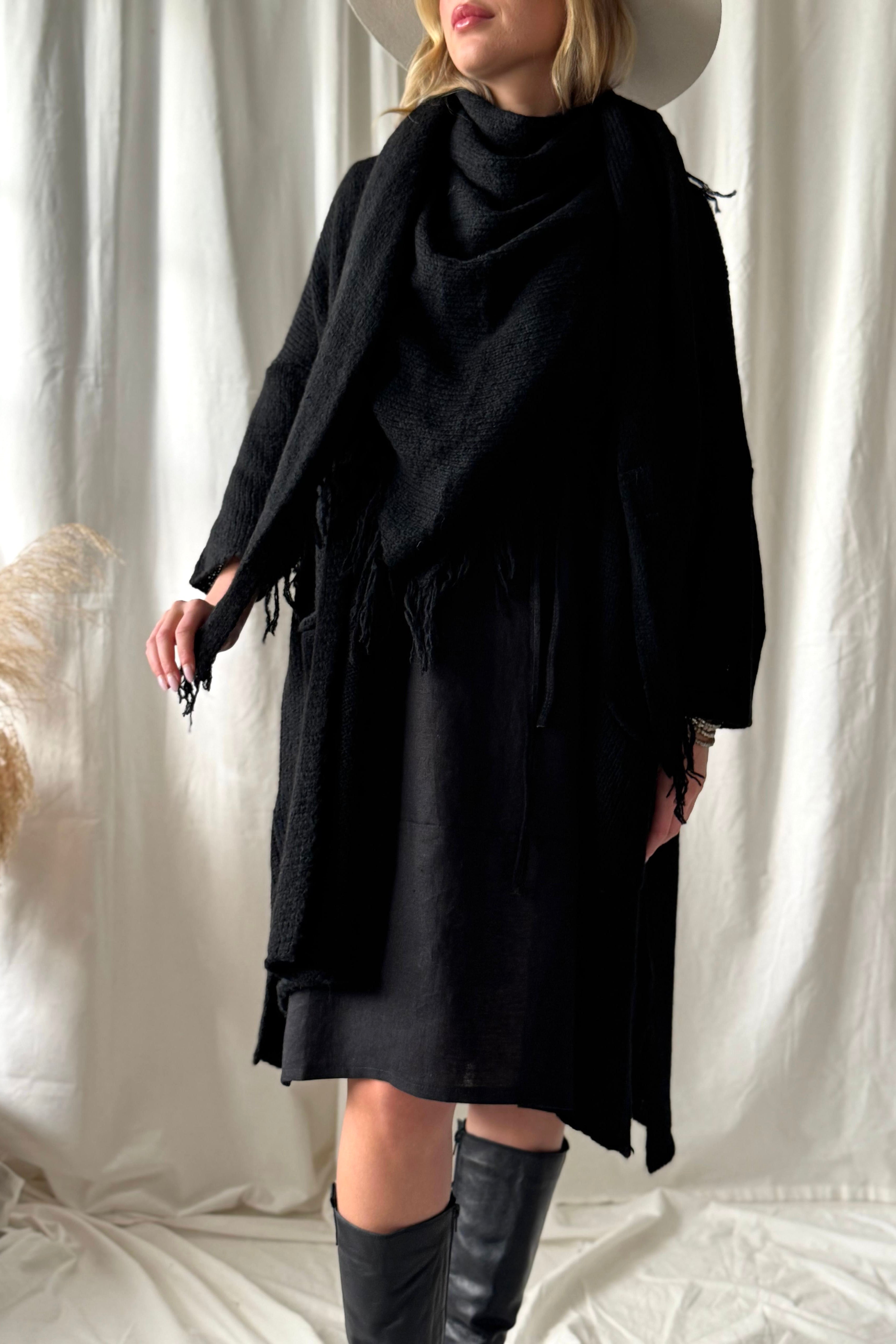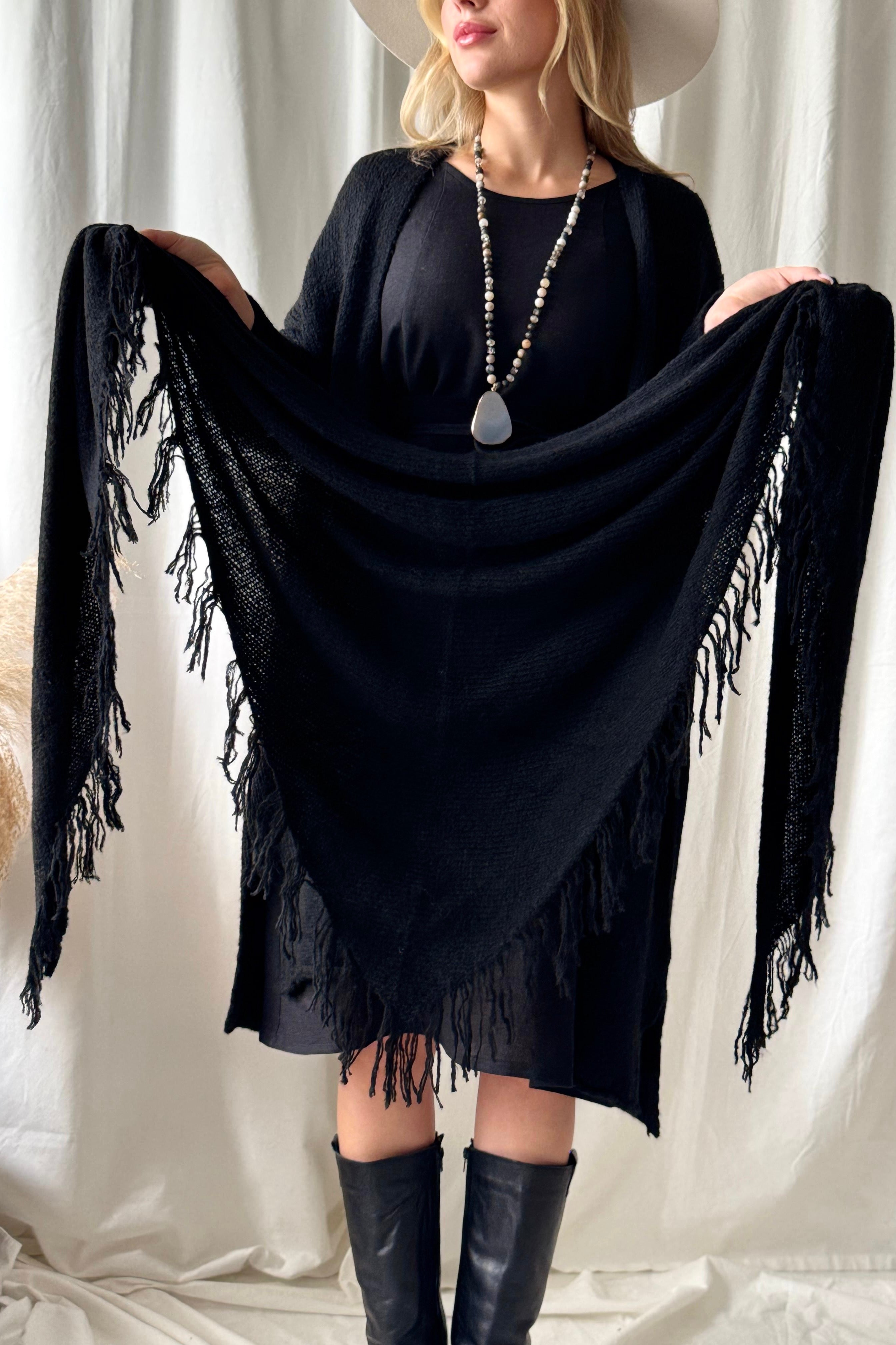 Sävy sävyyn huivi kruunaamaan tyylisi! Kolmiohuivi, jossa hapsut reunassa.