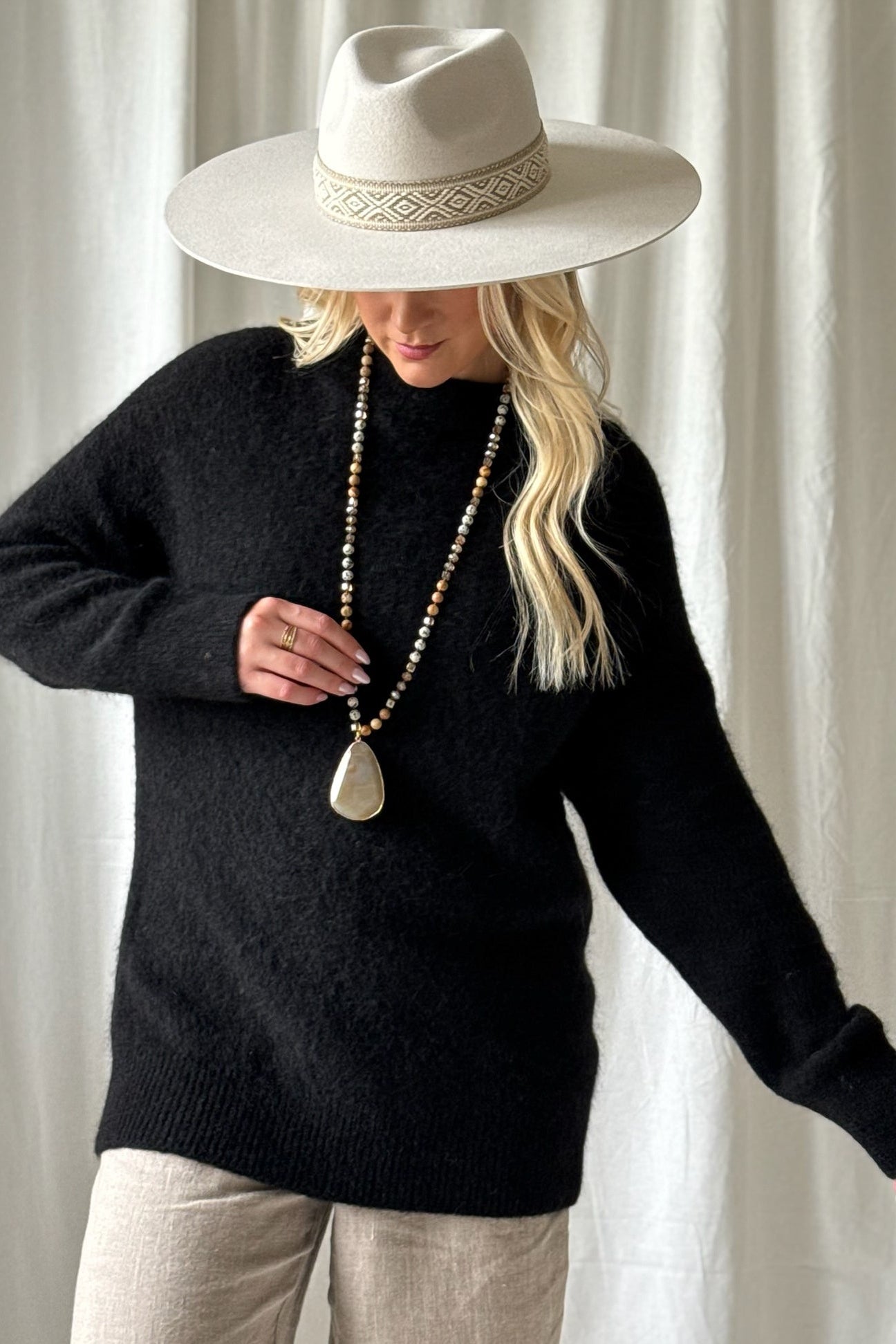 Ihanan pehmeä ja ylellinen neule, jossa pyöreäpääntie ja kevyet resorit hihansuissa ja helmassa. Lämmittävää ja tiheää neulosta. Käy hyvin myös mekkojen ja paitisten päälle.