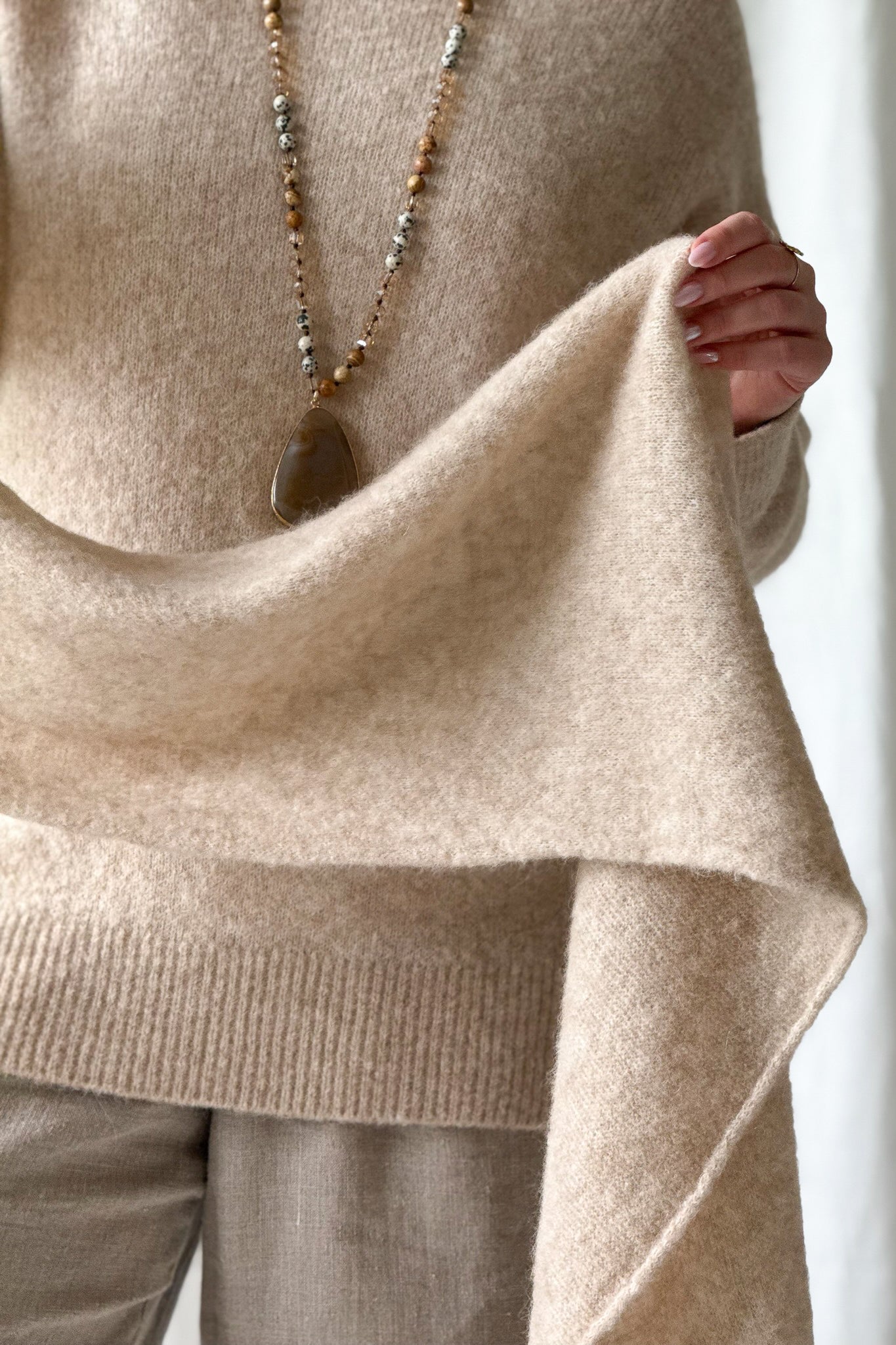 Ylellisen pehmeä ja lämmin alpakkahuivi viileämpiin päiviin. Alpakka materiaalina sopii myös herkkäihoisille, sillä se ei kutita.