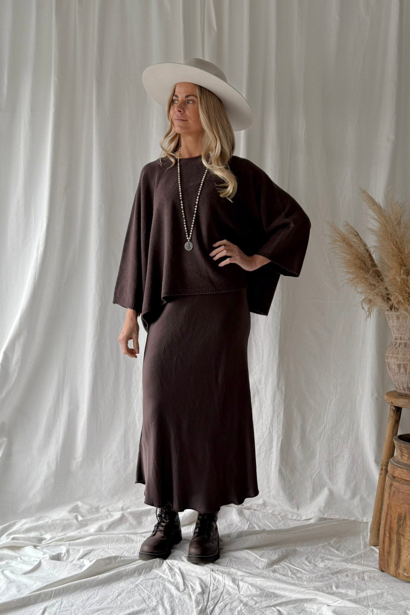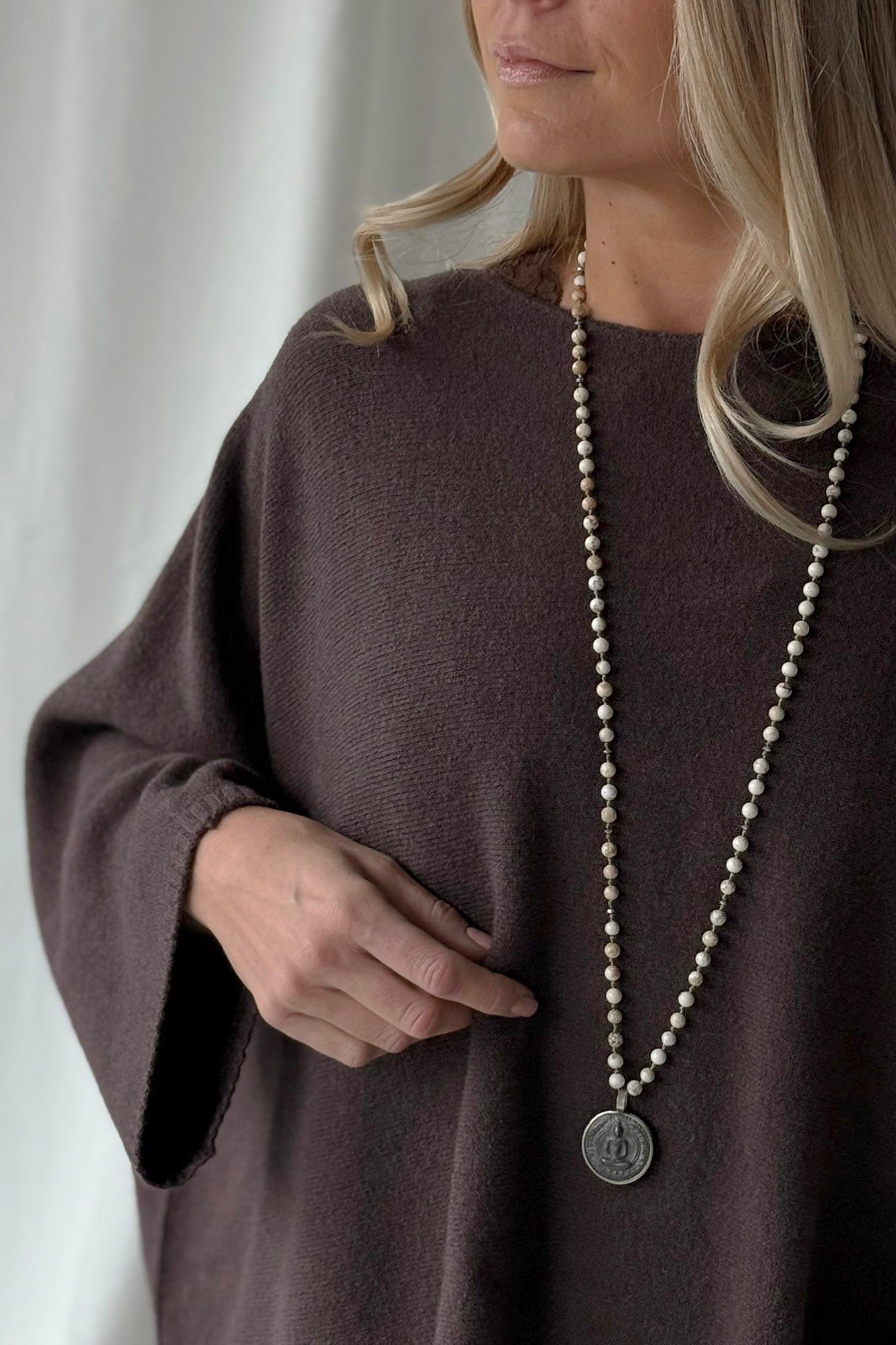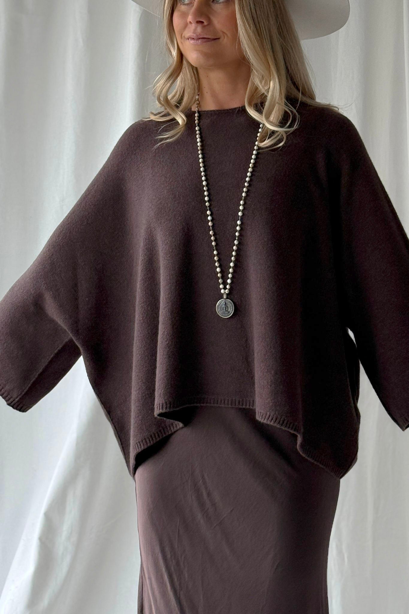 Huikean ylellinen, joustava oversize-tyylinen neulepaita, jossa on leveä helma ja leveähköt, hieman vajaamittaiset hihat. Koko hienouden kruunaa erityinen viskoosisekoite-neuloksen materiaali.