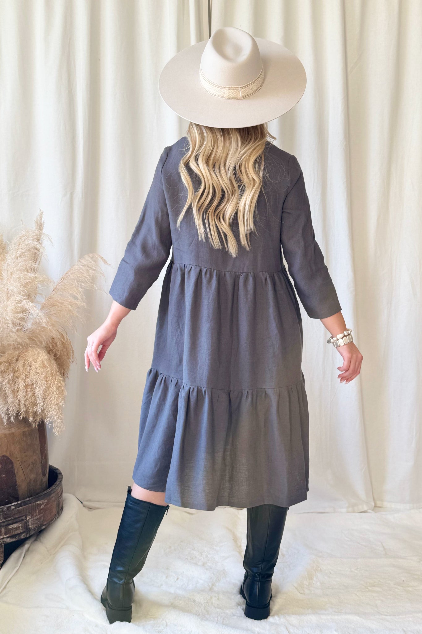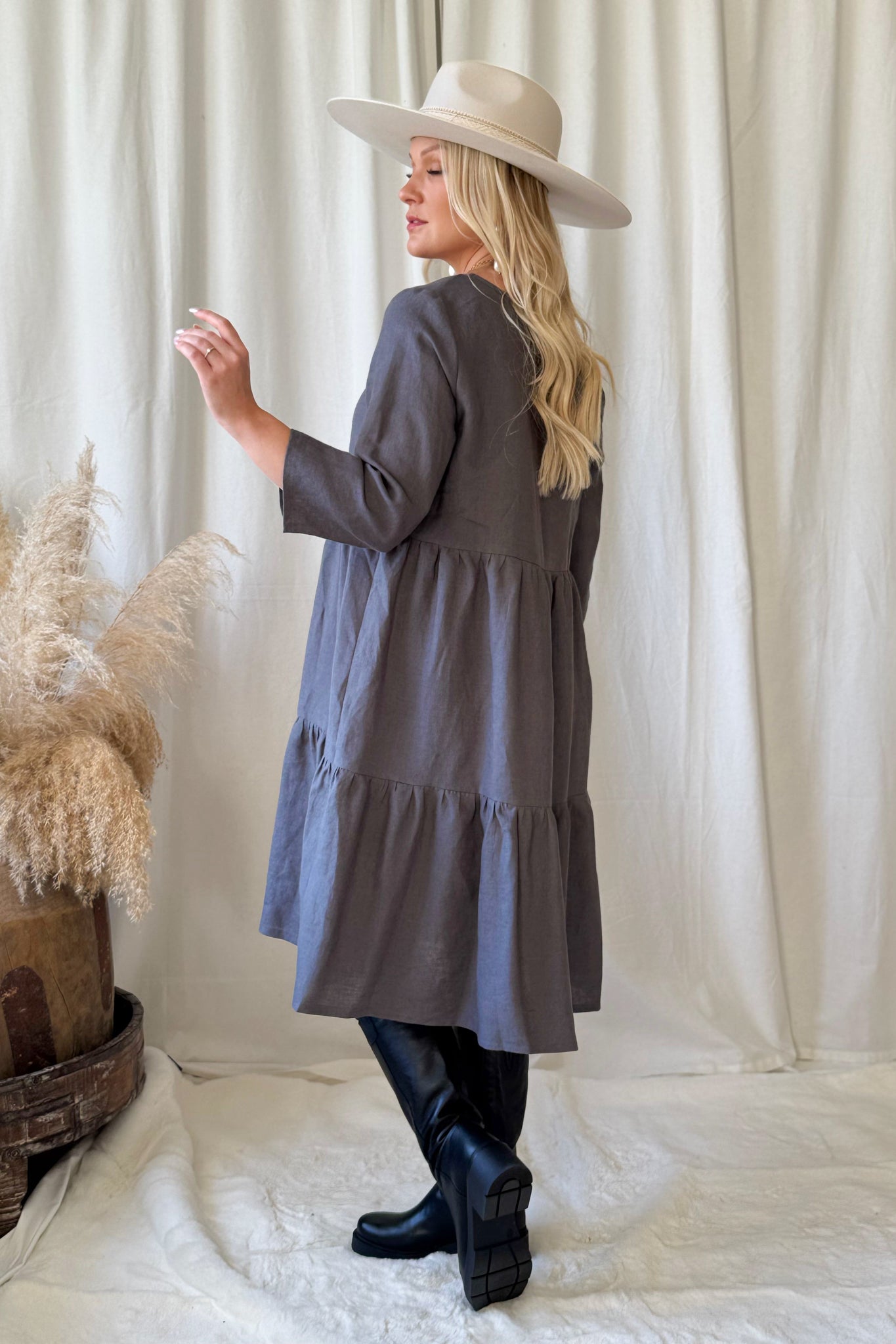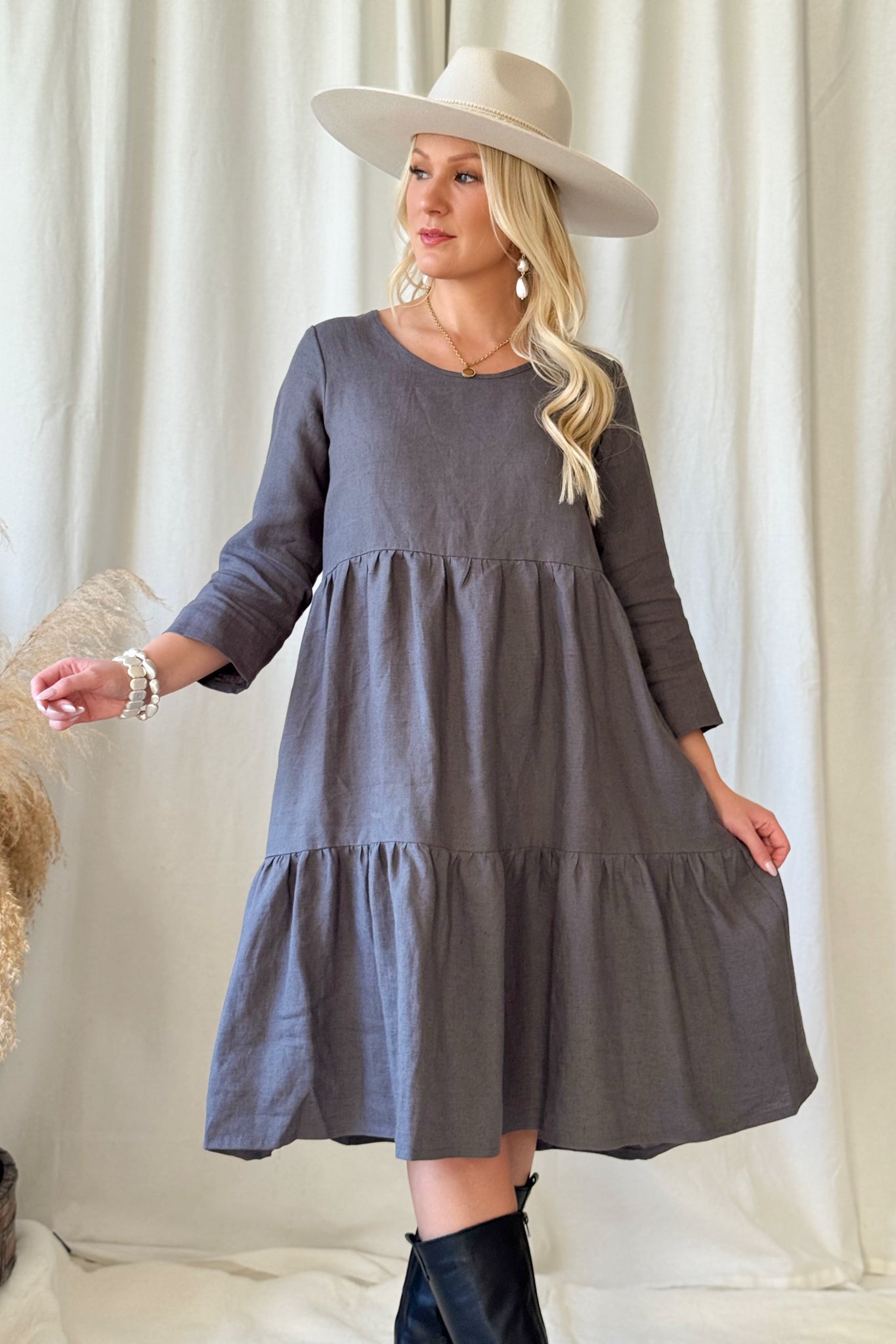 BYPIAS pellavamekkojen ajaton klassikko arkeen kuin juhlaan. Frillahelmaisessa mekossa polvet peittävä pituus ja pyöreä pääntie. 3/4 hihanpituus toimii joka sesonkiin.