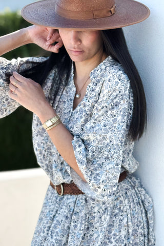 Elena viskoosimekko, off white-blue floral