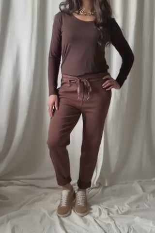Trendikkäät, väljät ja supermukavat joggerit! Joggereissa on vyötäröllä joustava resori, kiristysnauha jossa logo ja käännetyt lahkeet.