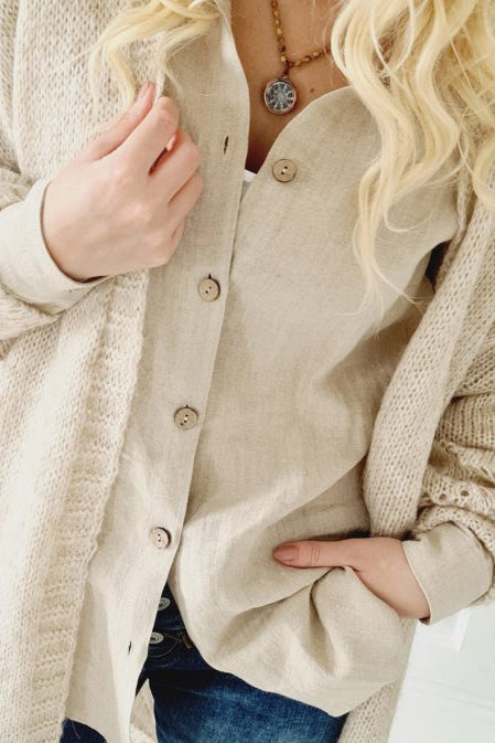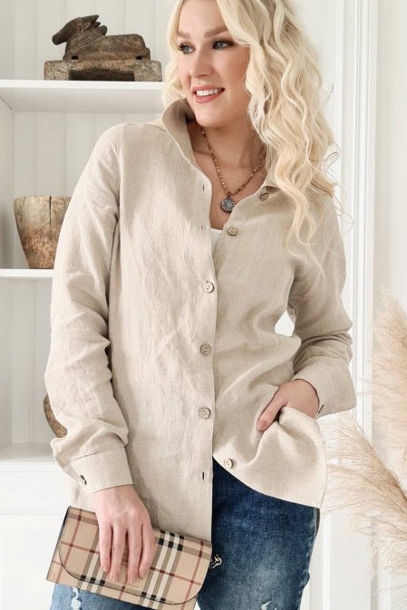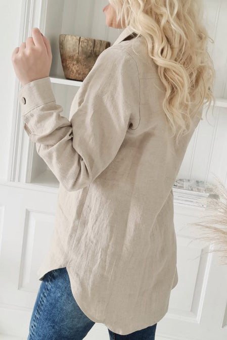 Täydellinen klassisen mallinen pellavapaita joka sopii sekä rentoon asuun että siistimpään bisneslookkiin. Sopii myös rintaville.