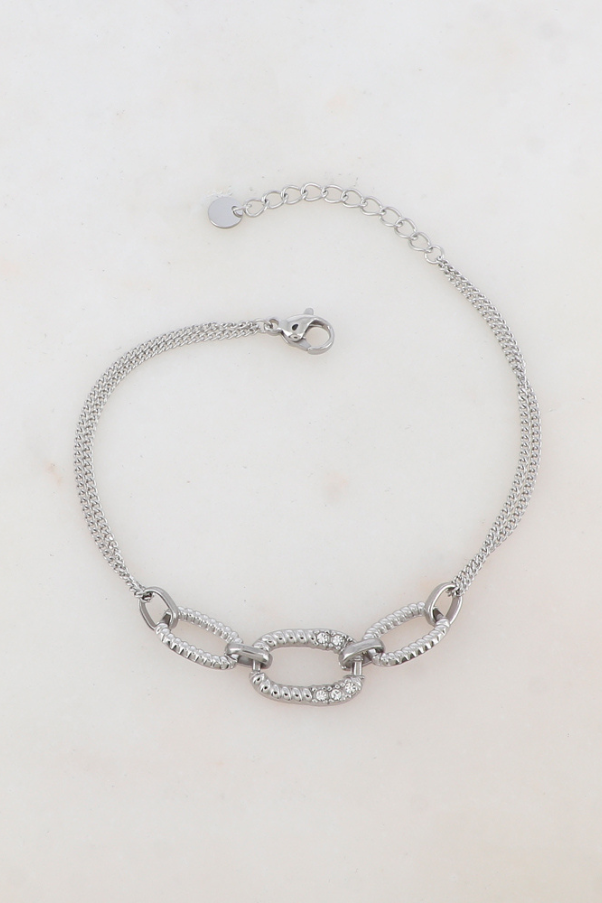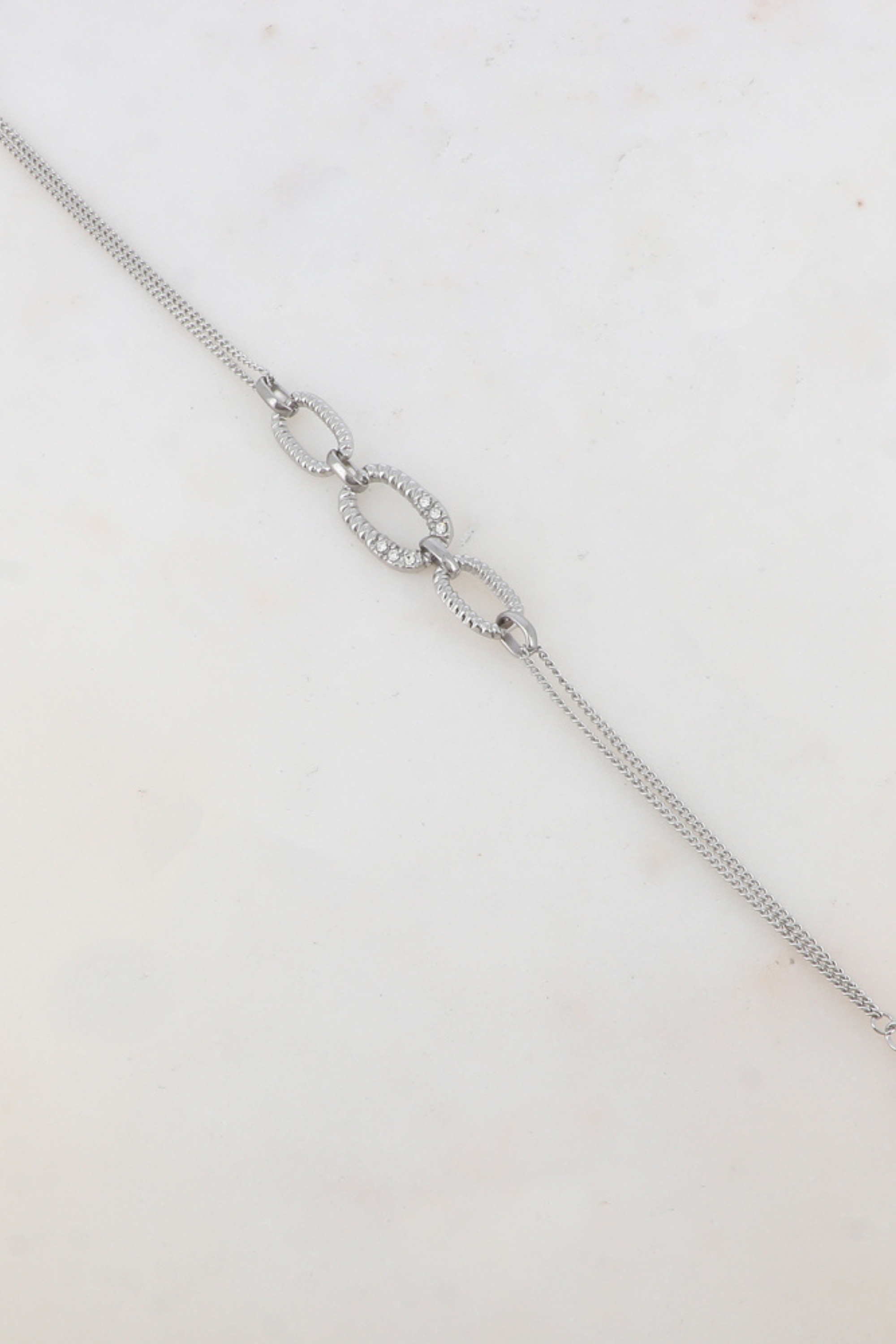 Säihkyvä hopeanvärinen 2-kerroksinen rannekoru, jota koristelevat strassit.
