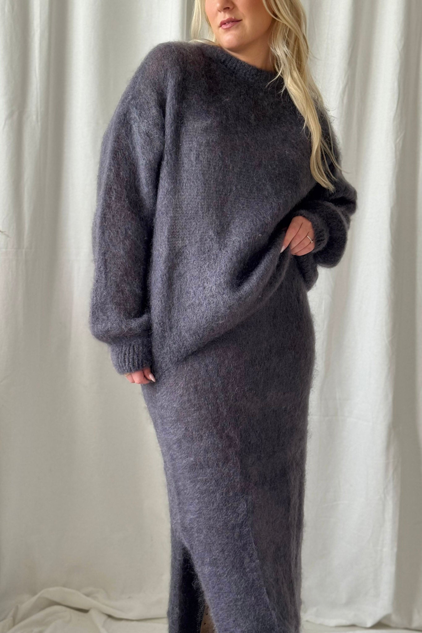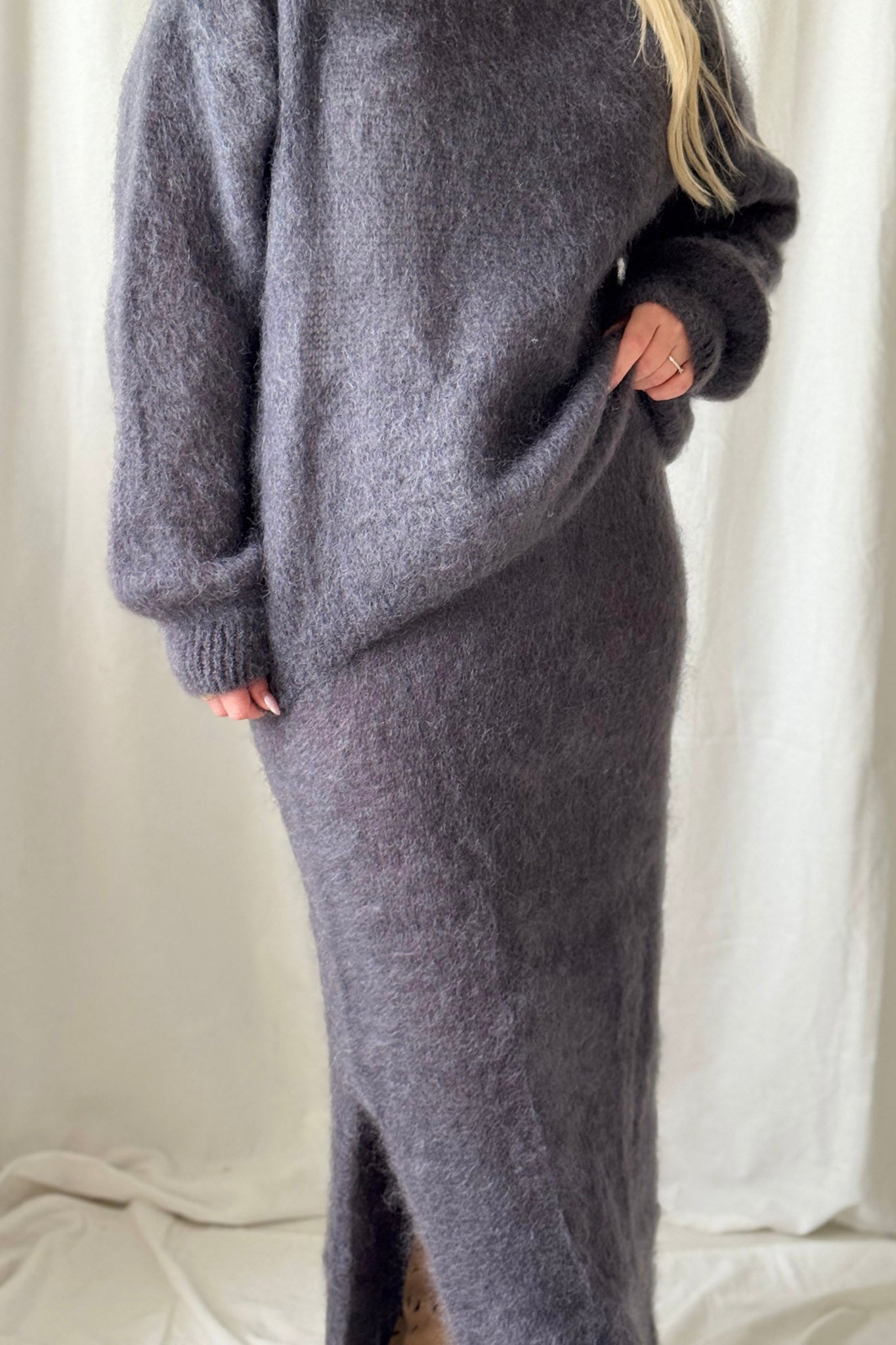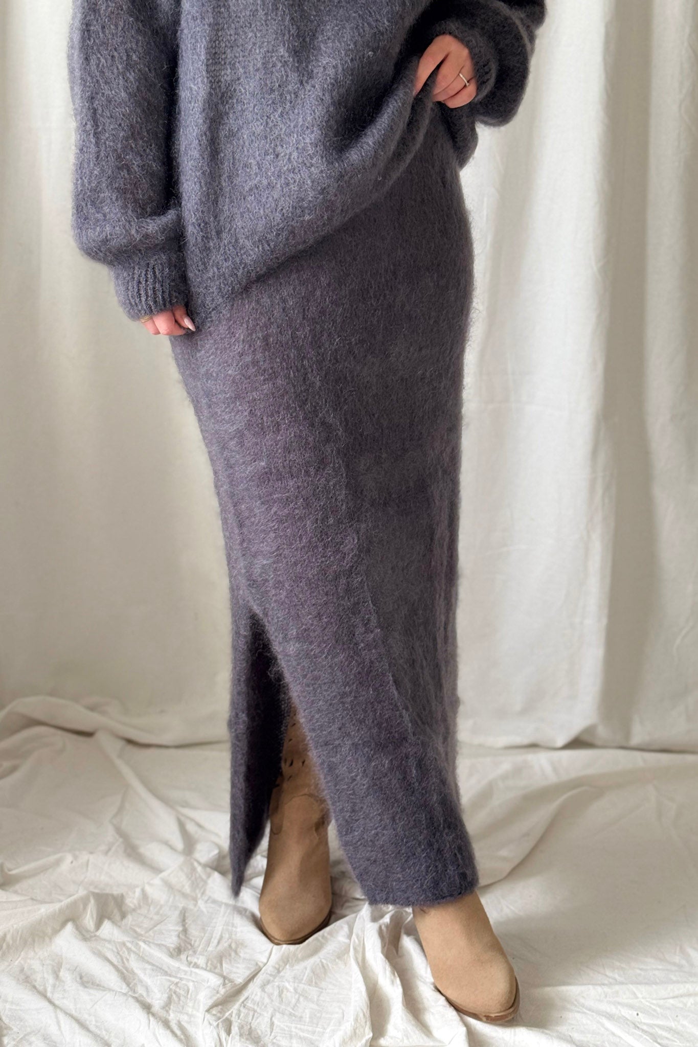 Ylellisen pehmeä ja yleisilmeeltään moderni mohairhame tuo syys- ja talvipukeutumiseen ripauksen eleganssia ja lämpöä. Hameessa on joustava vyötärö ja vartaloa myötäilevä siluetti, joka laskeutuu kauniisti. Sivuilla on vekit. Kevyesti pörröinen pinta tekee ilmeestä erityisen pehmeän ja ajattoman tyylikkään. Yhdistä muhkeaan neuleeseen tai silkkipaitaan. Täydellinen valinta sekä arkeen että juhlavampiin hetkiin.