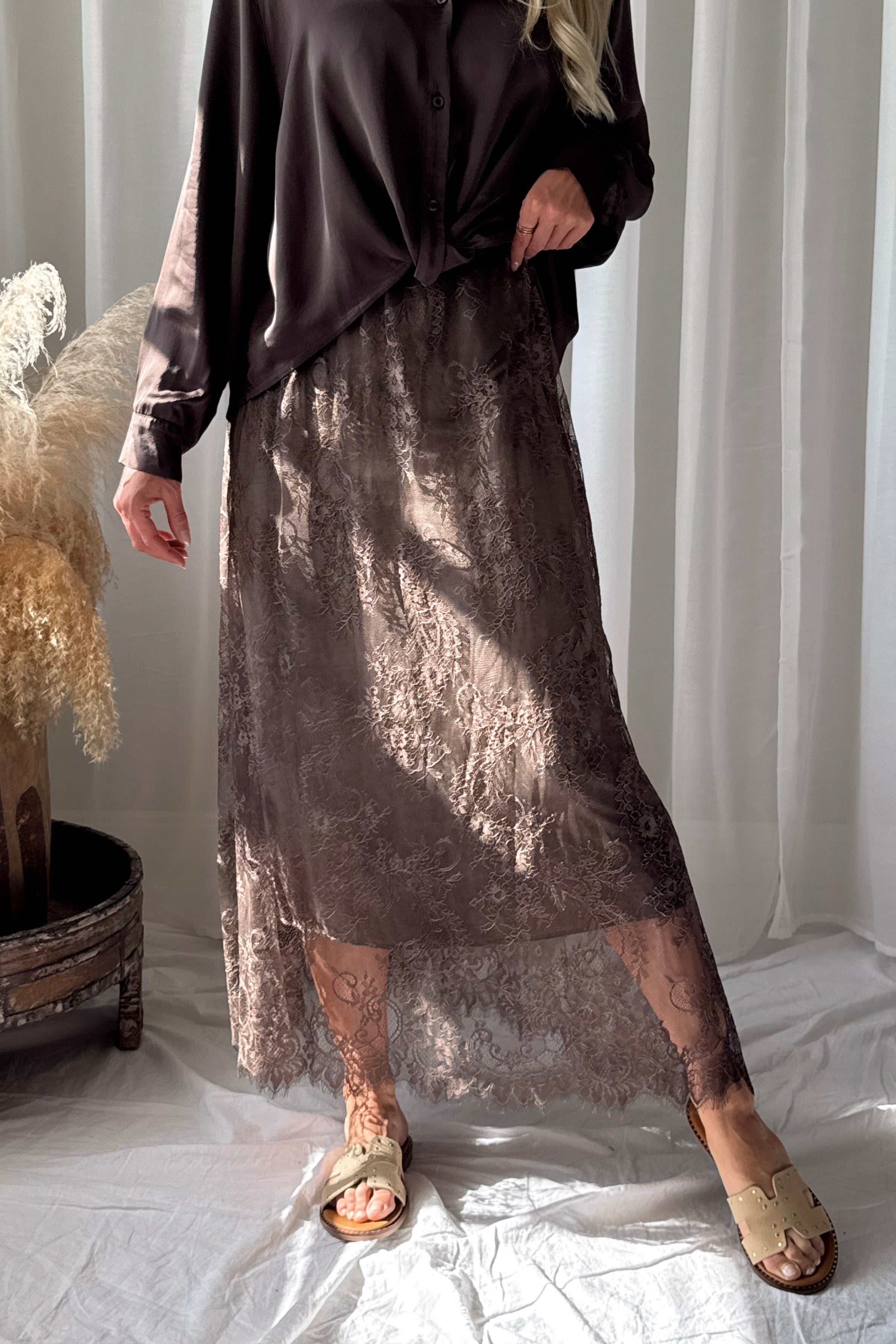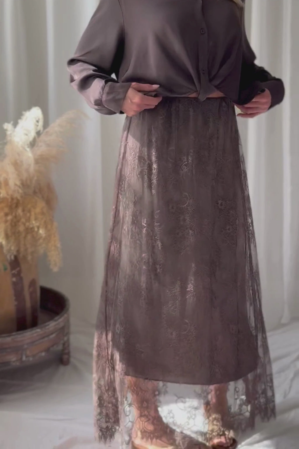 Kevyt pitsihame, jossa on kaunis kauttaaltaan pitsinen pinta ja elegantti pitsireunainen helma. Malli on suoralinjainen ja ajaton. Hameessa on joustava vyötärö, joka takaa hyvän istuvuuden ja käyttömukavuuden. Materiaali on miellyttävän joustavaa.