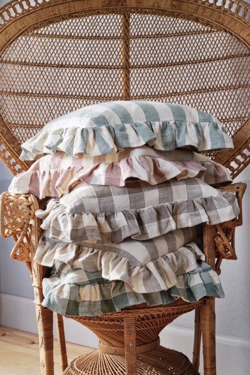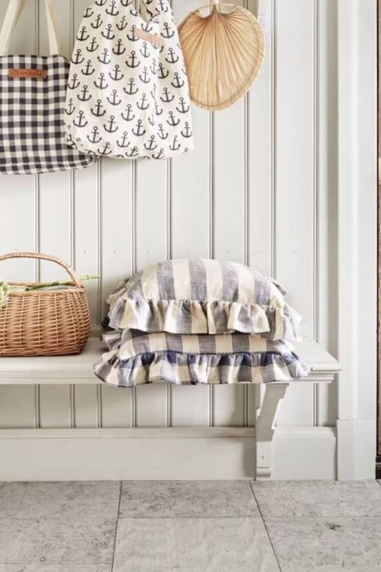 Tyynynpäällinen on valmistettu 100 % luomupuuvillasta, jossa on klassinen ruutukuvio ja kaunis röyhelöreunus. Tyynynpäällisessä on piilovetoketju takana.