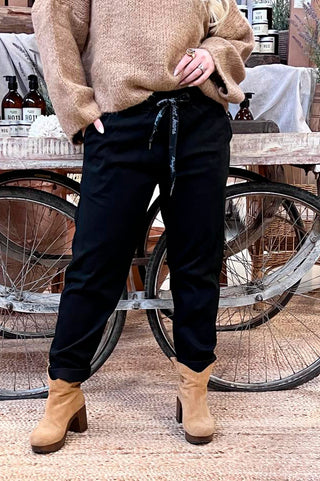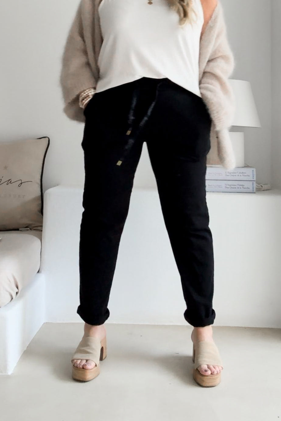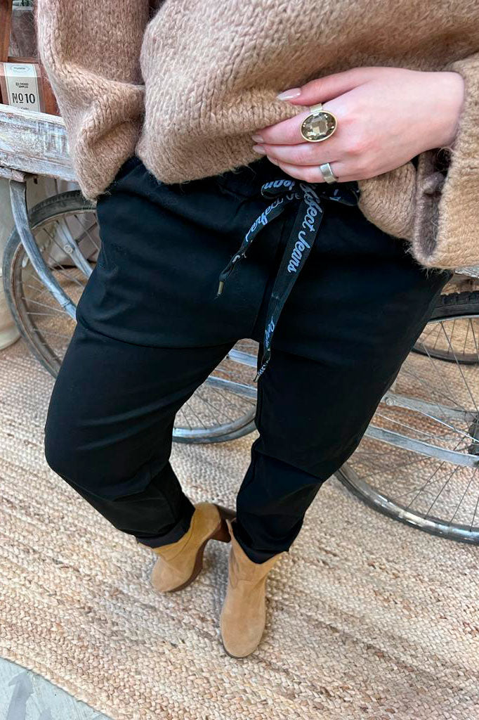 Trendikkäät, väljät ja supermukavat joggerit! Joggereissa on vyötäröllä joustava resori, kiristysnauha jossa logo ja käännetyt lahkeet.