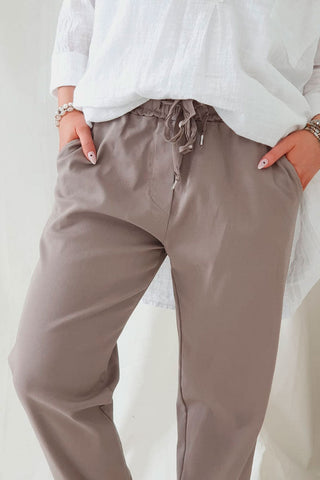 Trendikkäät, väljät ja supermukavat joggerit! Joggereissa on vyötäröllä joustava resori, kiristysnauha jossa logo ja käännetyt lahkeet.