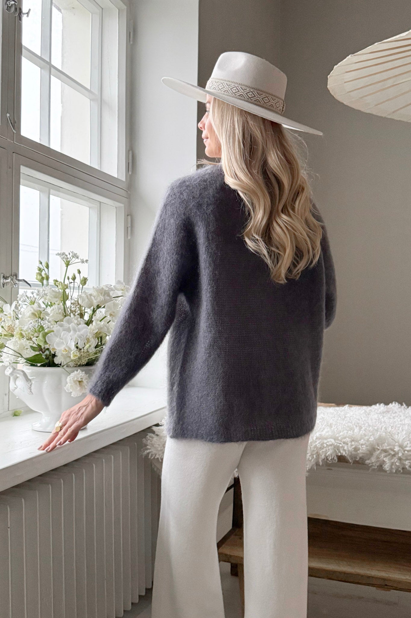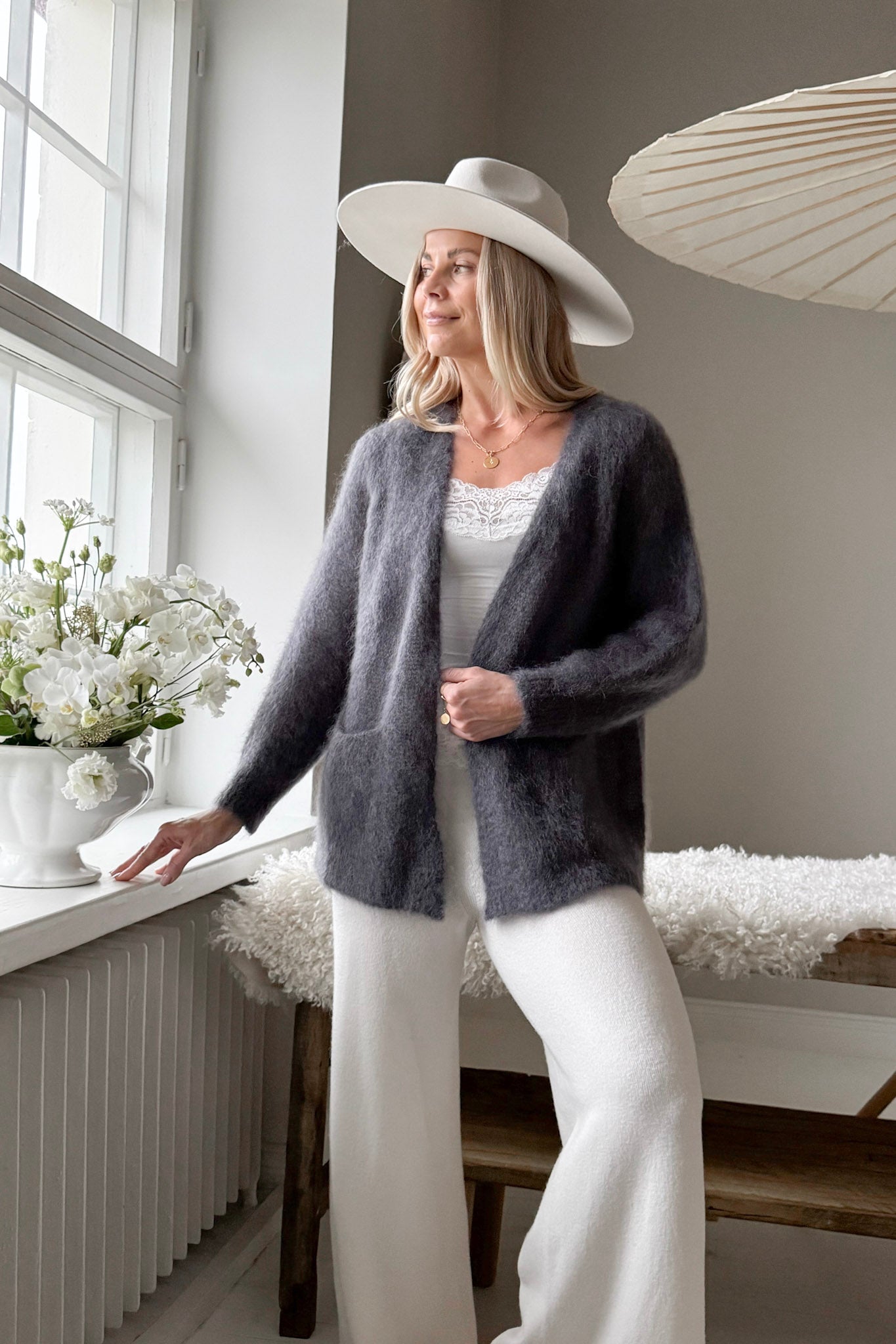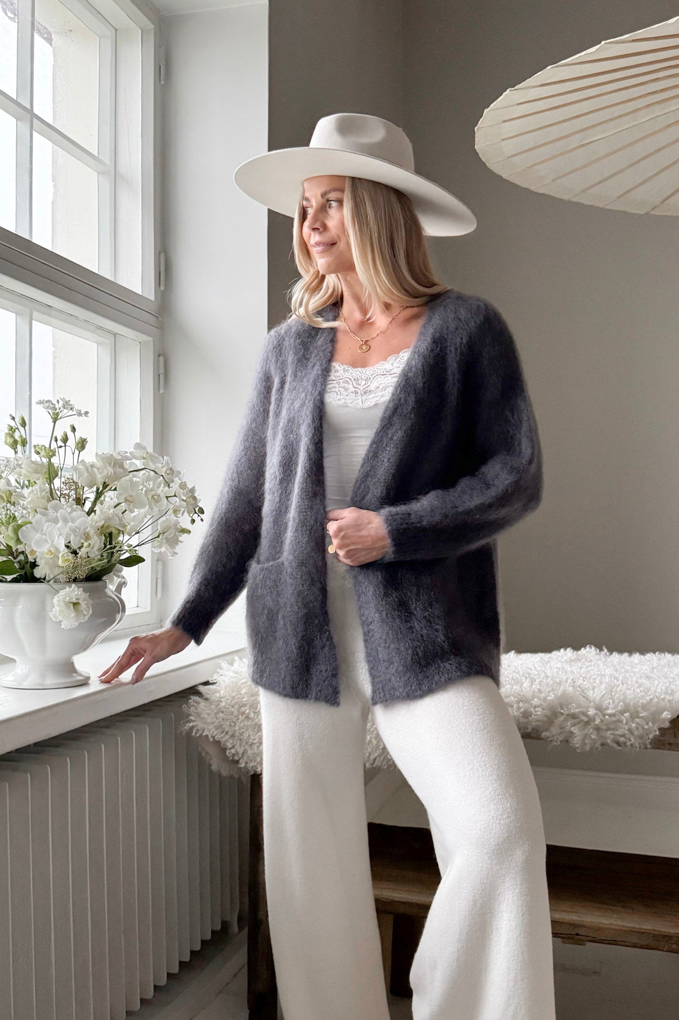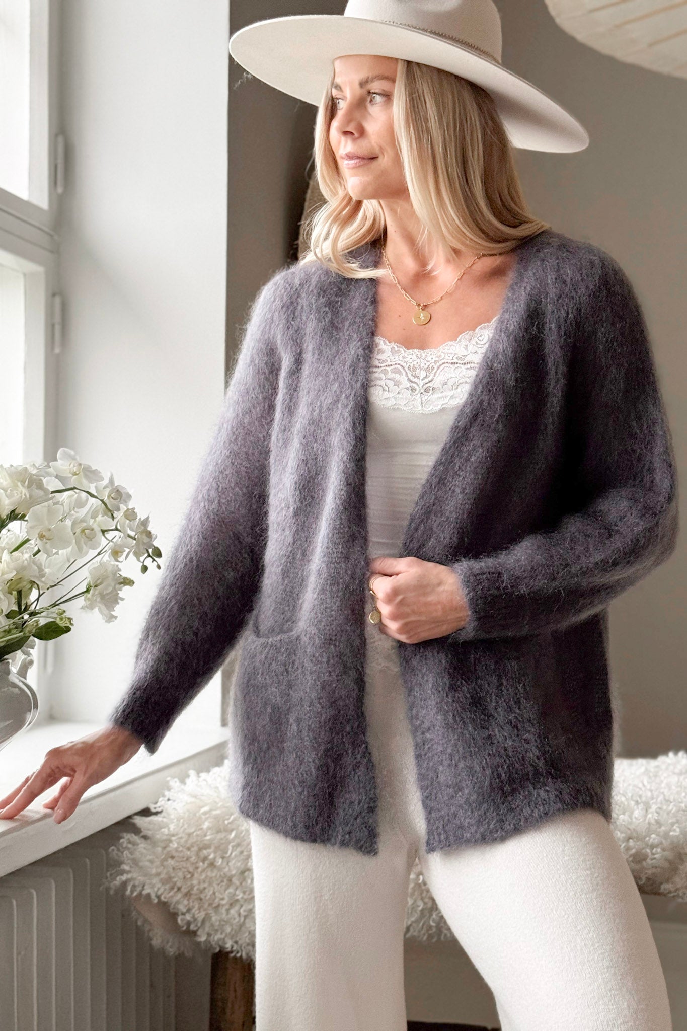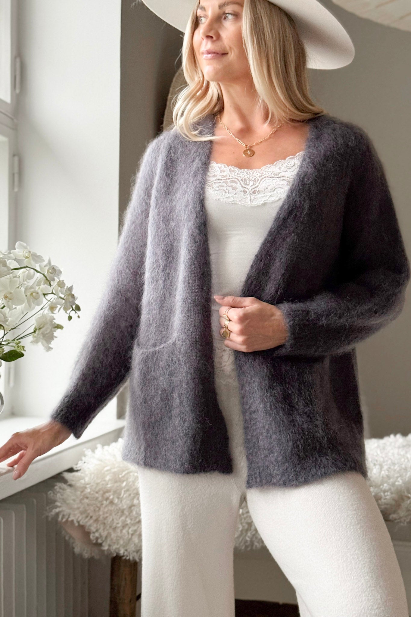 Ihanan pehmeä kid mohair -neuletakki kietoo sinut lämpöön ja ylelliseen mukavuuteen. Sen höyhenenkevyt ja ilmava neulos tuntuu miellyttävältä ihoa vasten, ja etutaskut tuovat sekä käytännöllisyyttä että rennon tyylikkään ilmeen. Ylellinen oversize-malli laskeutuu kauniisti ja sopii monen kokoiselle, käyden hyvin 36–46 -kokoisille.