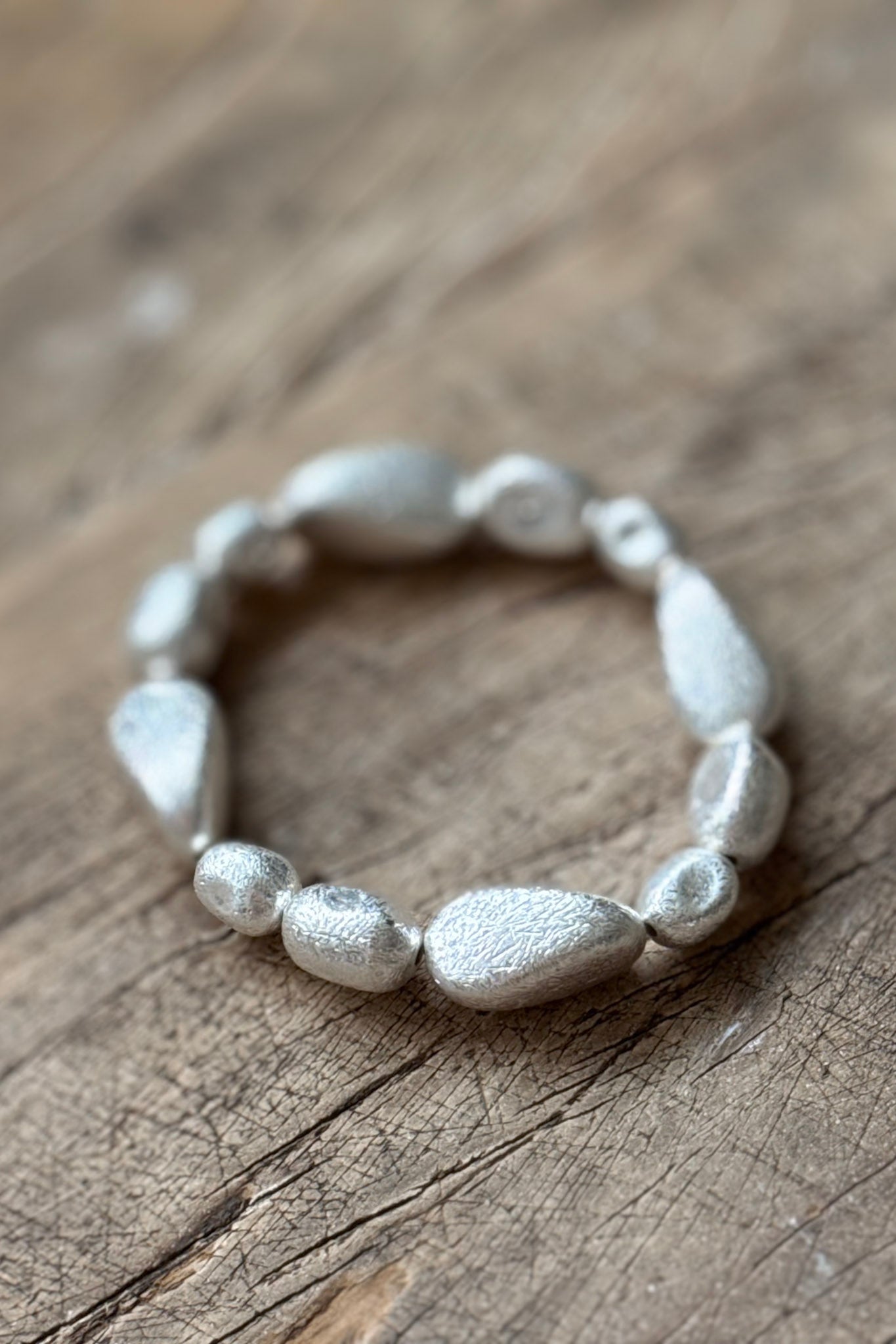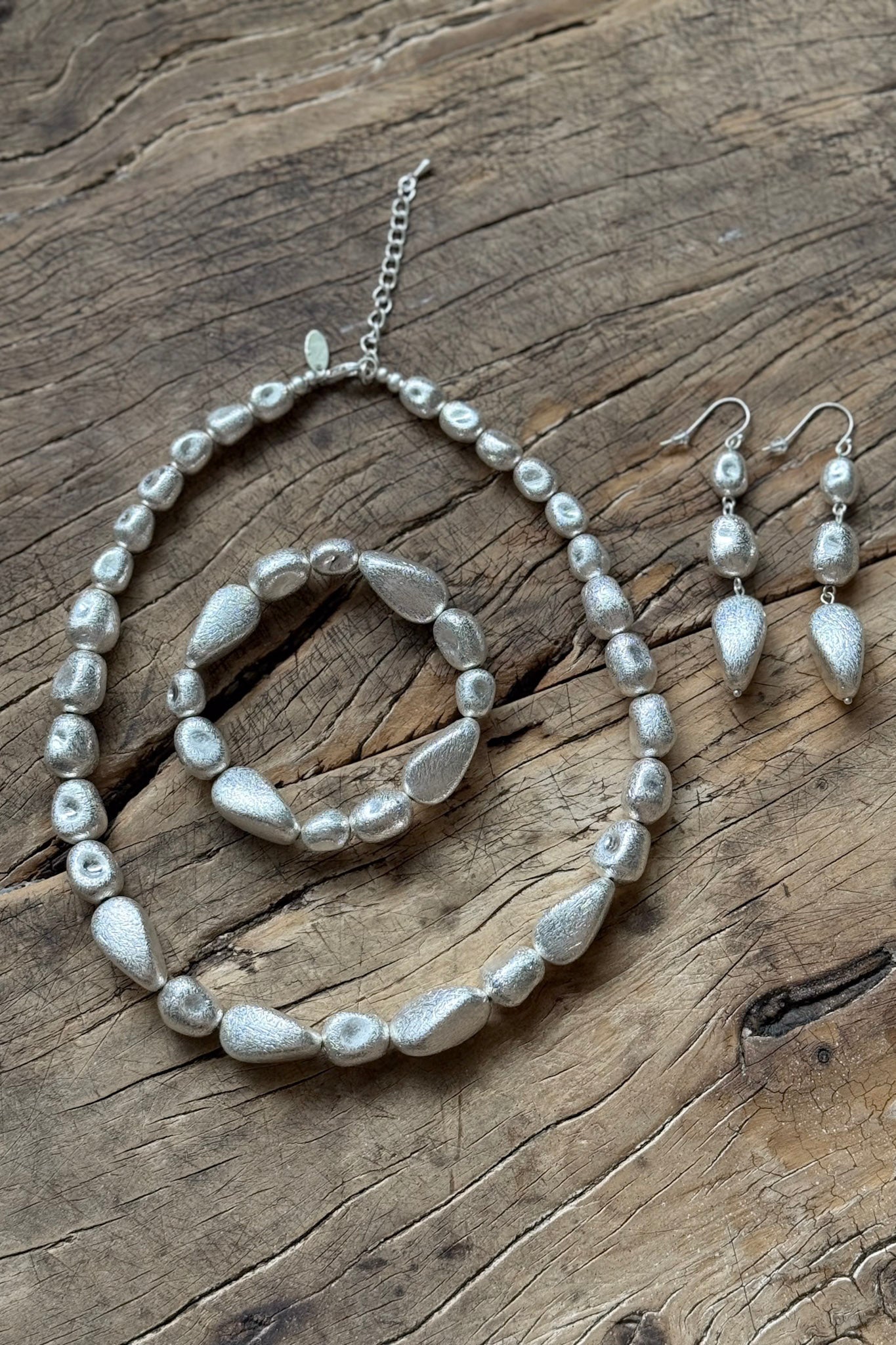 Yleellinen rannekoru metallista tehdyistä helmistä. Nosta asukokonaisuutesi seuraavalle tasolle ostamalla Leona sarjasta myös korvikset ja kaulakoru. Rannekoru on kevyt ja klassinen asuste, joka sopii asuun kuin asuun.