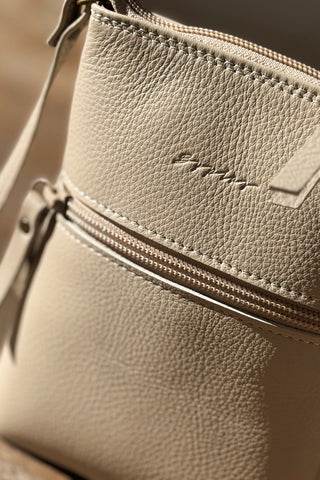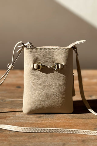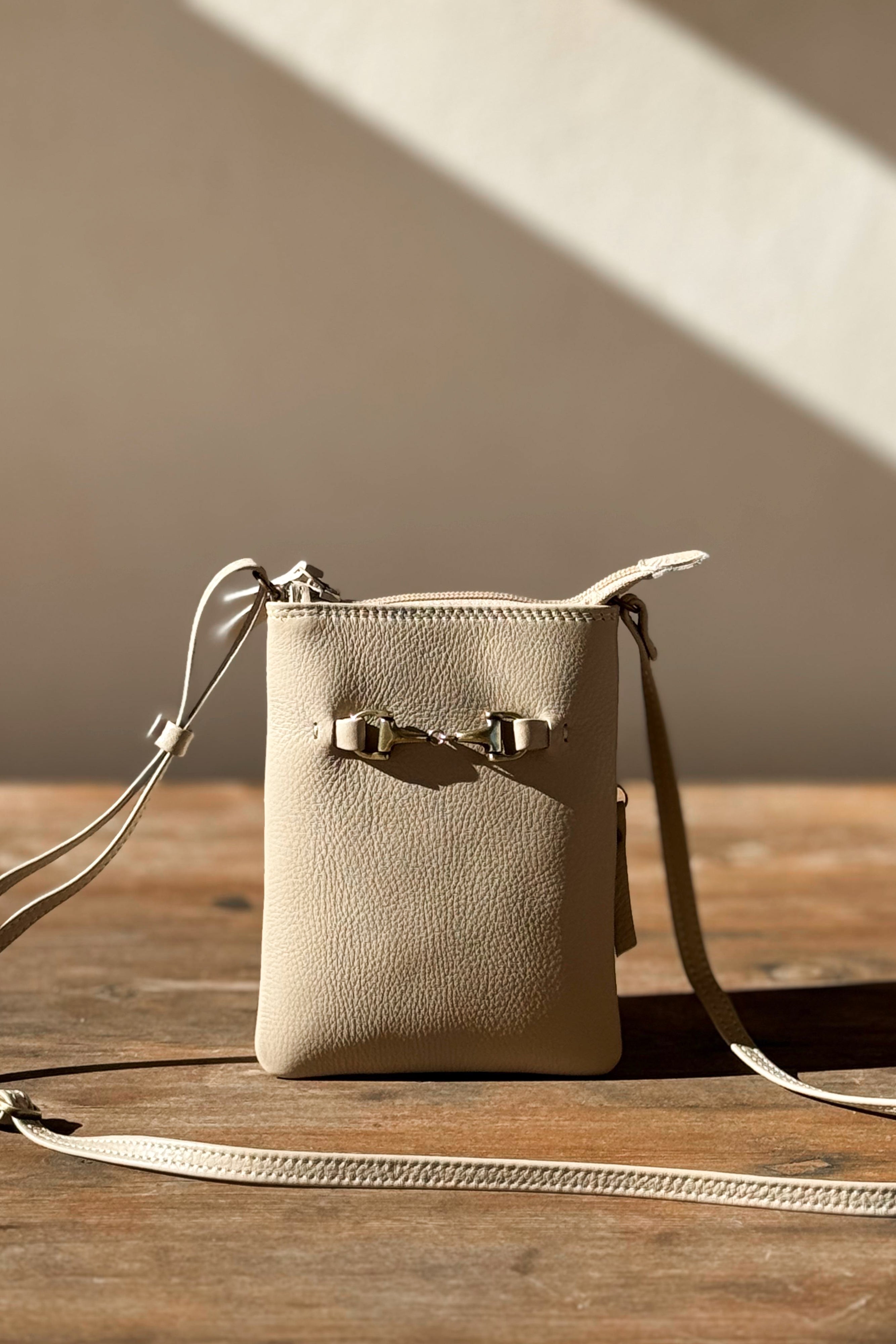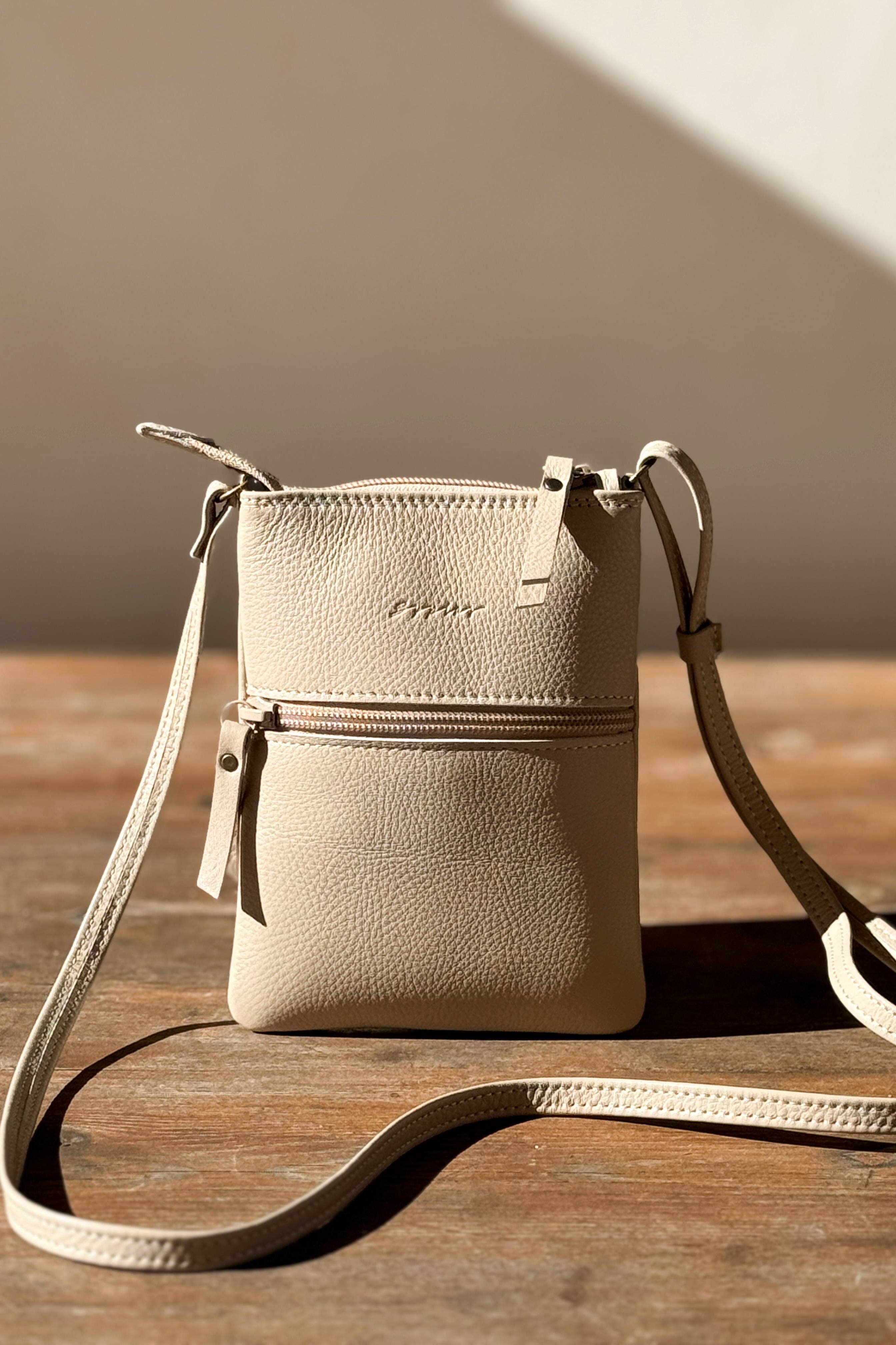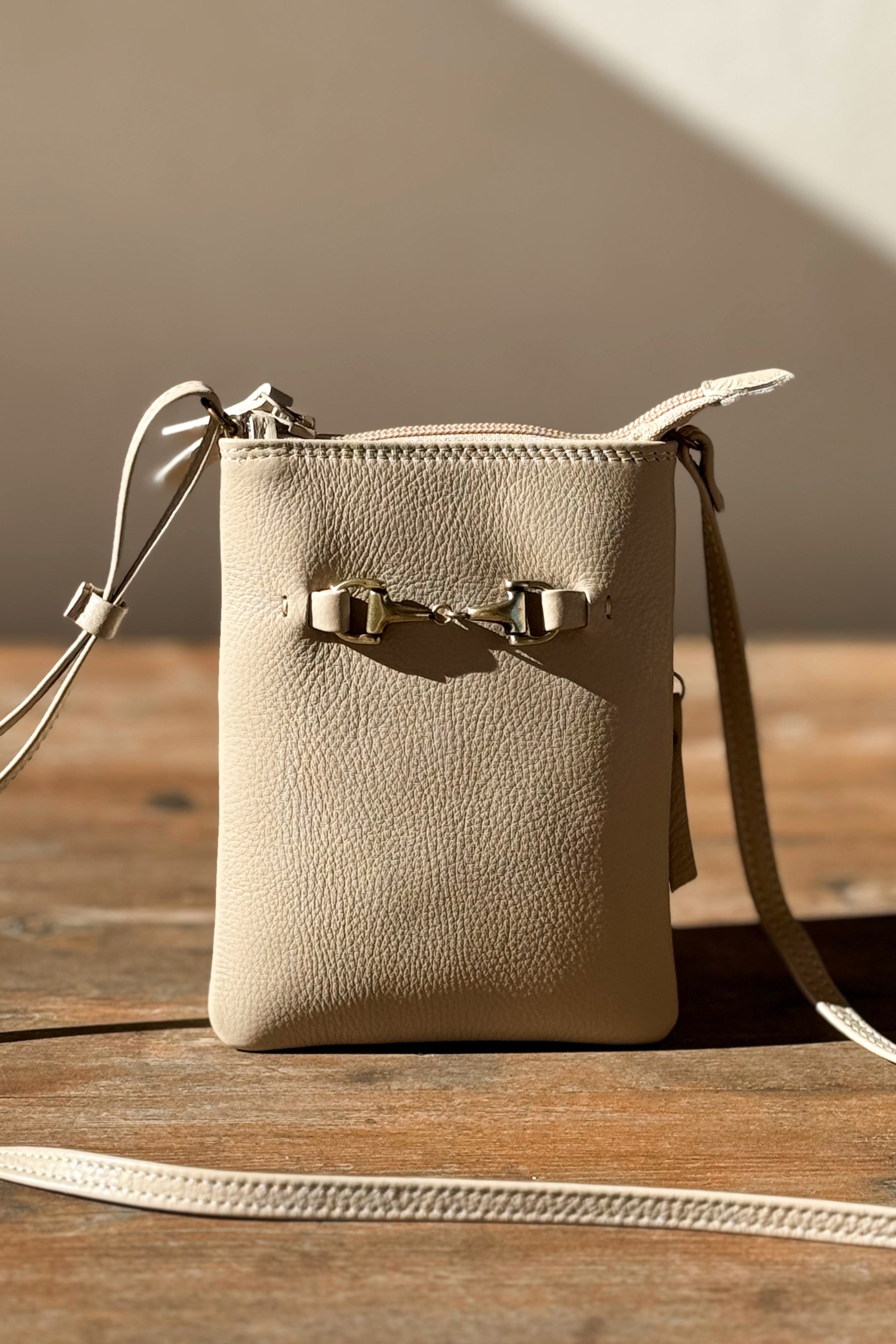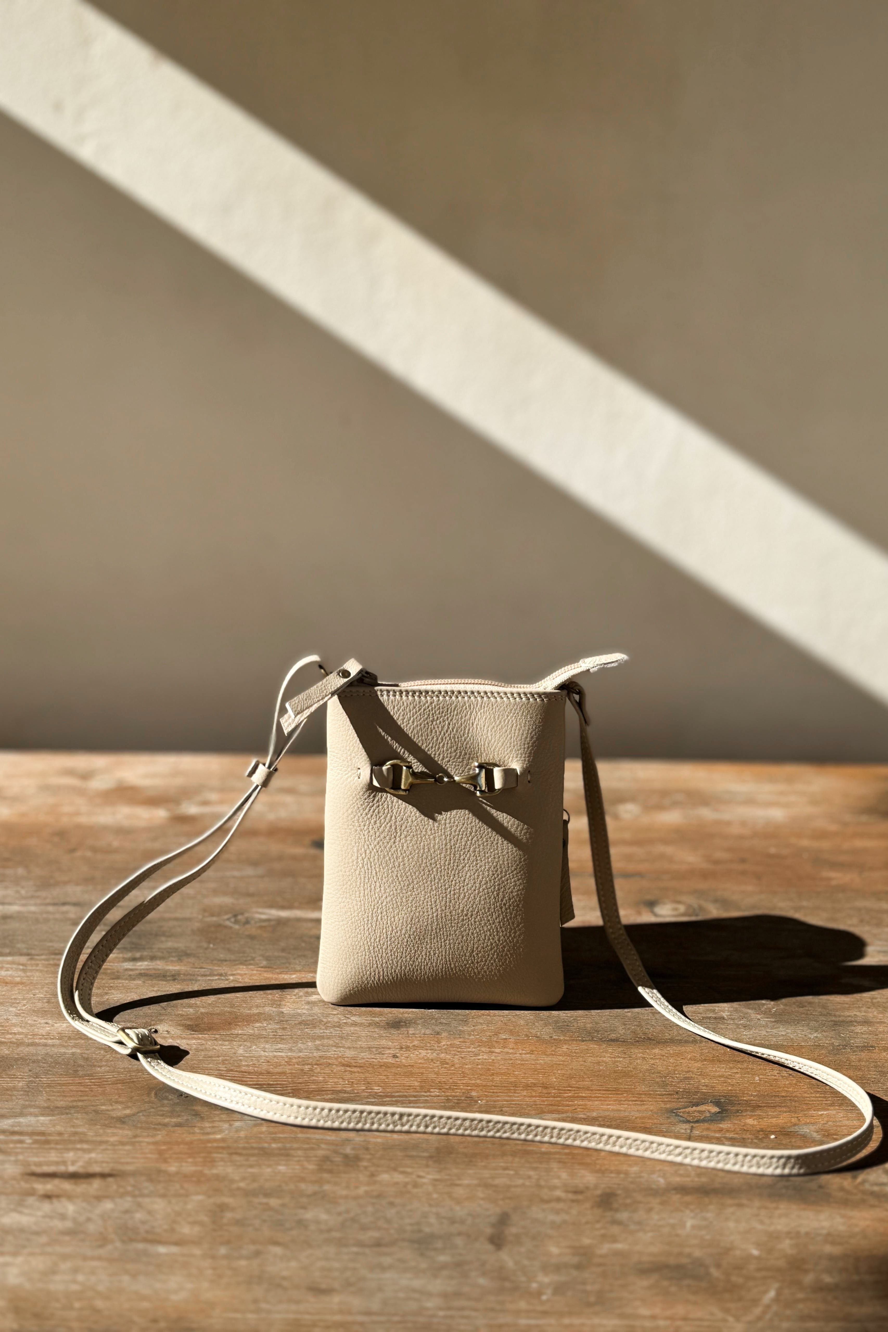Kotimaista tuotantoa olevat kauniit ja laadukkaat nahkalaukut täydentämään BYPIAS tyylisi. Pienessä nahkaisessa laukussa on puuvillainen vuorikangas. Vetoketjulla suljettava malli, jossa pieni sisätasku. Säädettävä 10mm leveä "pään yli” menevä olkahihna.