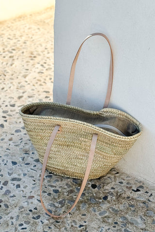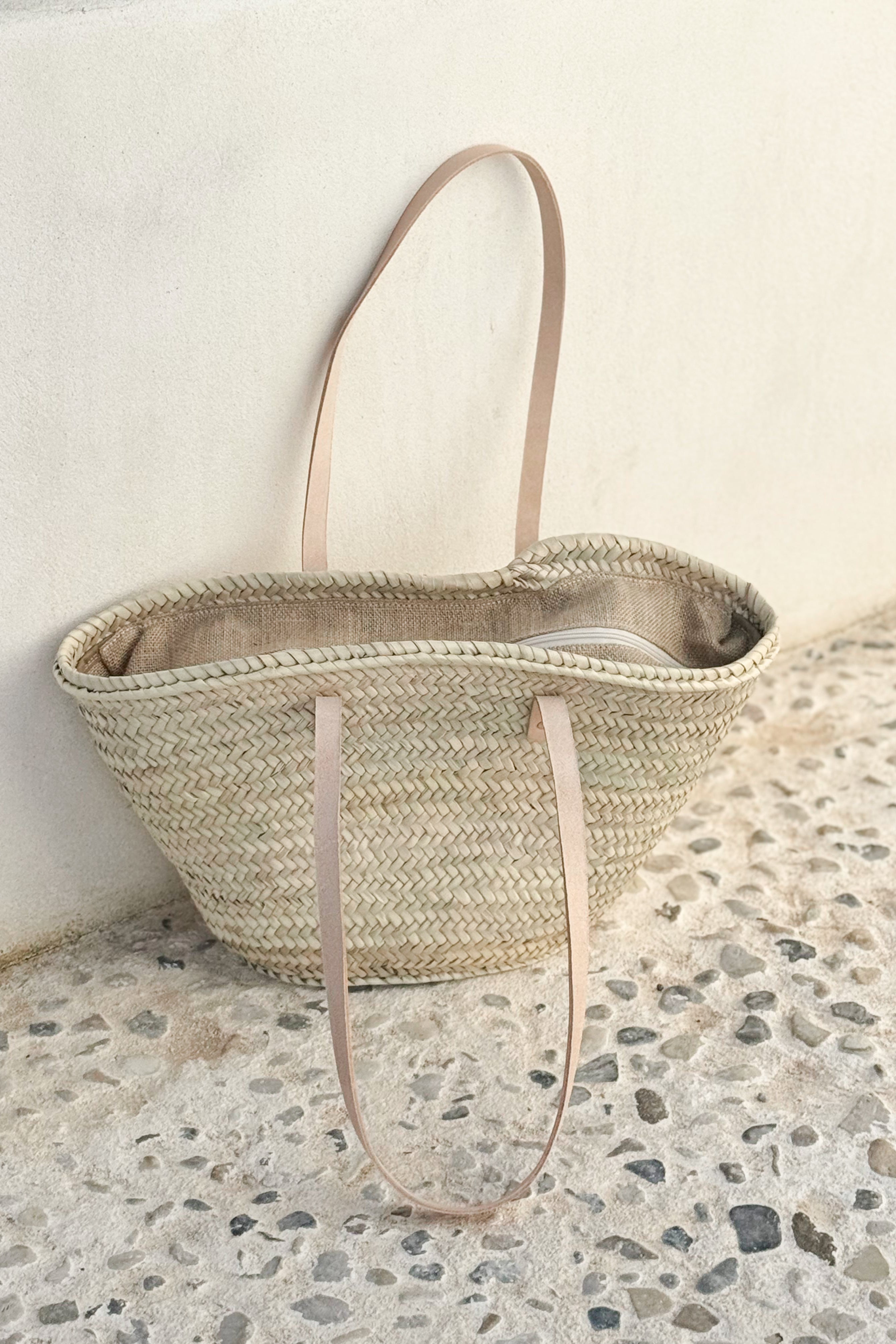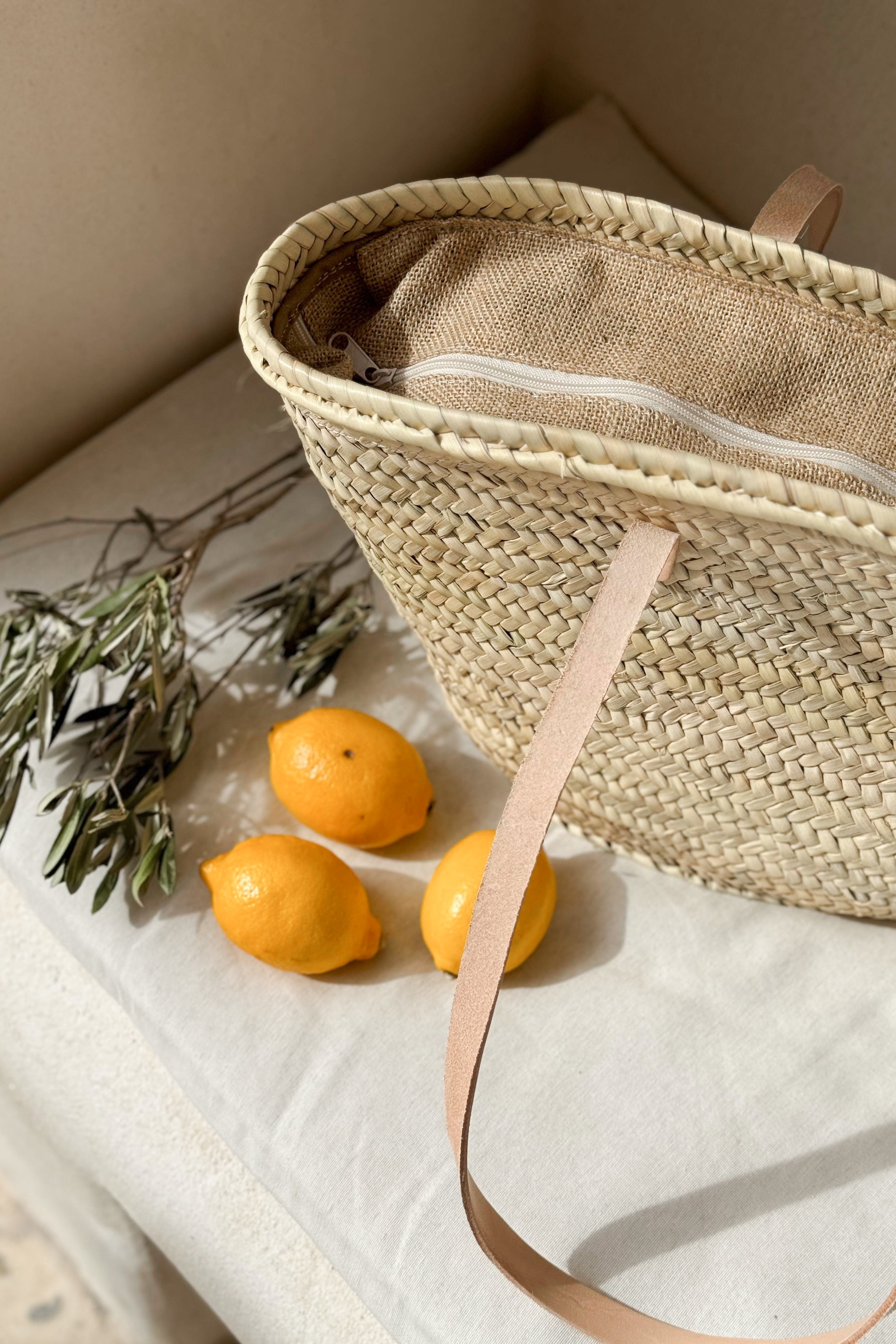 Tämä käsin punottu laukku on valmistettu luonnonmateriaalista, mikä antaa sille kauniin ja uniikin ilmeen. Sen klassinen muotoilu yhdistyy käytännöllisiin yksityiskohtiin, kuten kevyisiin, mutta kestäviin nahkaolkahihnoihin, vetoketjusuljentaan sekä sisällä olevaan sisätaskuun.