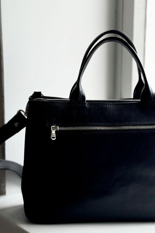 Kotimaista tuotantoa olevat kauniit ja laadukkaat nahkalaukut täydentämään BYPIAS tyylisi. Nahkaisessa laukussa on puuvillainen vuorikangas. Vetoketjulla suljettava malli, jossa pieni sisätasku. Käsikahvat, lisäksi irrotettava ja säädettävä 30mm leveä "pään yli” menevä olkahihna.