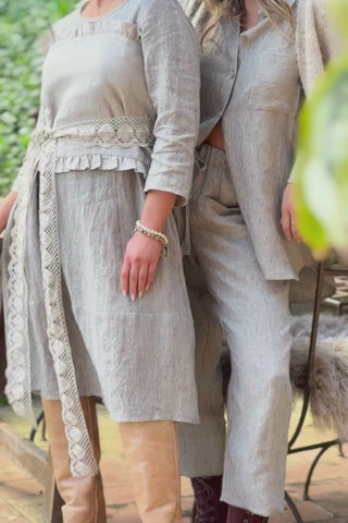 Konepesu 30 asteessa, ei rumpukuivausta. Pesu samanväristen kanssa. Pellava voi kutistua pesussa 2-4%, mutta muovautuu vartaloosi käytössä.