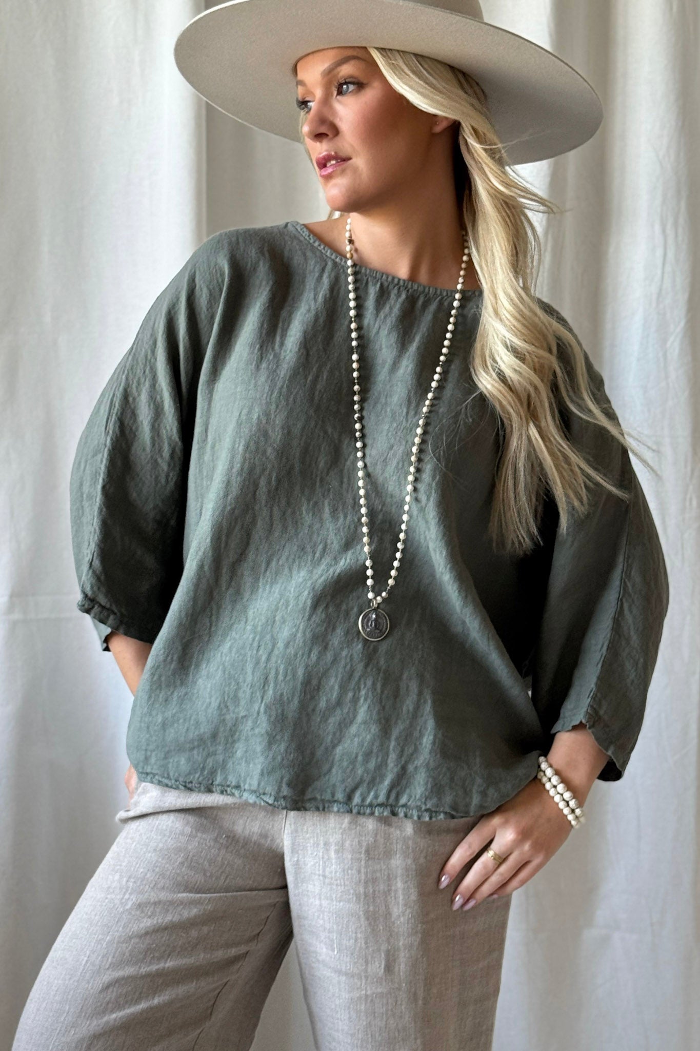 Mahtavan mallinen pellavapaita käy yläosaksi kaikkeen ja on kevyen pellavamateriaalinsa ansiosta täydellinen niin lämpimiin, kuin viileämpiin päiviin. Paita on oversize mallia, joten käy hyvin myös rintavalle.