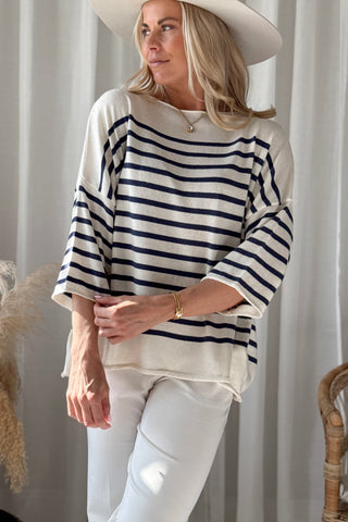 Marine neule, valkoinen / navy raita