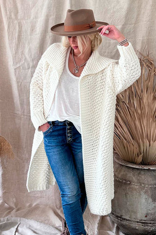 Pitkä neuletakki on tyylikäs ja mukava valinta