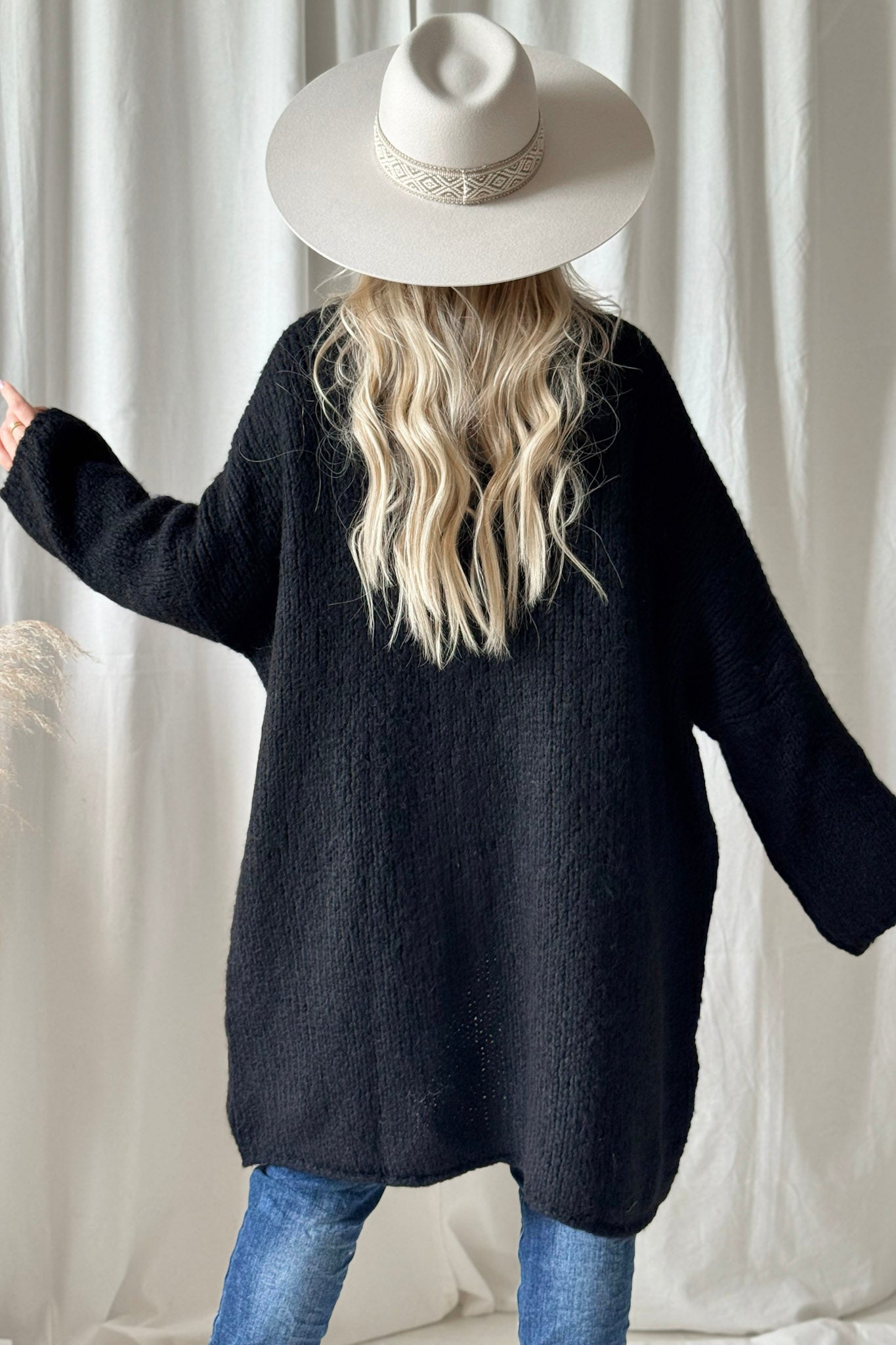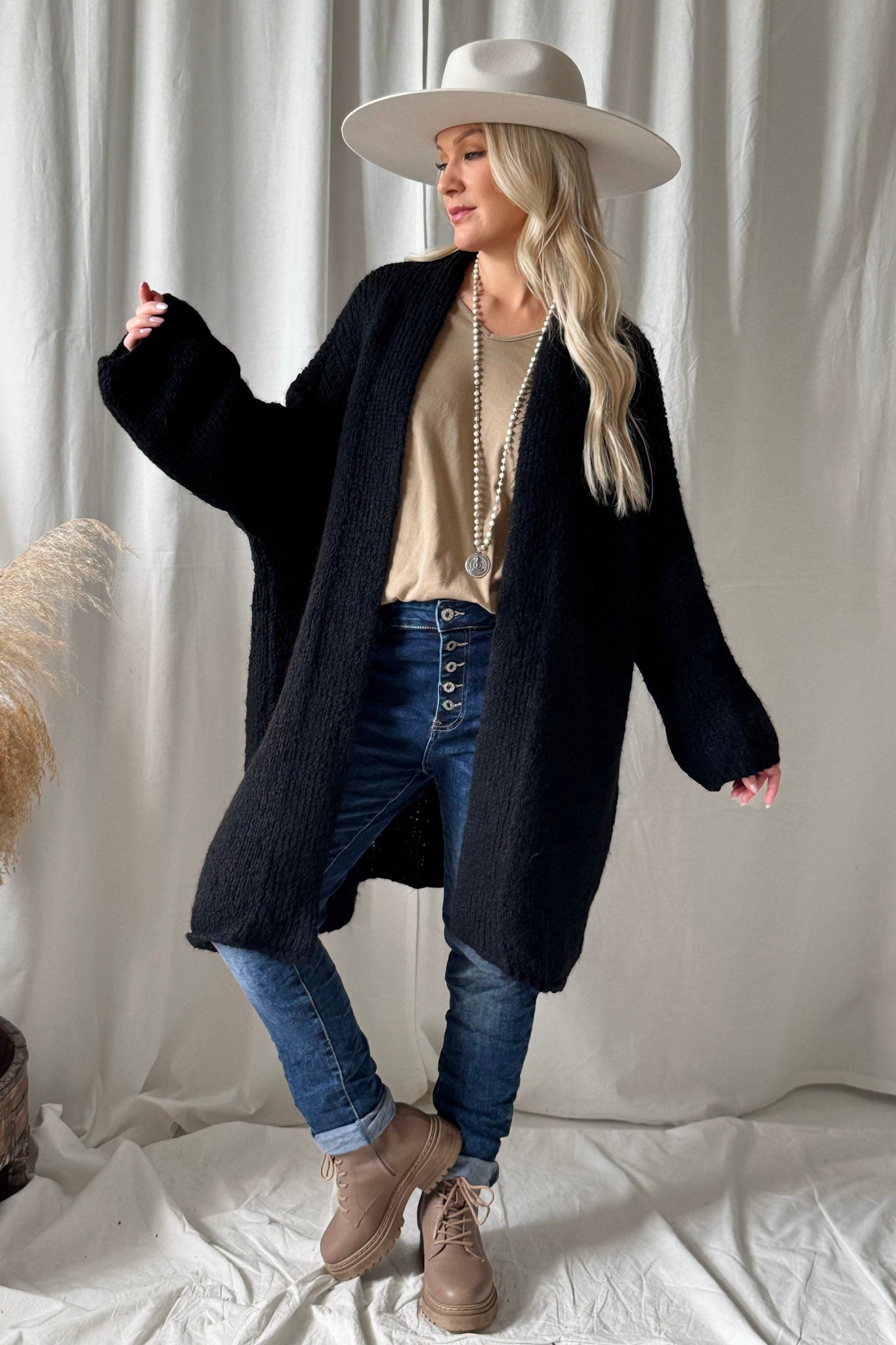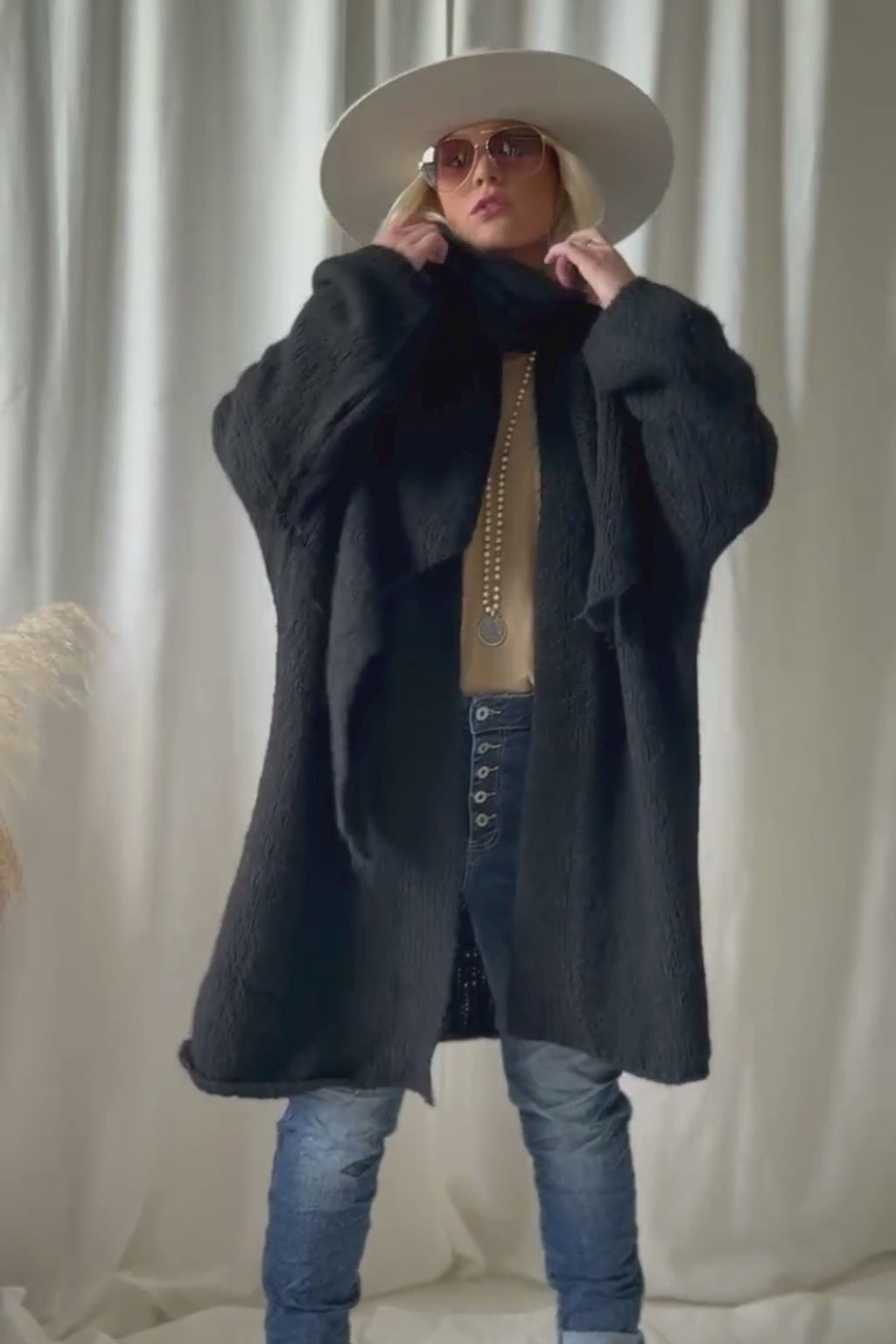 Bouckle-mallistomme ylellisen pehmeä oversize neuletakki, jossa väljät hihat ja kevyet resorit hihansuissa ja helmassa. Madalletut olkapäät ja pystykaulus jonka voi myös viikata kauniisti. Täydellinen lisä viileämpiin päiviin! Bouckle-neuleet ovat materiaaliltaan helppohoitoisia, eivätkä kutita ihoa.