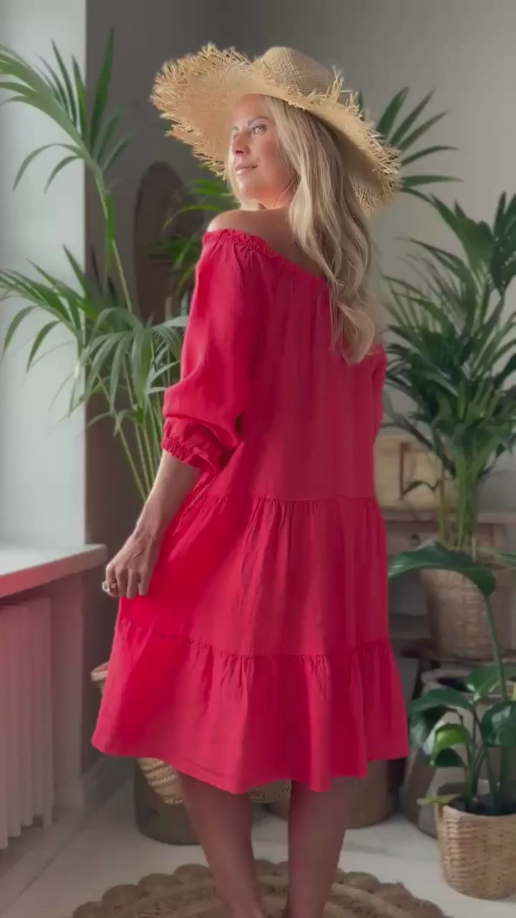 Abby pellavamekko laskeutuu kauniisti ja joustavan kaula-aukon ansiosta voit sen laskea myös harteille off shoulderiksi. Hihansuissa ja pääntiessä kevyt kuminauharypytys.