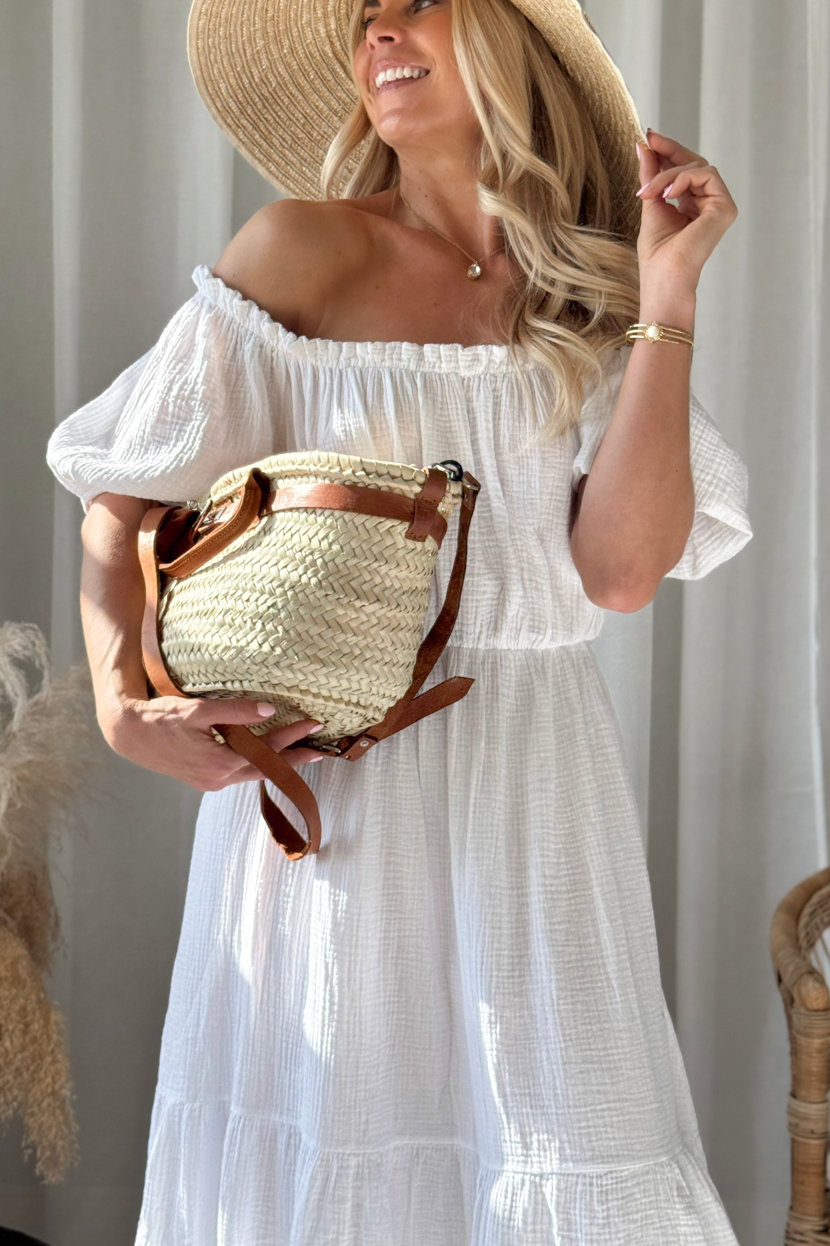 Kevyt ja ilmava Capri Dream puuvillamekko on täydellinen valinta kesään. Kangas on puuvillamusliinia, joka tuntuu pehmeältä ihoa vasten. Väljä ja kauniisti laskeutuva malli takaa erinomaisen käyttömukavuuden, ja joustava yläosa mukautuu vartalolle kauniisti. Mekossa on taskut ja lyhyet hihat. Pääntiessä, vyötäröllä ja hihansuissa on kevyt resori. Helmassa on frilla.