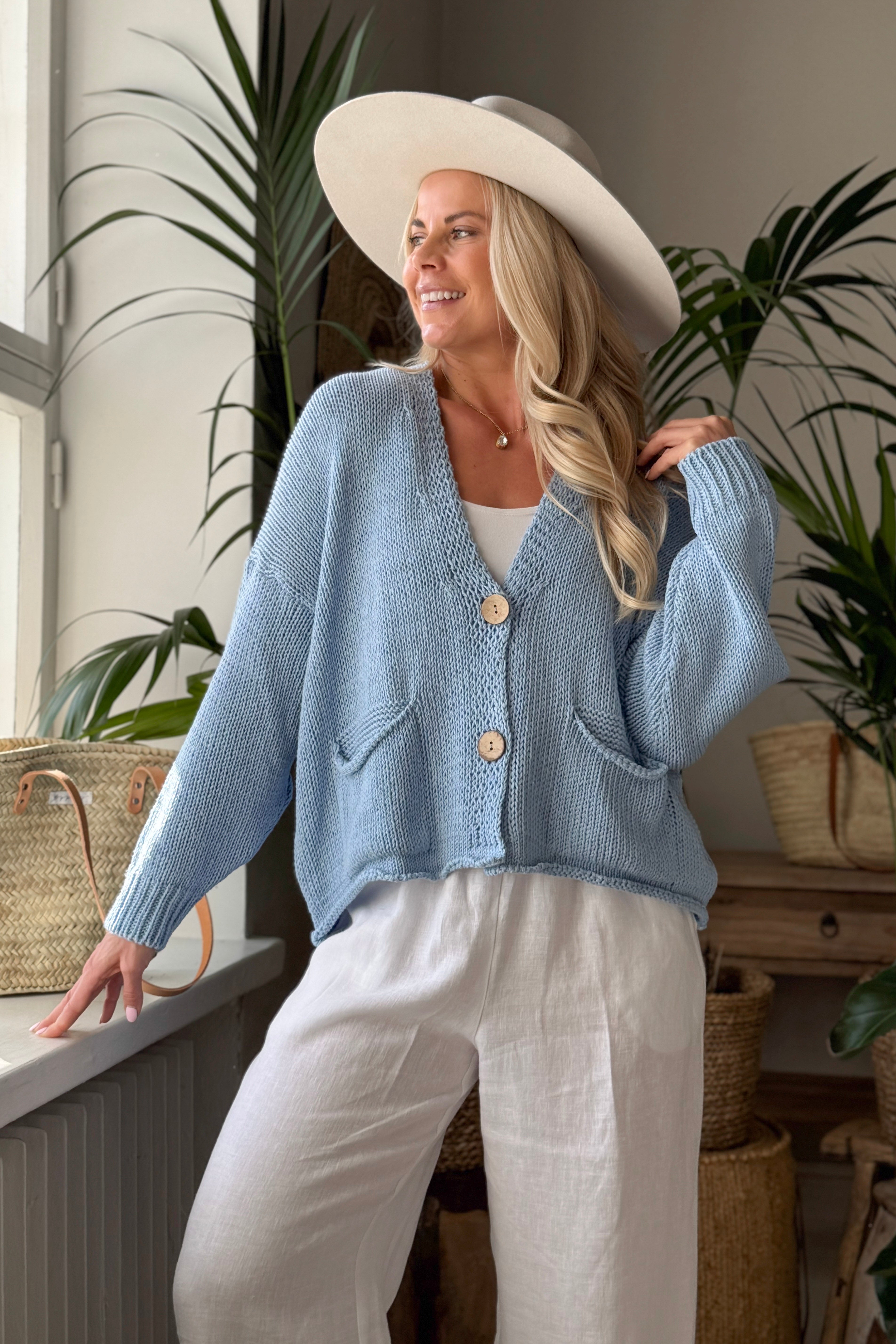 Pehmeä ja ajattoman tyylikäs neuletakki, joka tuo lämpöä ja mukavuutta asuusi. Rennosti istuva malli ja kaunis neulos tekevät tästä neuleesta monikäyttöisen valinnan niin arkeen kuin kerrospukeutumiseen. Suuret napit ja edessä olevat taskut lisäävät ripauksen rentoa eleganssia.