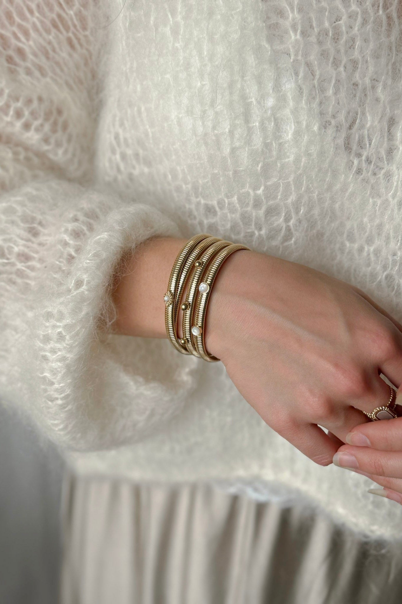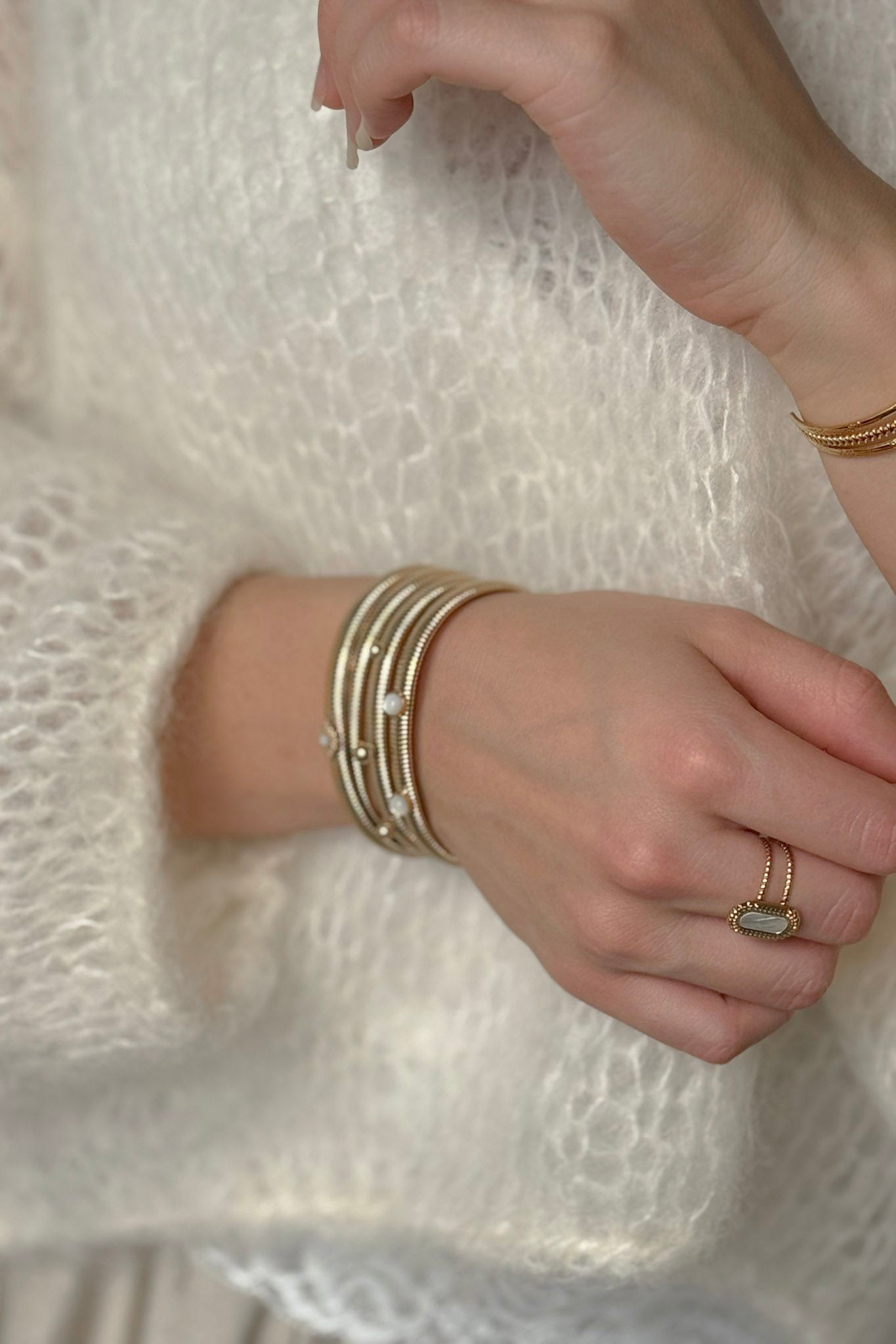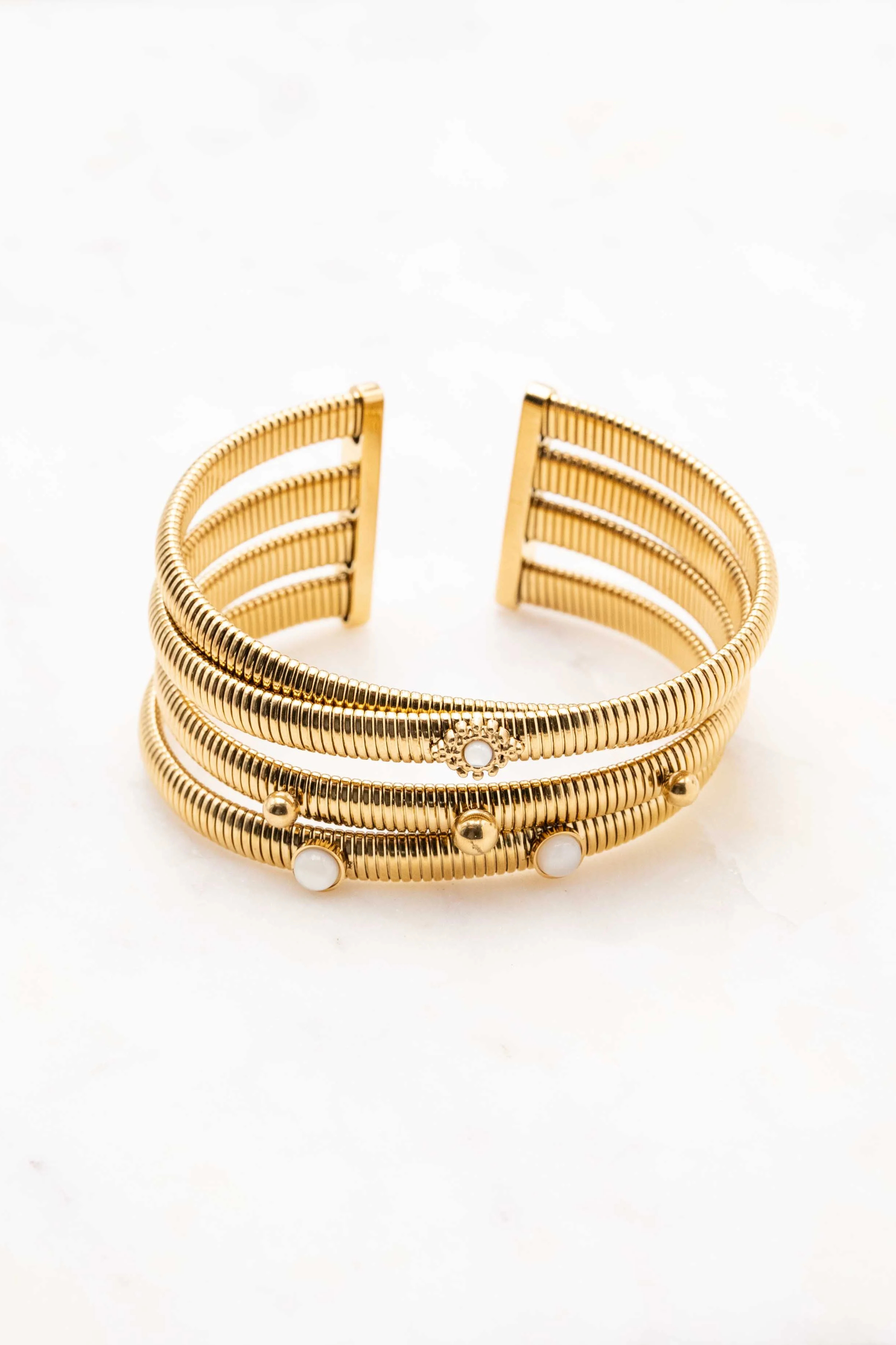 Näyttävä kullanvärinen monikerroksinen säädettävä rannekoru.