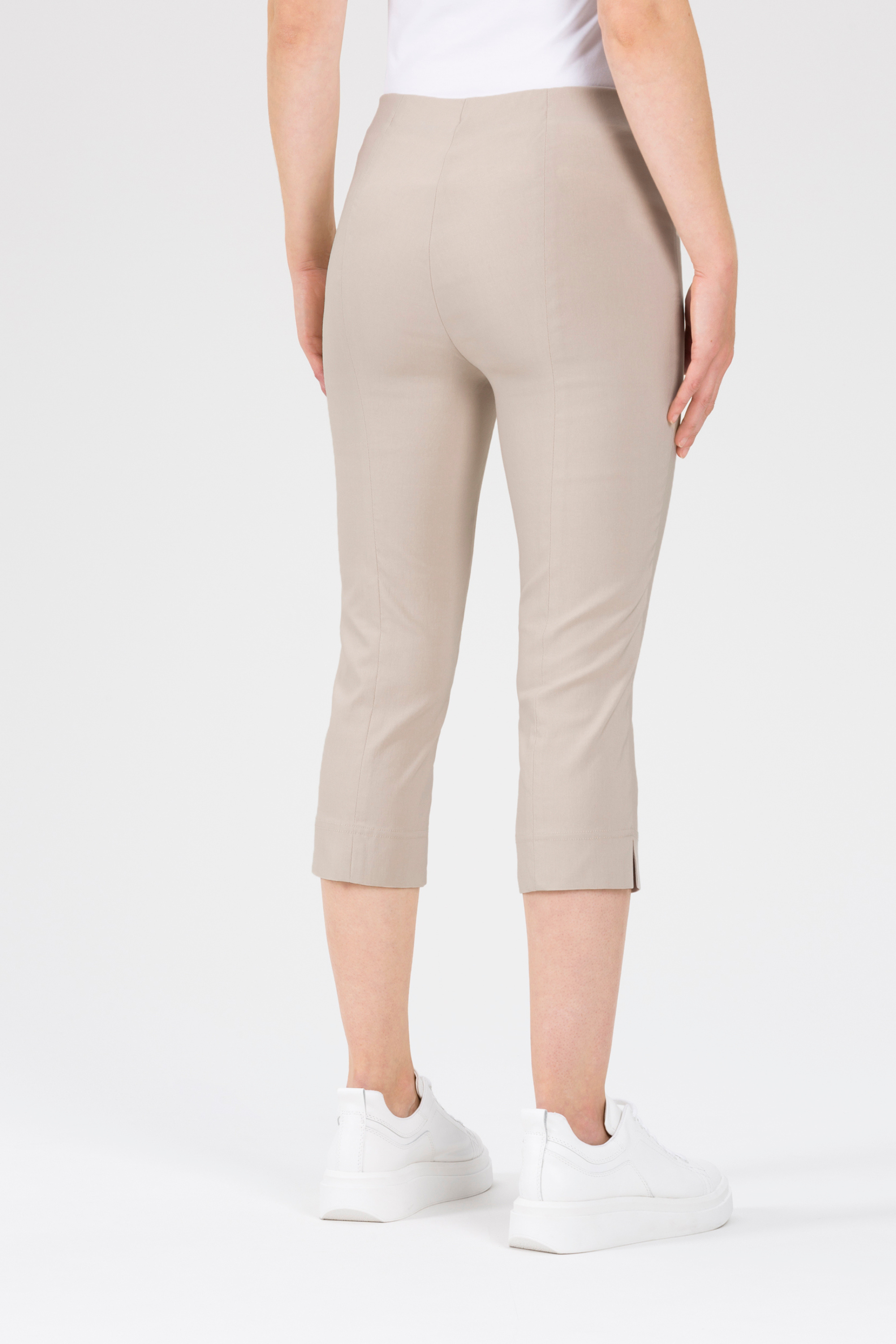Ina stretch capri on tuttu malli mutta lyhyempänä, housumallissa on tilaa masulle, pepulle ja reisille. Siksi tämä huippuhousu sopiikin kaikille vartalotyypeille. Pull on-housussa ei vetoketjuja, nappeja vaan vyötärö nousee mukavasti korkealle. Caprihousu on hiukan väljä lahkeista, joissa sivuhalkiot. Caprimittainen housu on tyylikäs valinta arkeen.