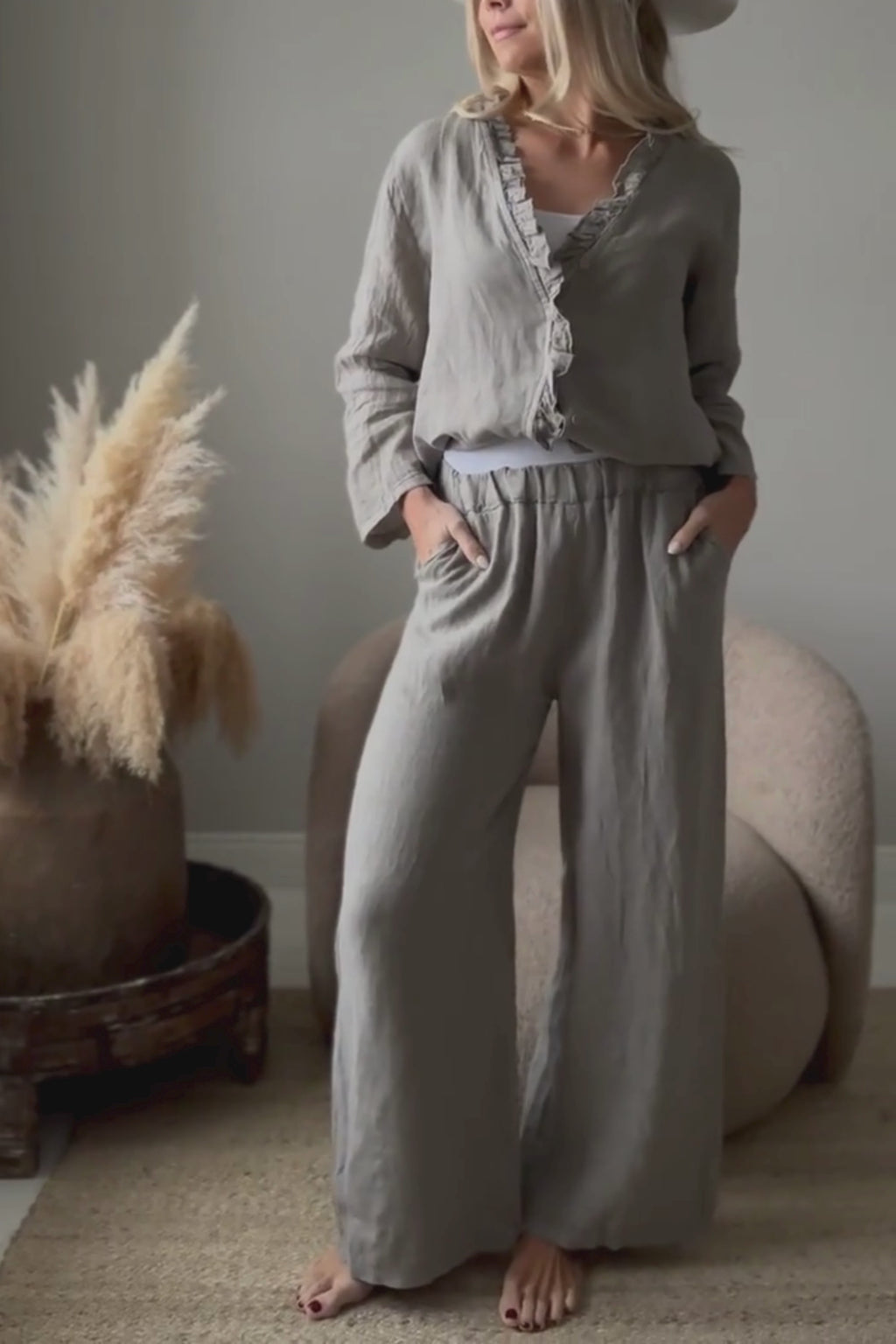 Bestseller Havana-pellavahousut nyt saatavana pitkänä versiona! Klassinen suora malli, jossa on mukava joustoresori vyötäröllä ja käytännölliset sivutaskut. Pehmeä ja ilmava pellava tuntuu miellyttävältä päällä ja laskeutuu kauniisti. Nämä housut sopivat erityisesti yli 160 cm pituisille naisille. Ajaton ja helppo valinta arkeen ja kesäisiin asukokonaisuuksiin.