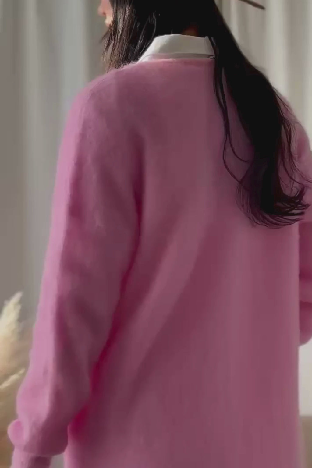 Ylellisen pehmeä pitkä super kid mohair -neuletakki, joka hurmaa keveydellään ja pehmeydellään. Klassinen malli ilman kiinnitystä, viimeistelty hillityillä resoreilla helmassa ja hihansuissa.