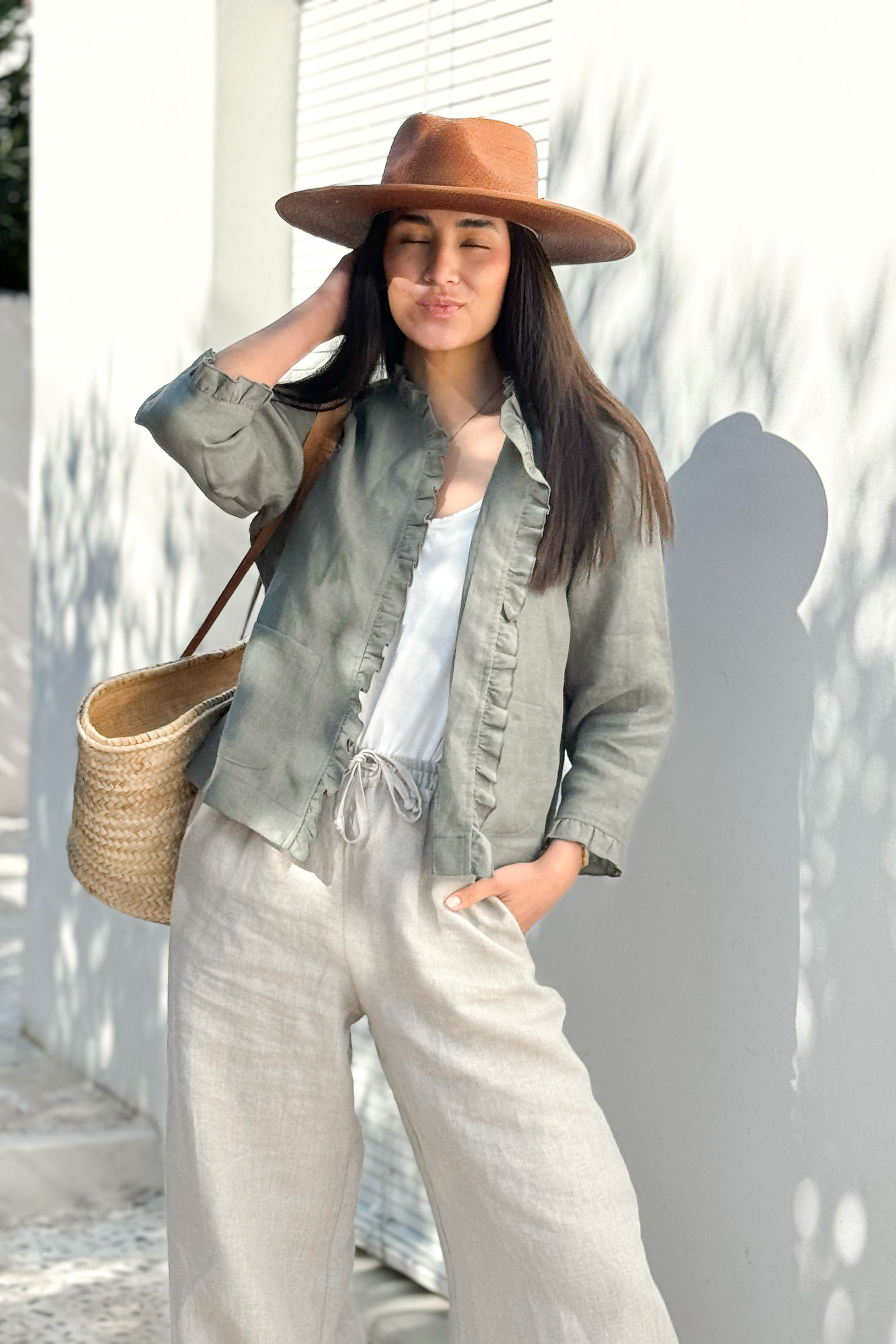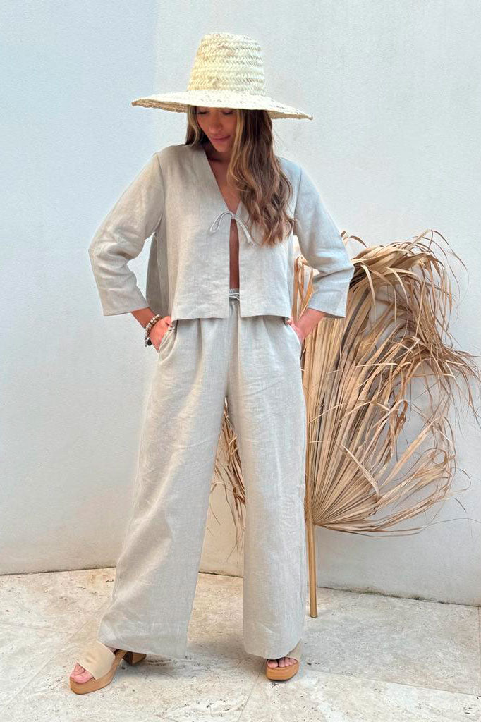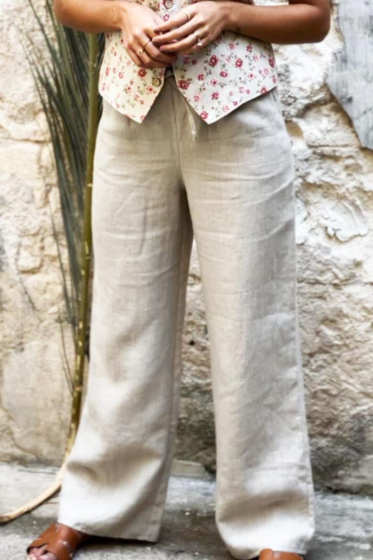 Klassiset pellavahousut aavistuksen levenevillä lahkeilla. Housuissa on sivutaskut ja joustava resorivyötärö kiristysnyörillä. Valmistettu ohuemmasta pellavasta, joka laskeutuu kauniisti. Yhdistä nämä housut esimerkiksi Linen Blazer pellavajakun pariksi.