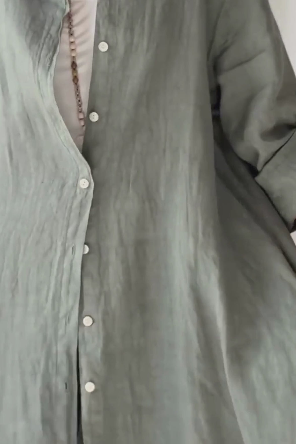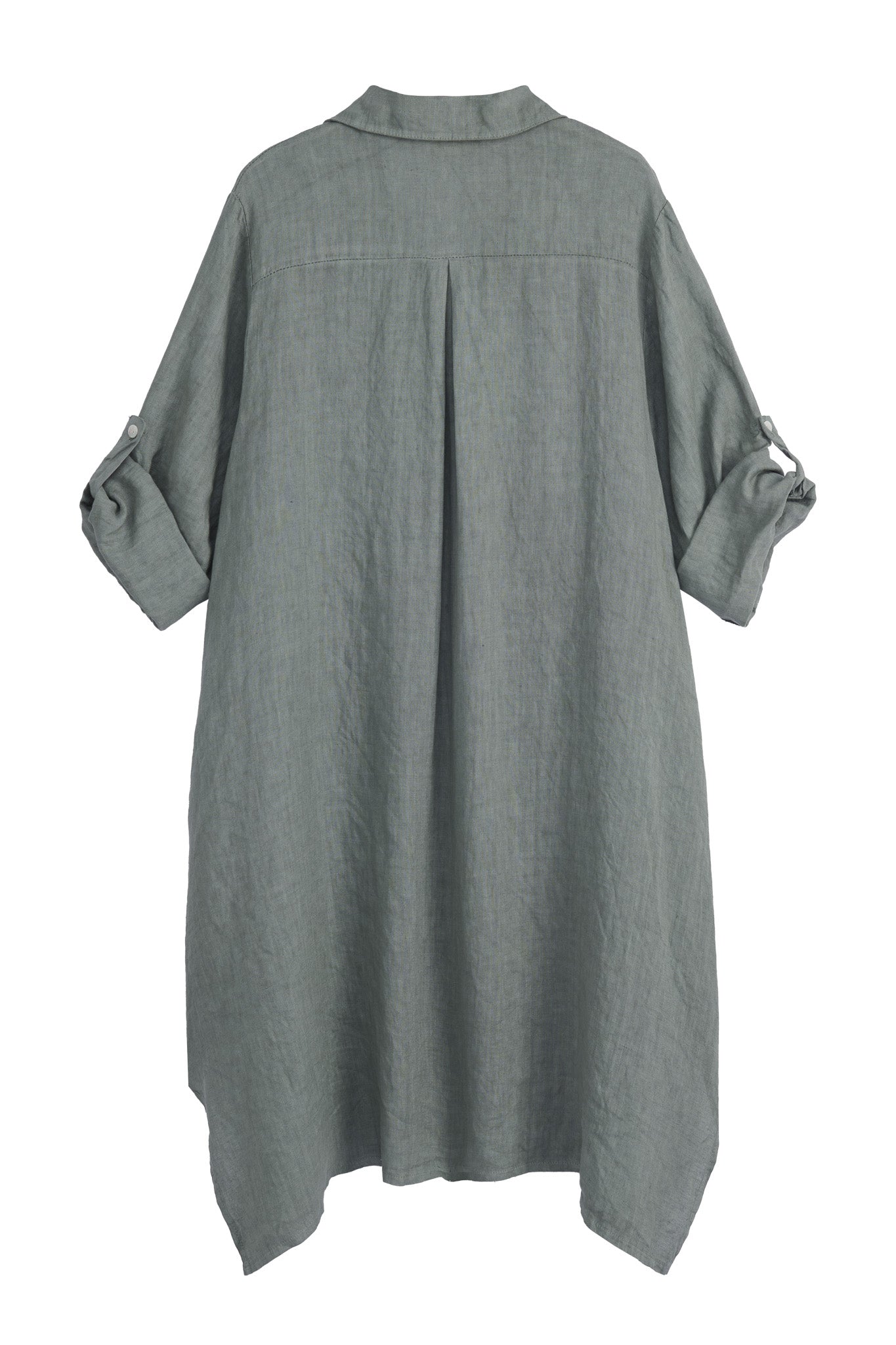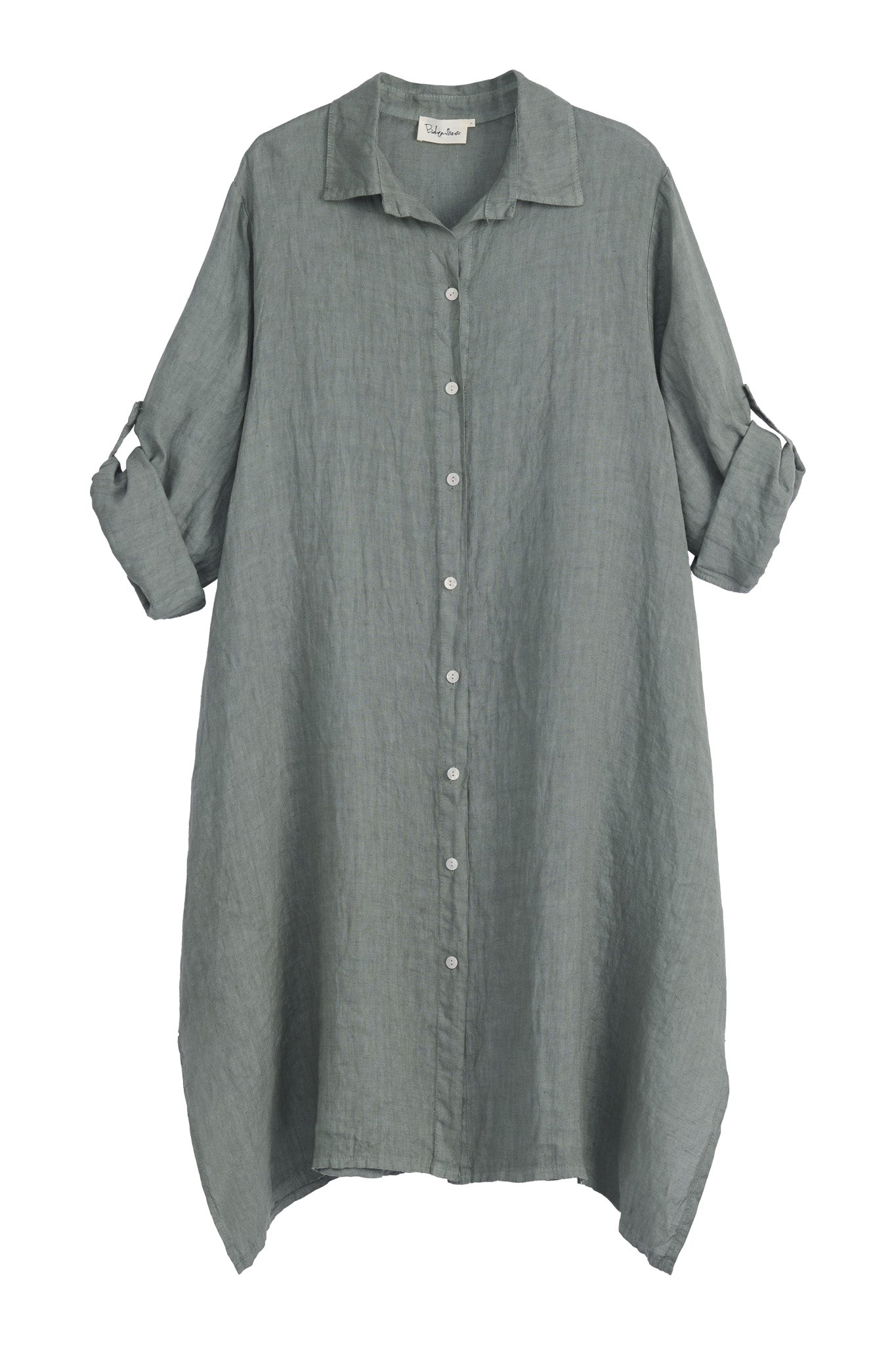 Upea pellavainen paitamekko, jossa kaulukset, halkiot sivuilla ja edessä napitus. Täydellinen pitkä ja kevyt paitamekko, joka sopii puettavaksi sekä pellavahousujen, että farkkujen kanssa.